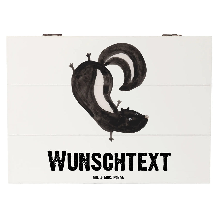 Personalizowane drewniane pudełko skunks stojka - 25 x 18 cm - Biały