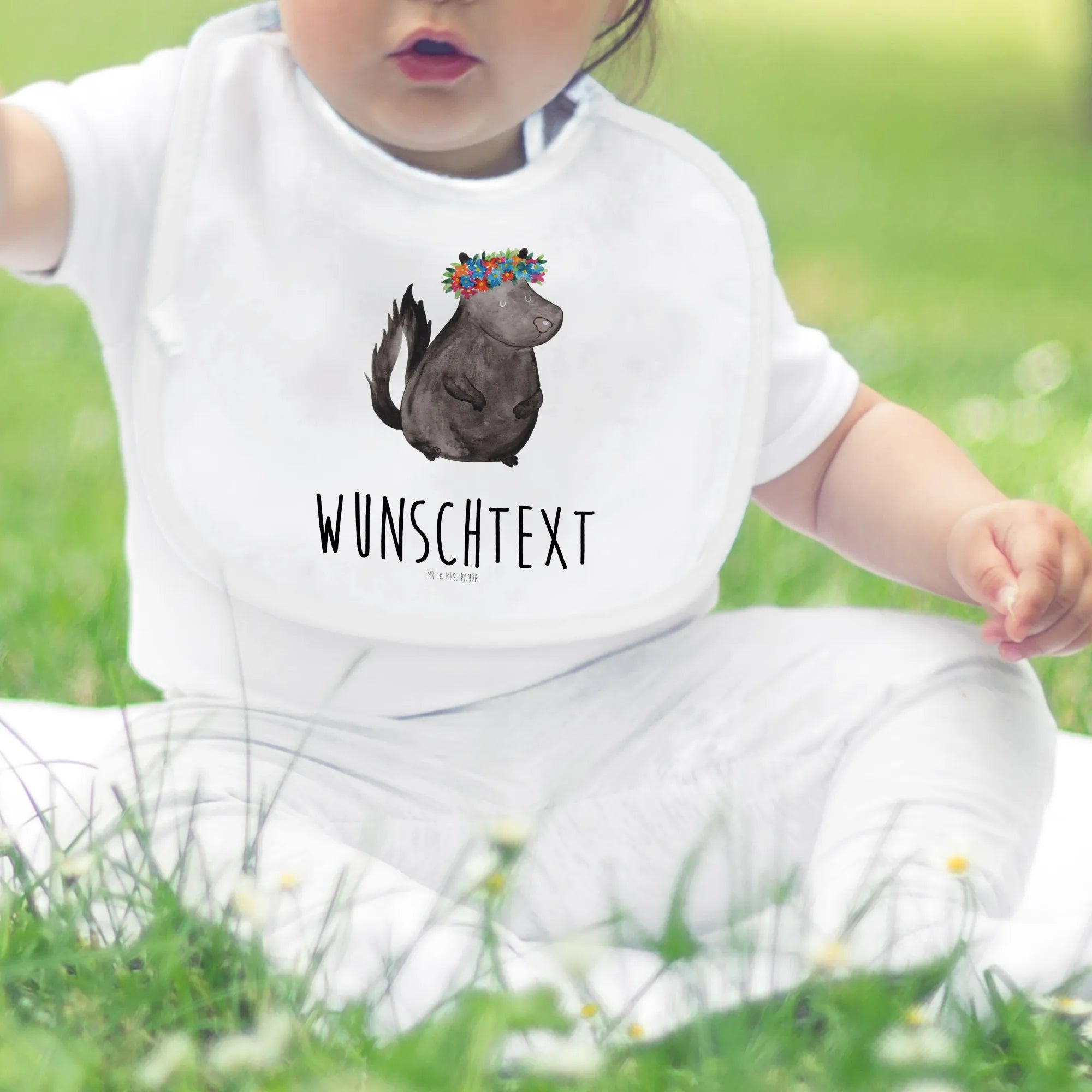 Personalisiertes Babylätzchen Stinktier Blumenmaedchen – Mr. & Mrs. Panda