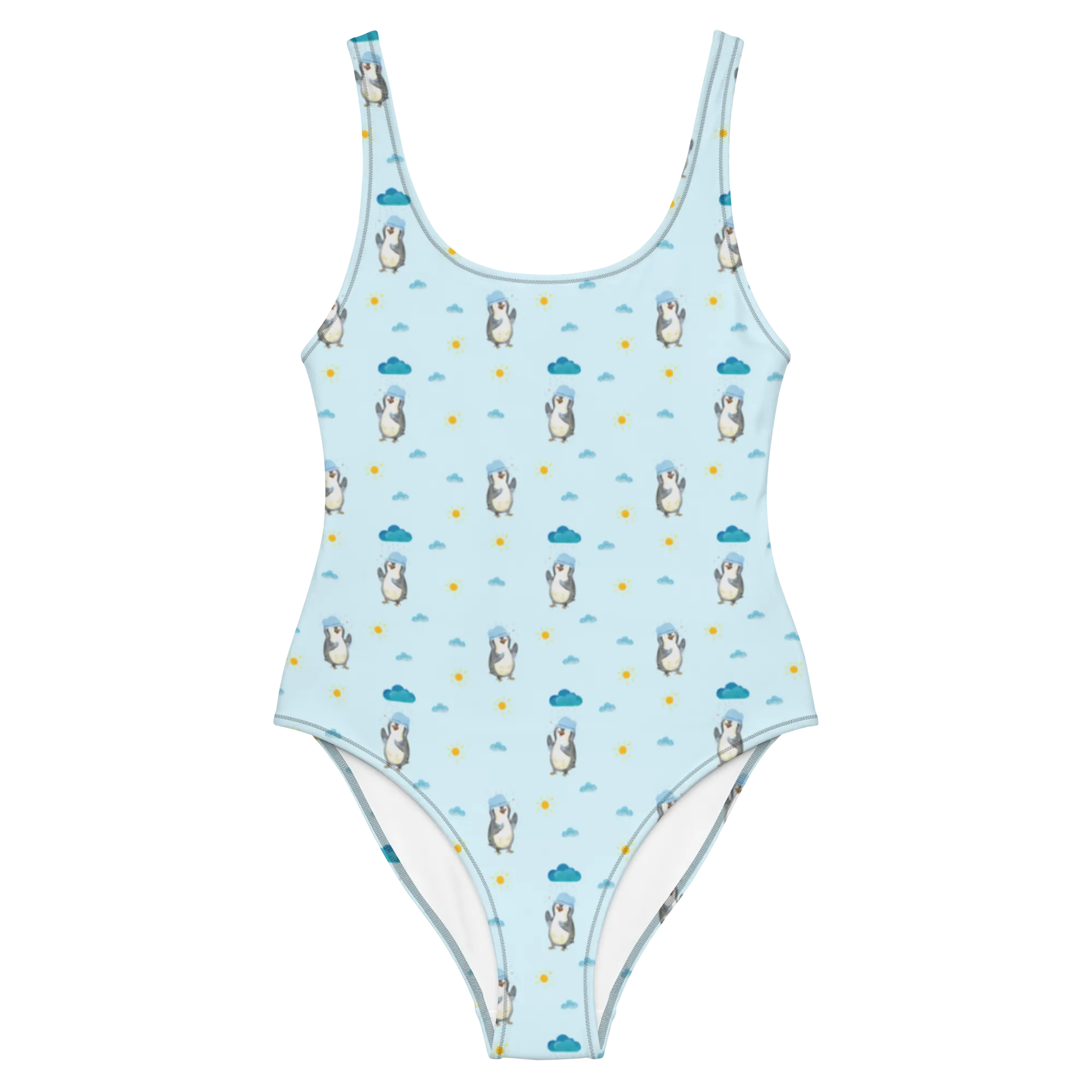 Entdecke unseren bezaubernden Badeanzug aus der Pinguin-Kollektion, der Fröhlichkeit und Stil zugleich verkörpert! Mit dem witzigen Pinguin, der fröhlich unter dem Regenschauer steht und mit seiner Duschhaube begeistert, ist dieser Badeanzug ein echter Hingucker. Er lässt nicht nur Kinderherzen höherschlagen, sondern auch die von erwachsenen Pinguin-Fans.