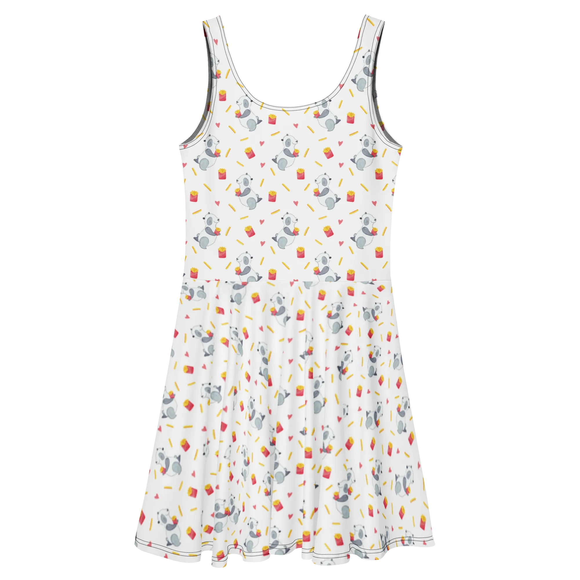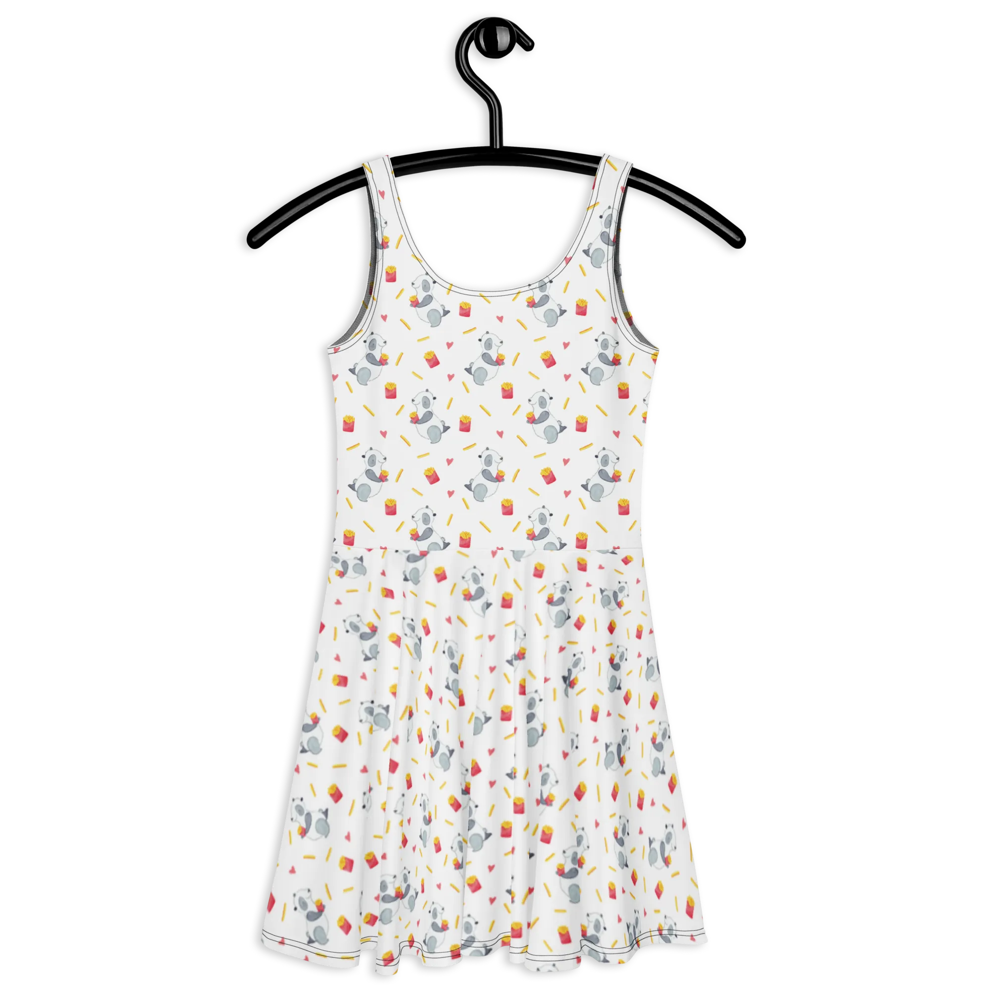Das wunderschöne Sommerkleid "Panda Pommes" von Mr. & Mrs. Panda ist der perfekte Begleiter für heiße Sommertage! Mit seinem einzigartigen Muster aus niedlichen Pandas, die fröhlich Pommes Frites genießen, bringt dieses Kleid gute Laune und Stil in jeden Kleiderschrank.