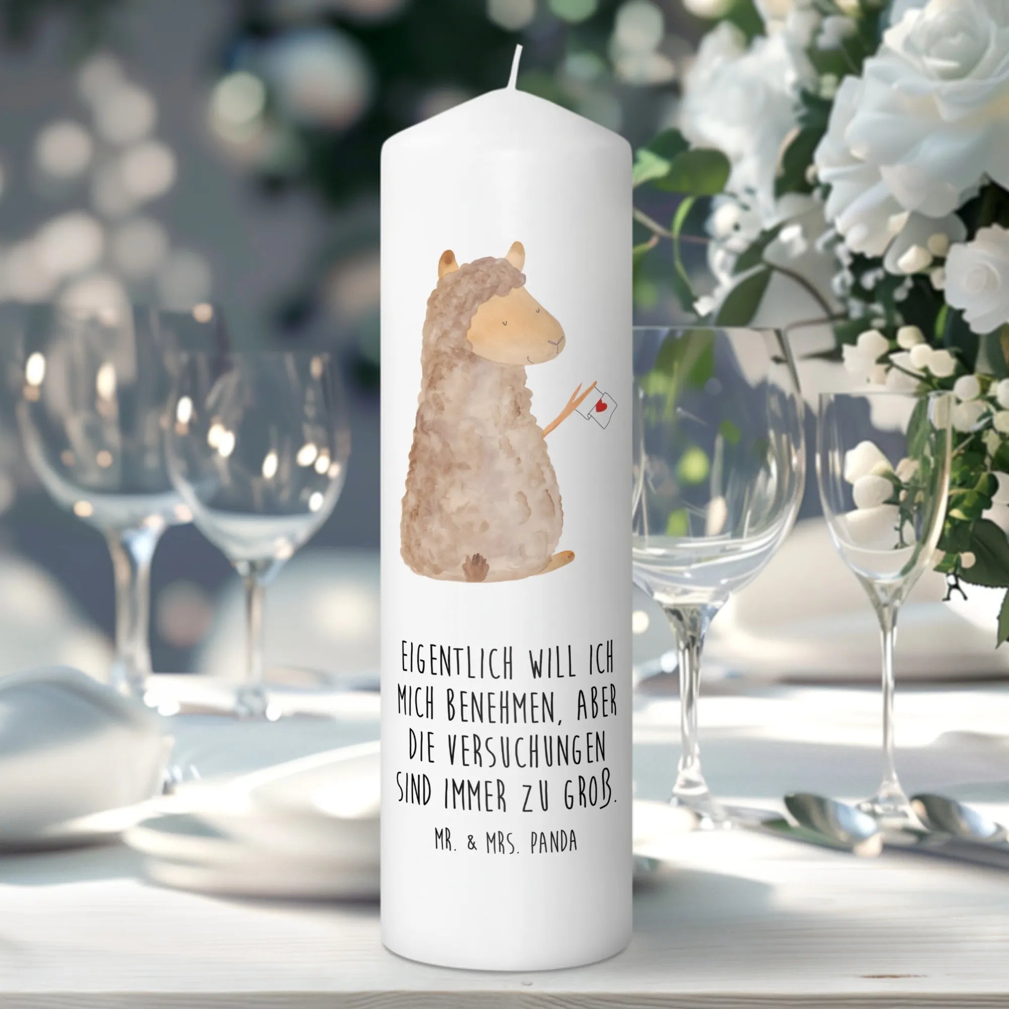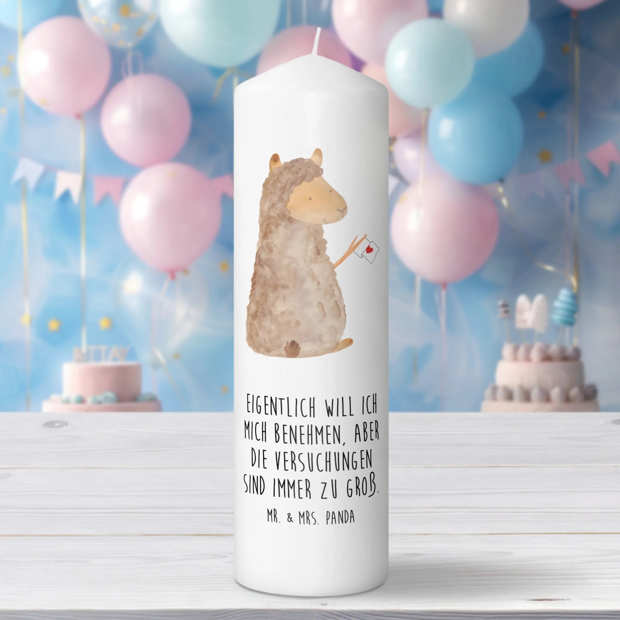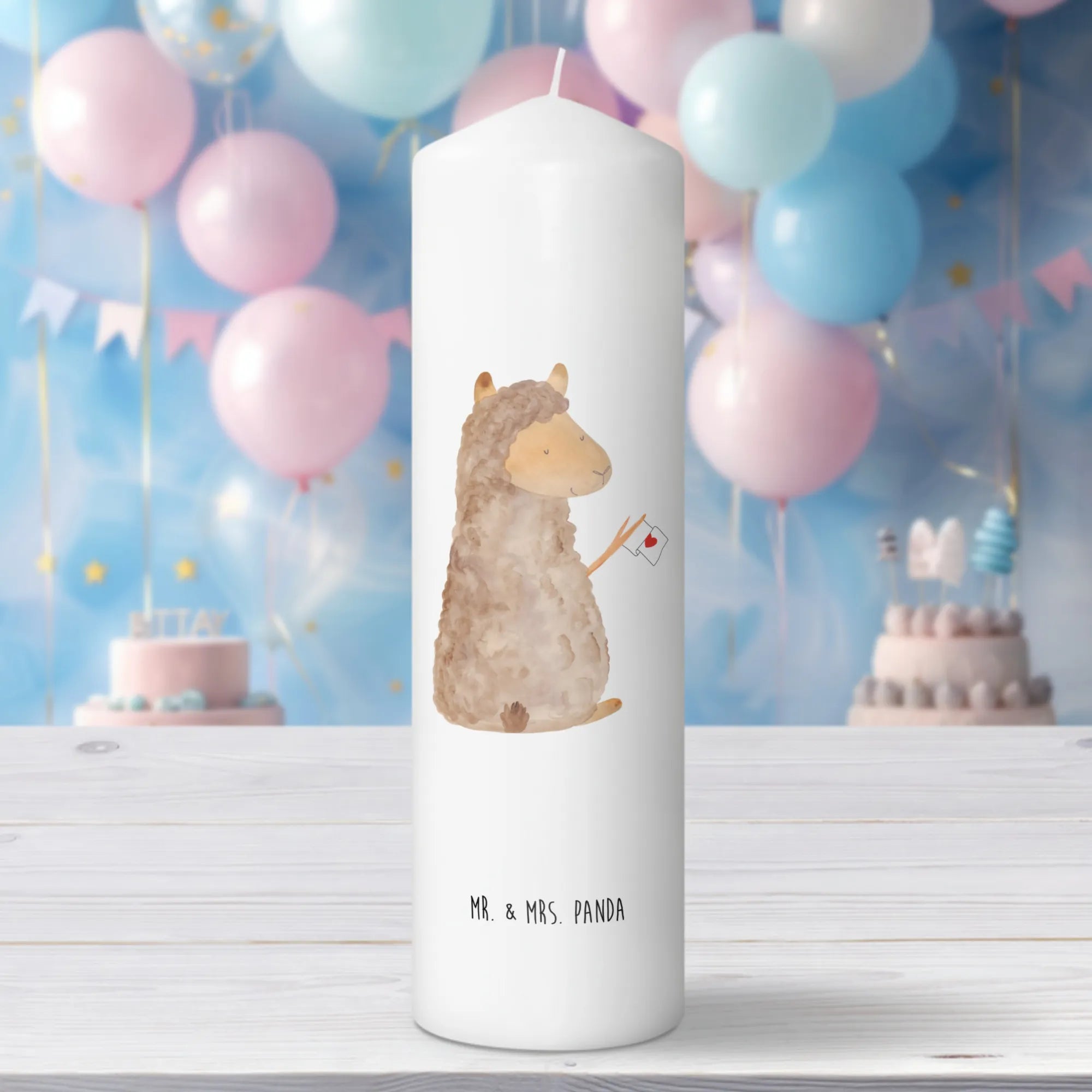 Die wunderschöne Taufkerze mit dem süßen Alpaka-Motiv von Mr. & Mrs. Panda ist das perfekte Geschenk für besondere Anlässe. Wenn du auf der Suche nach einer einzigartigen Kerze bist, die nicht nur toll aussieht, sondern auch eine tiefere Bedeutung hat, dann liegt du mit dieser bezaubernden Kerze genau richtig!