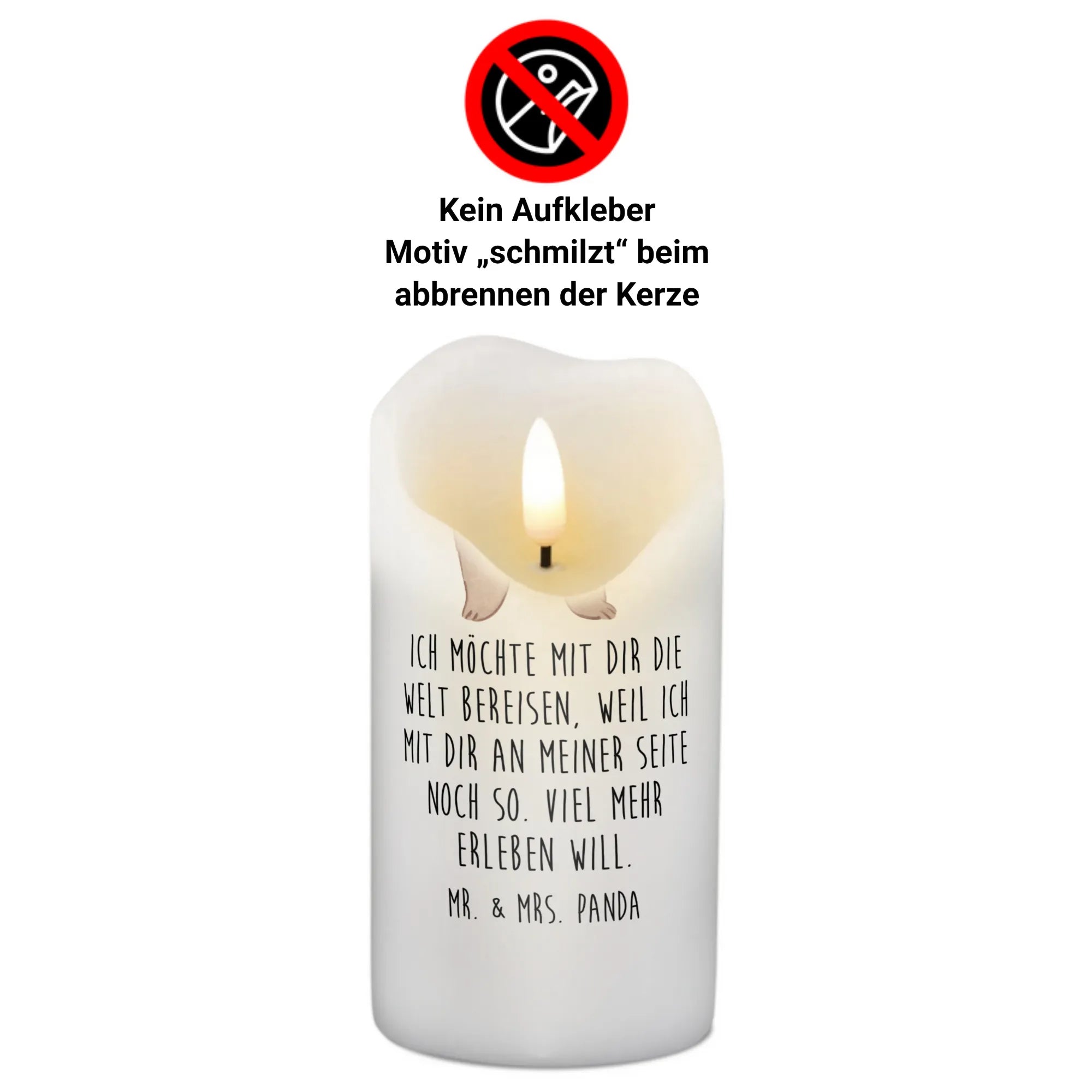Der Slogan "Ich möchte mit dir die Welt bereisen, weil ich mit dir an meiner Seite noch so viel mehr erleben will" trifft den Nagel auf den Kopf und bringt die Gefühle zum Ausdruck. Diese Kerze, hergestellt aus hochwertigem Paraffinwachs, hat eine ultra-lange Brenndauer und sorgt für eine besondere Stimmung überall dort, wo sie angezündet wird. Die hauchdünne, transparente Wachsschicht sorgt zudem für eine ansprechende Optik beim Abbrennen.