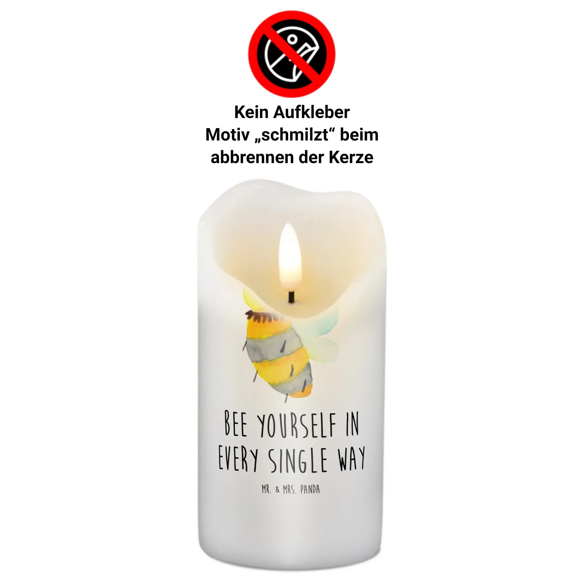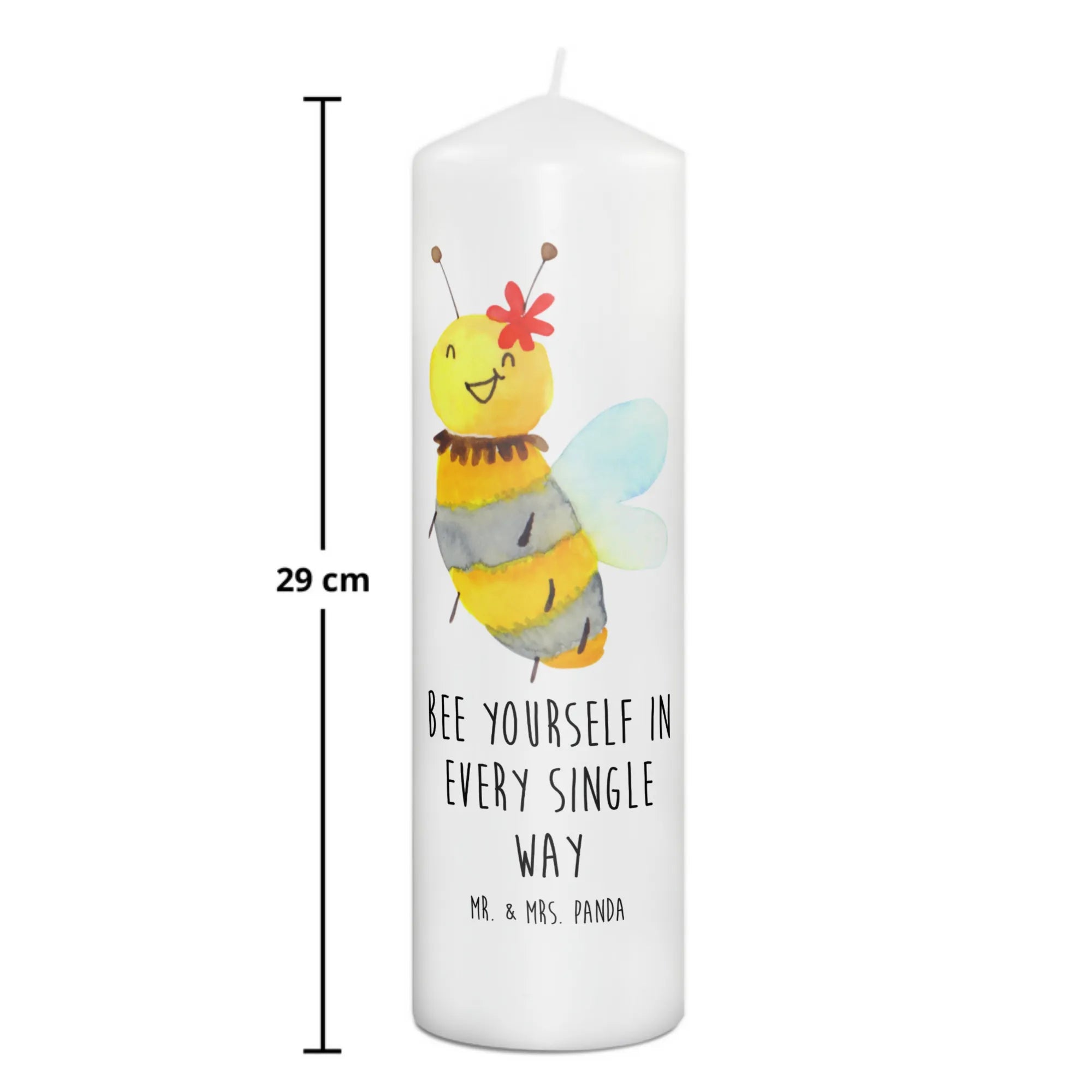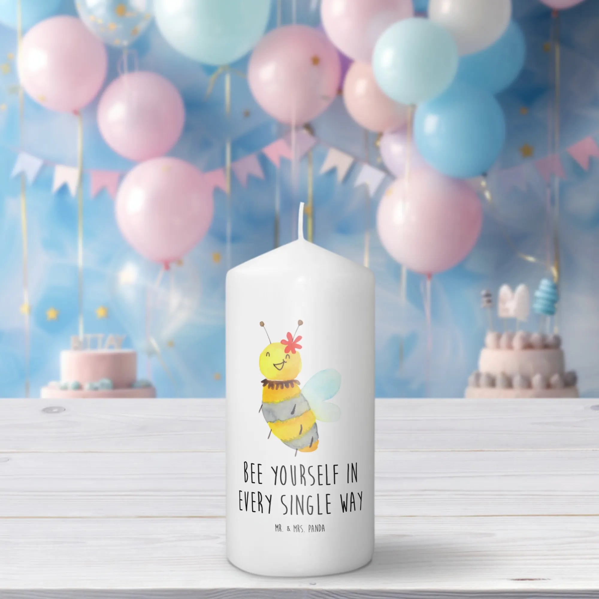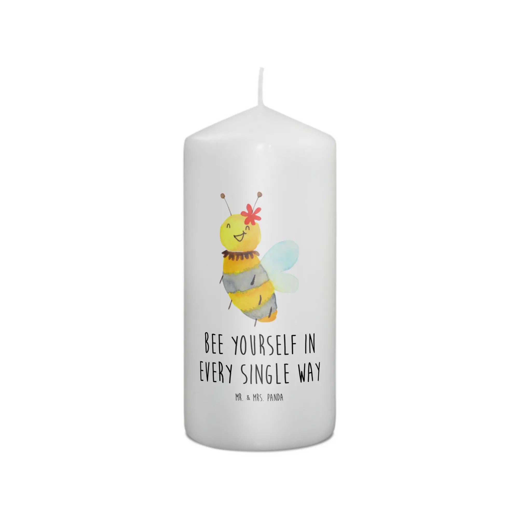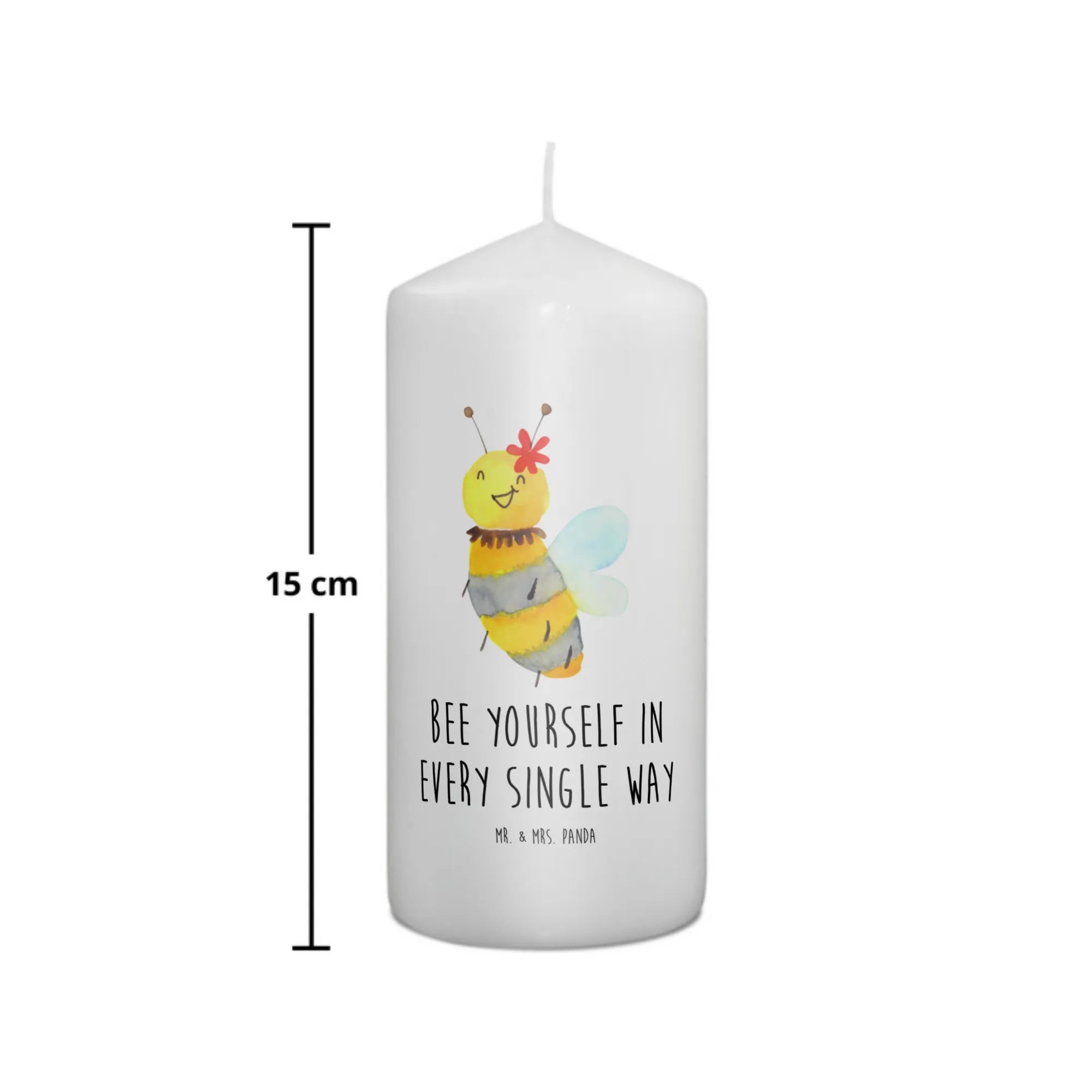 Die Kerze Biene Blume aus der Bienen Kollektion von Mr. & Mrs. Panda ist das perfekte Geschenk für viele besondere Anlässe. Sie zaubert eine warme und einladende Atmosphäre in jeden Raum und ist so viel mehr als nur ein Stück Wachs. Mit einem liebevoll gestalteten Motiv einer niedlichen Biene, die fröhlich durch die Luft schwirrt, und einer zarten Blume auf ihrem Kopf, bringt diese Kerze ein Stück Sommer in dein Zuhause. Die Botschaft "Bee yourself in every single way" auf dieser Kerze erinnert dich daran, immer du selbst zu sein und das Leben in vollen Zügen zu genießen.