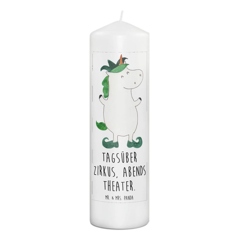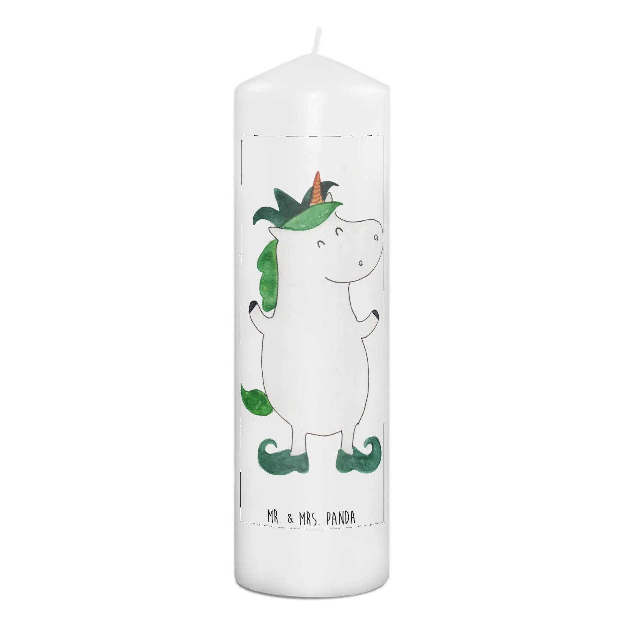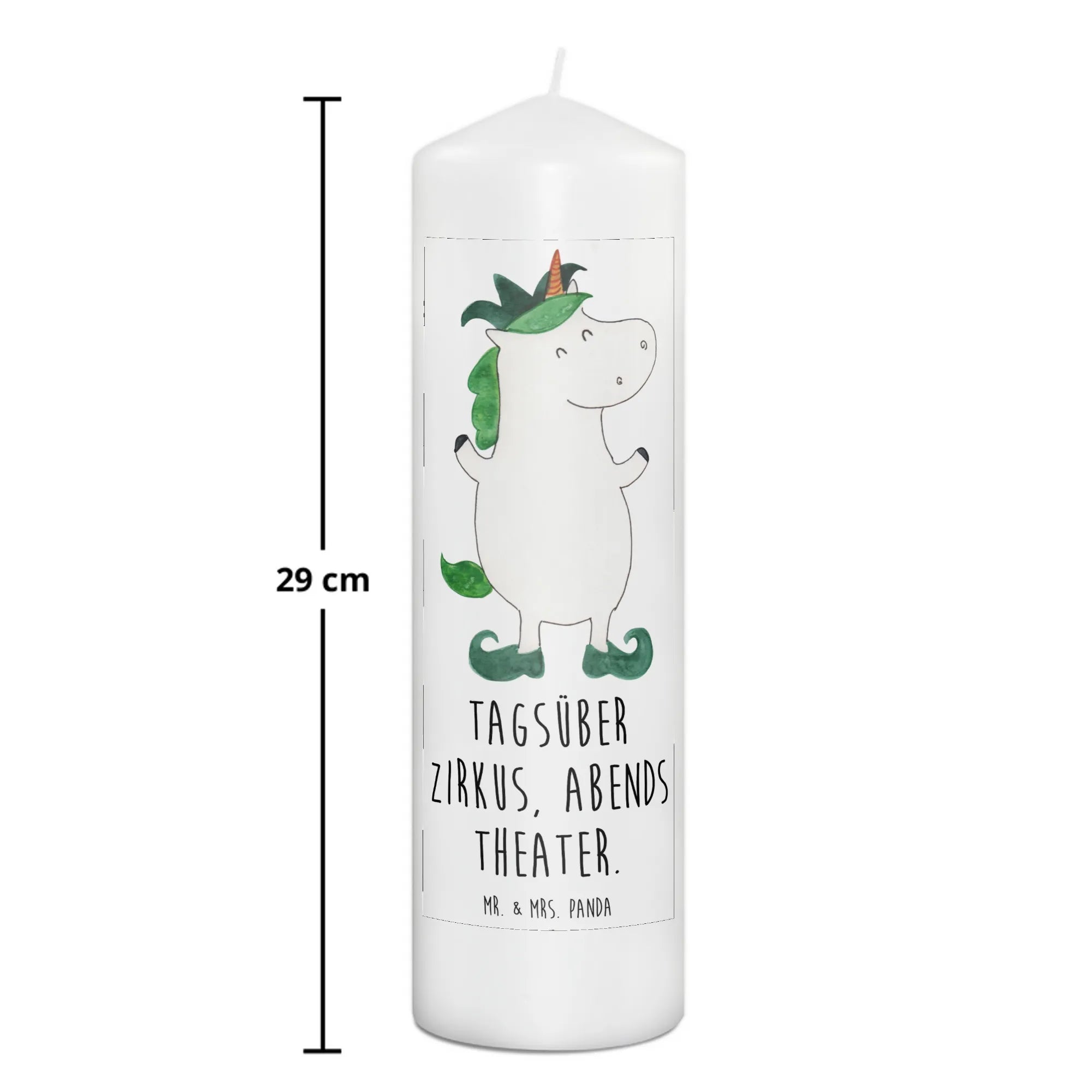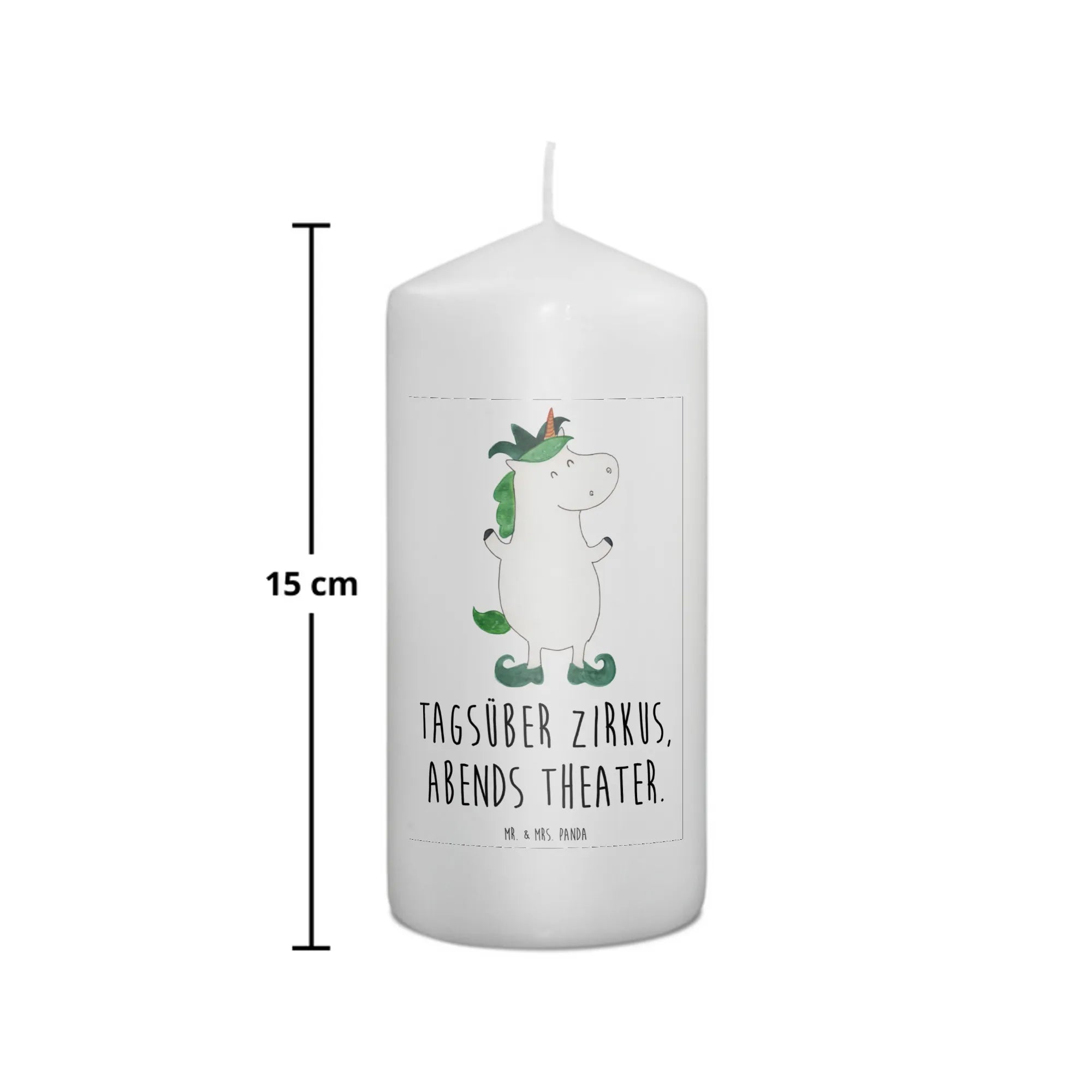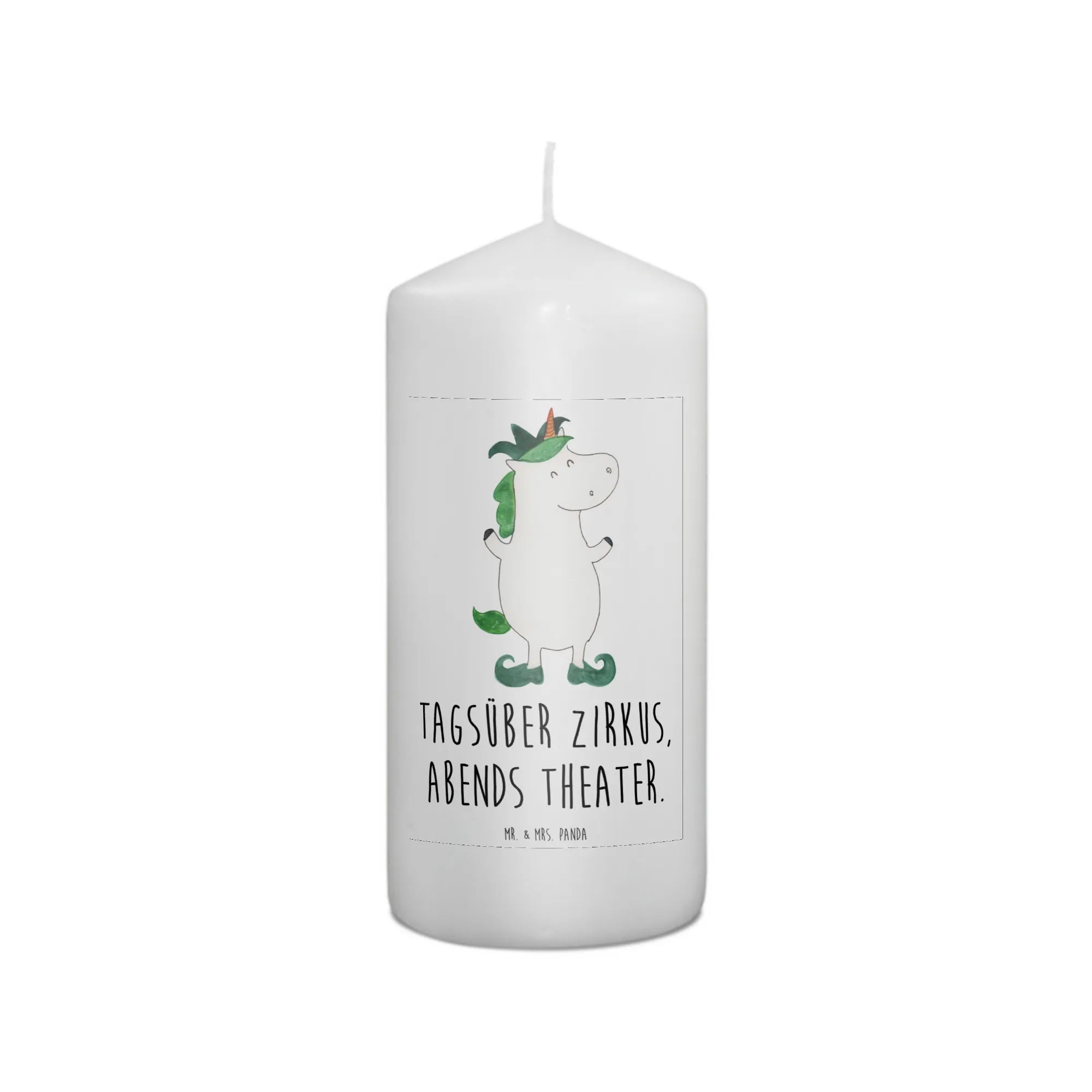 Die Einhorn Joker Kerze von Mr. & Mrs. Panda ist das perfekte Geschenk für zahlreiche besondere Anlässe. Mit einem liebevoll handgezeichneten Design, das ein niedliches Einhorn zeigt, das als Hofnarr verkleidet ist, bringt diese Kerze eine zauberhafte Stimmung in jede Feier.