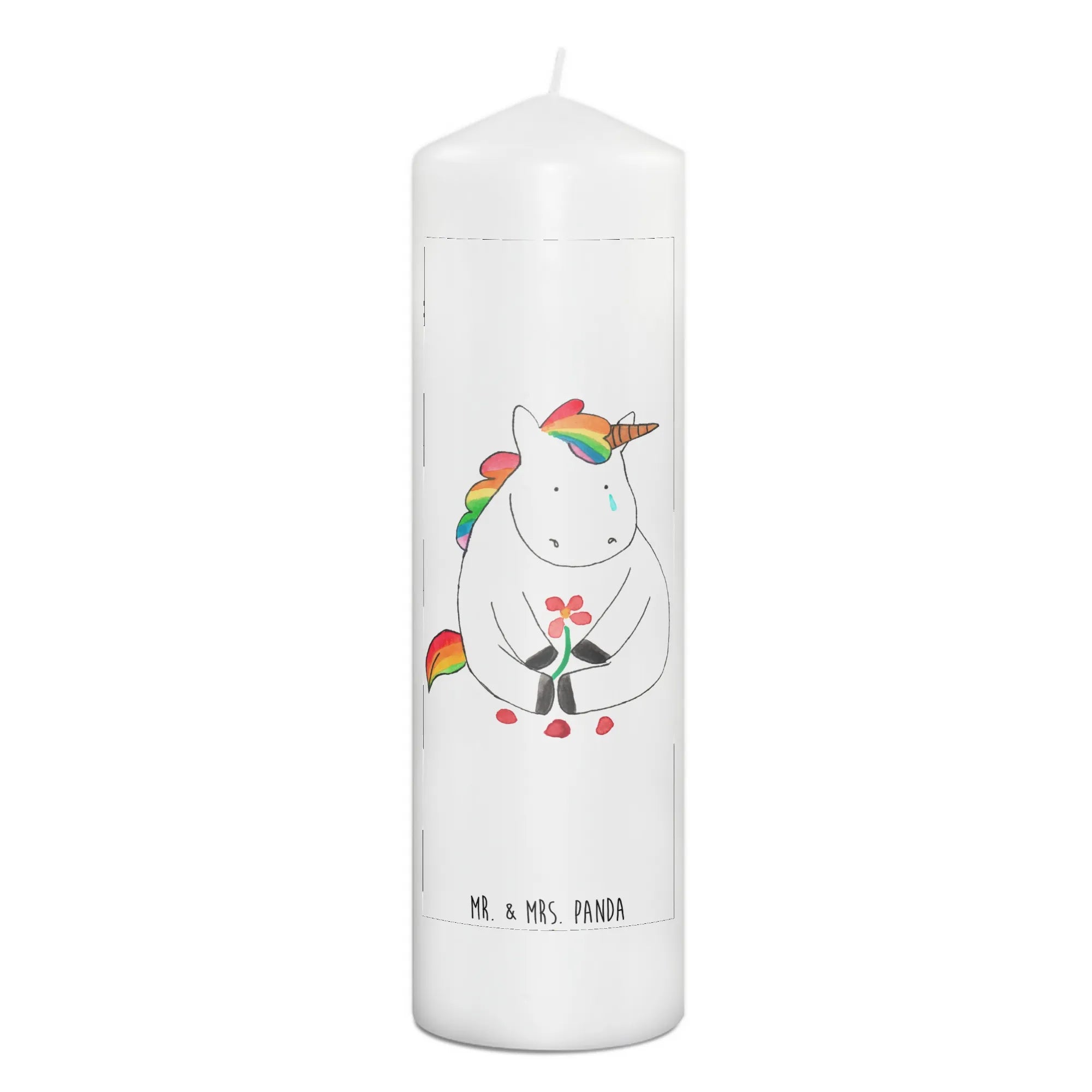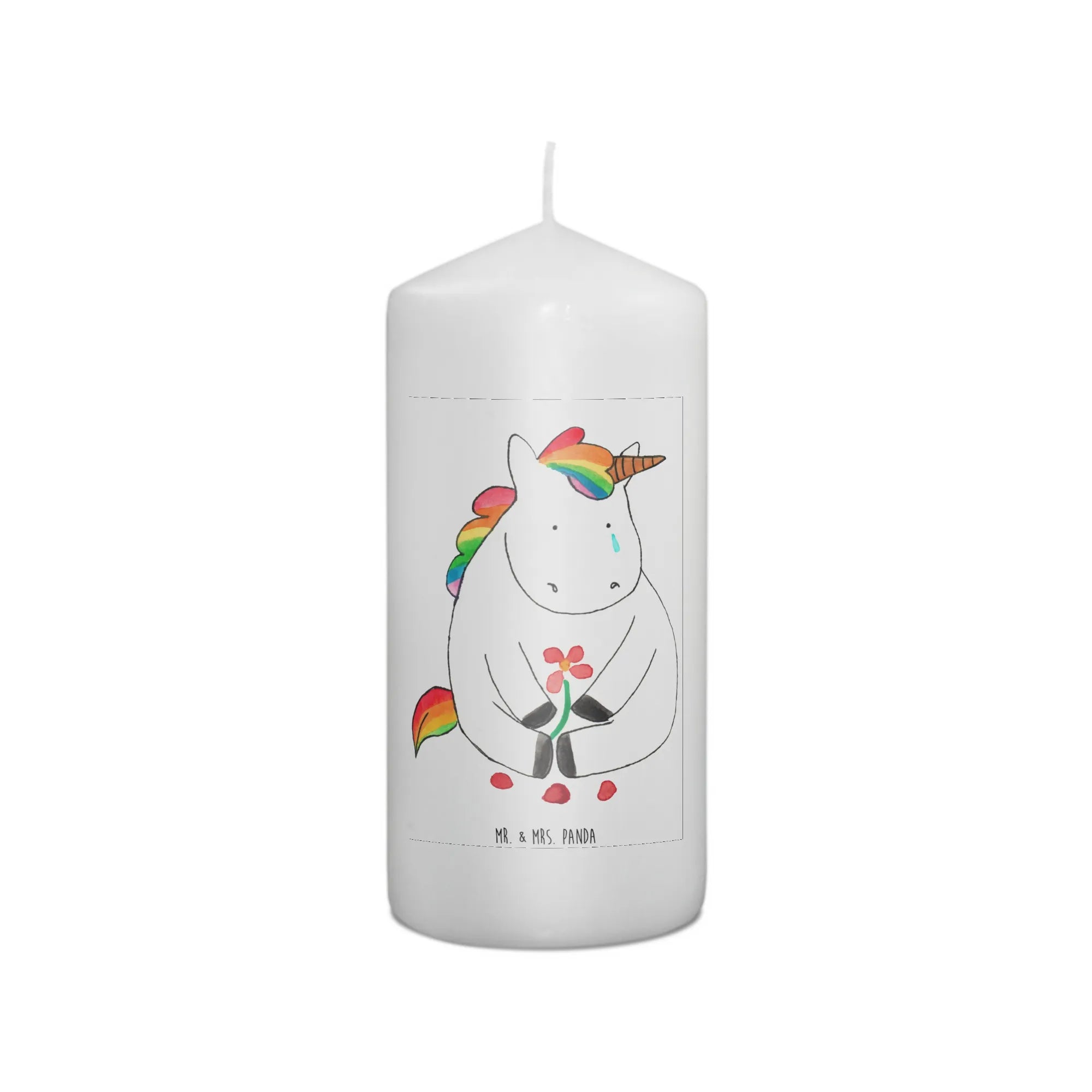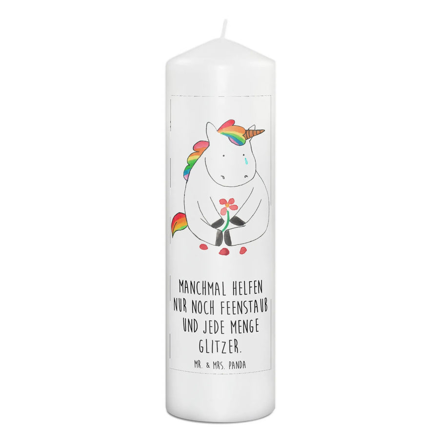 Du suchst das perfekte Geschenk für einen besonderen Anlass? Unsere zauberhafte Taufkerze mit dem Motiv "Einhorn Traurig" aus der Einhorn-Kollektion von Mr. & Mrs. Panda ist genau das Richtige!