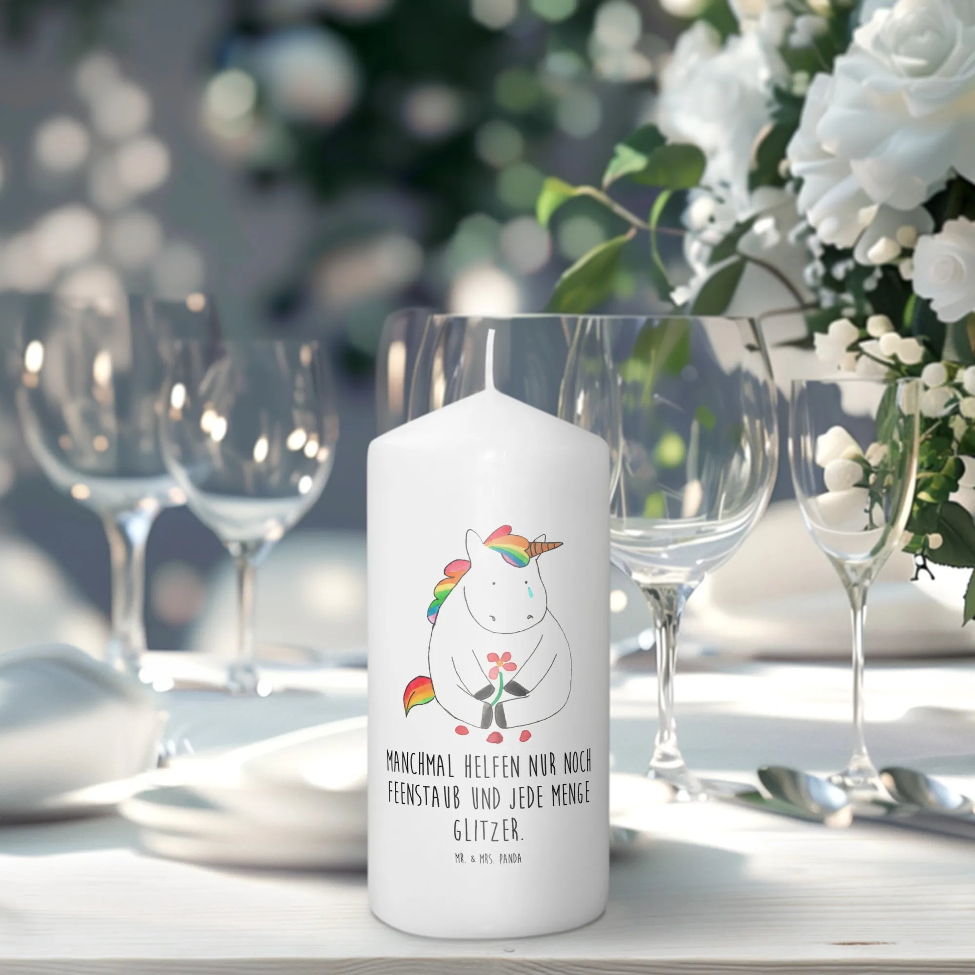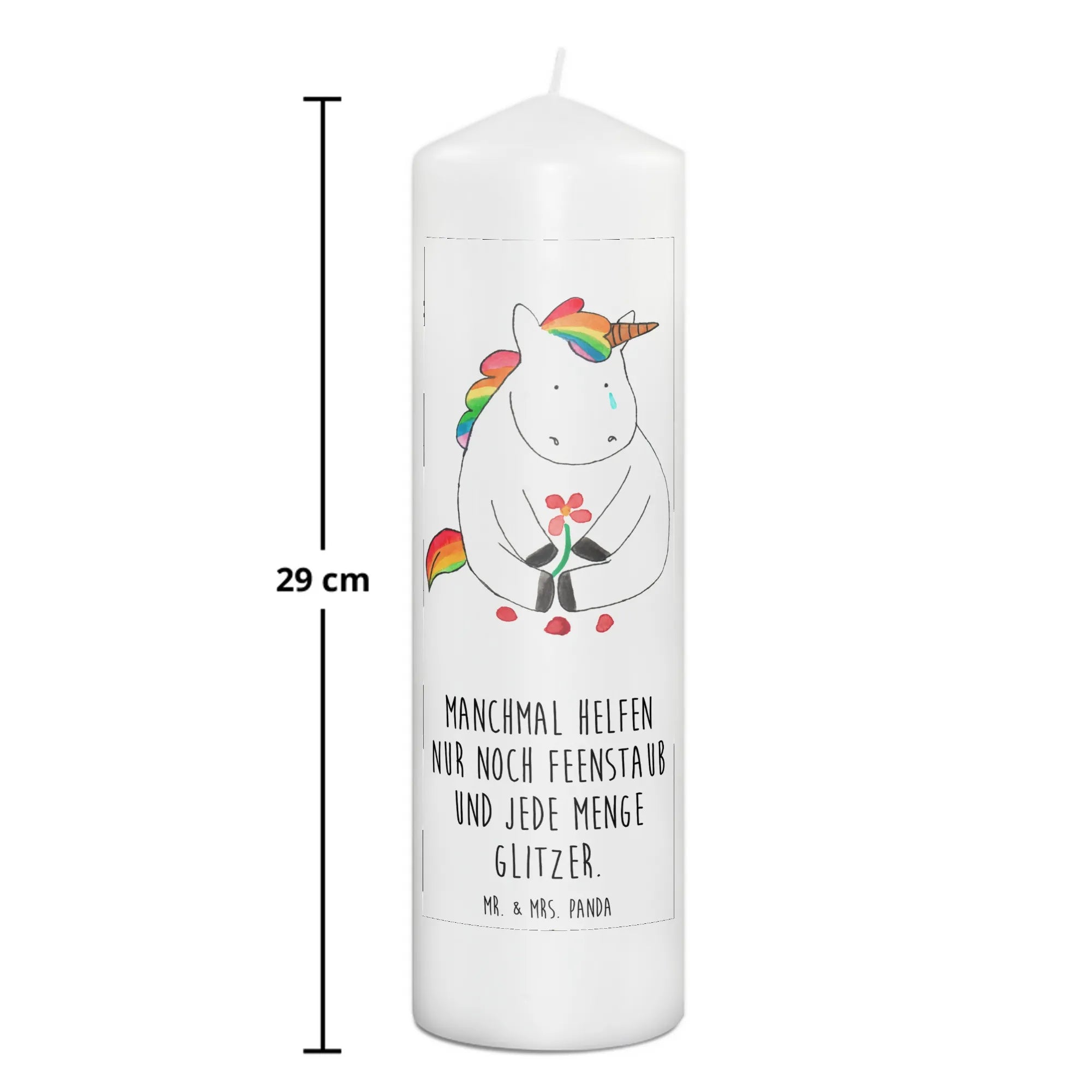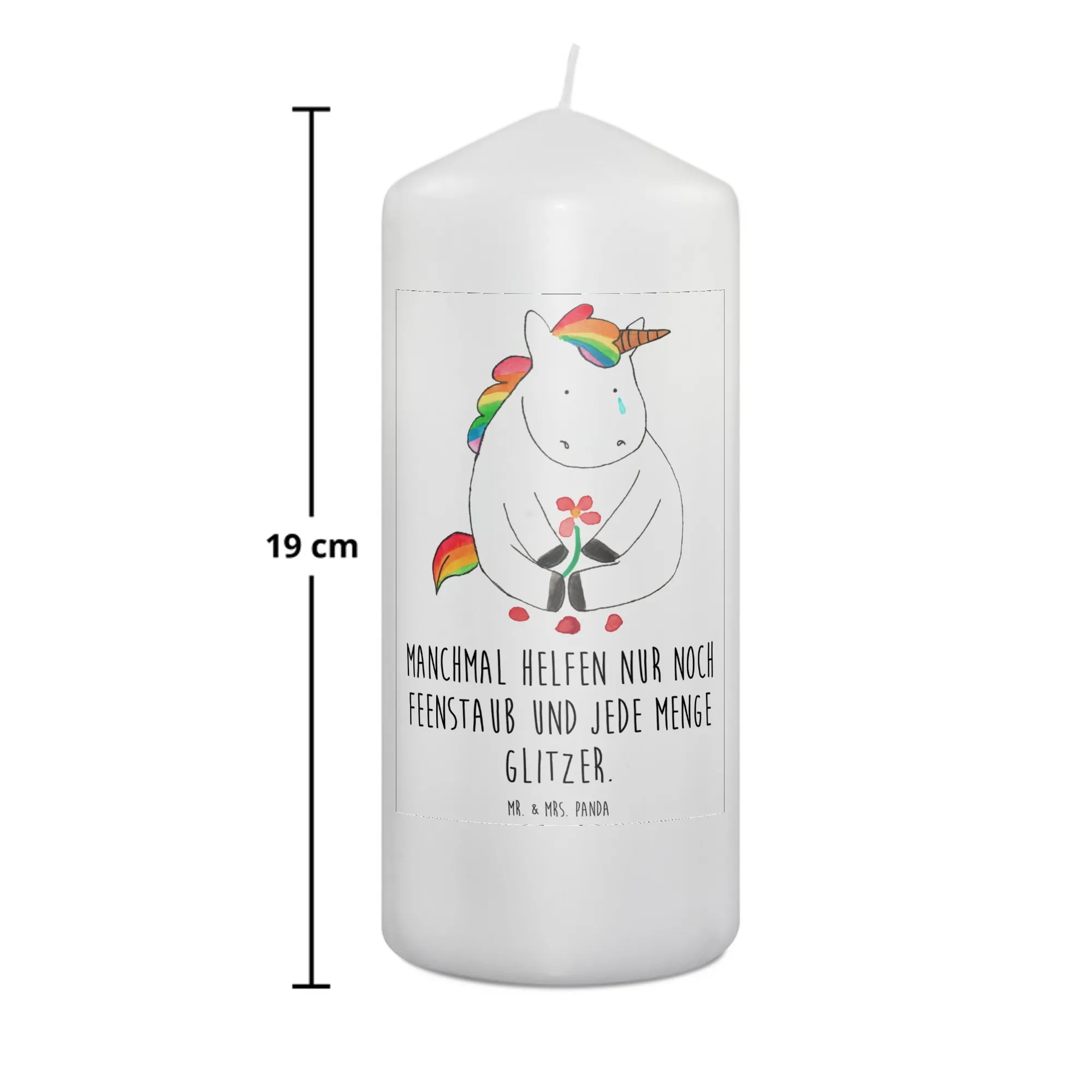 Unsere bezaubernde Kerze "Einhorn Traurig" aus der beliebten Einhorn-Kollektion von Mr. & Mrs. Panda ist das perfekte Geschenk für alle, die ein kleines Stück Glitzer in ihr Leben bringen möchten.