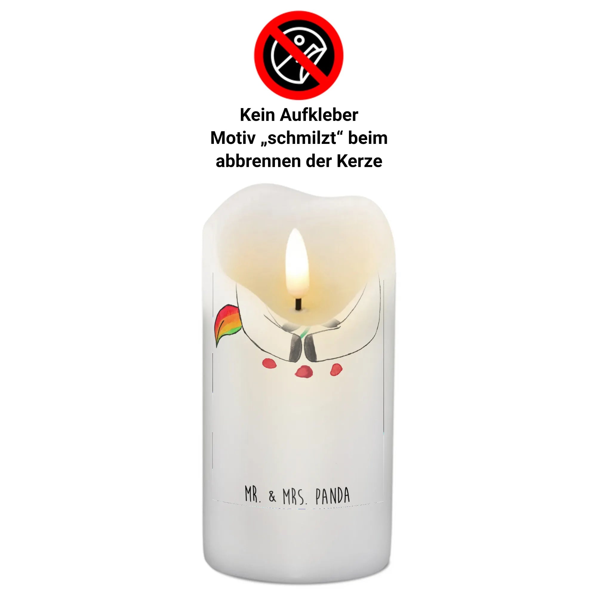 Jedes Produkt in unserer Kollektion ist liebevoll mit einem handgezeichneten Design von Mrs. Panda gestaltet. Diese Kerze wird sicherlich die Herzen deiner Liebsten erwärmen und für leuchtende Augen sorgen.