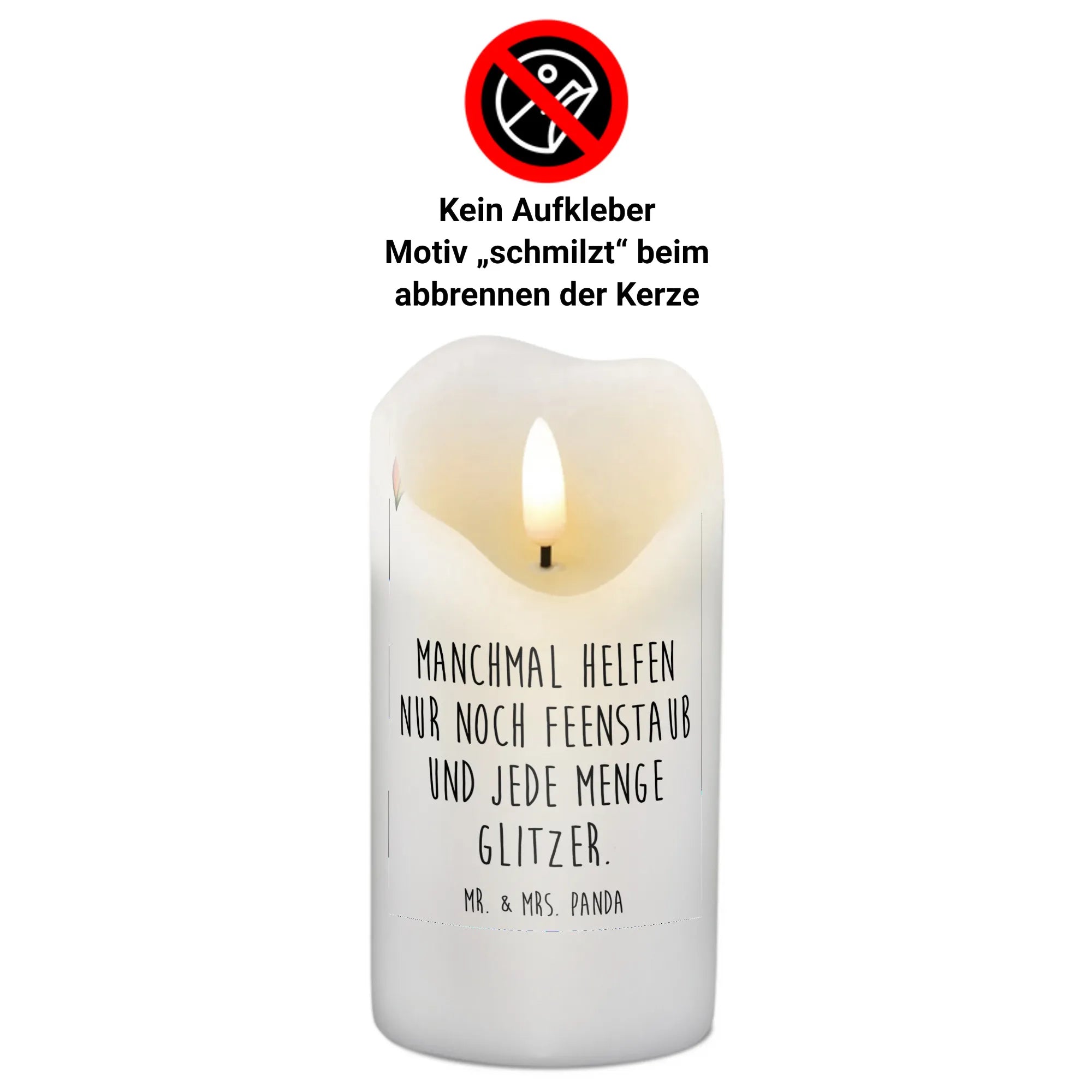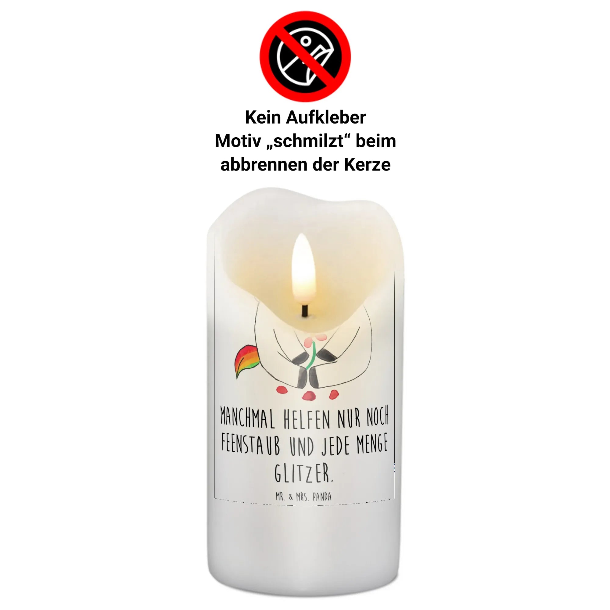 Wenn das Leben mal turbulent ist, hilft manchmal nur noch Feenstaub und jede Menge Glitzer! Mach jemandem eine Freude mit dieser liebevollen Kerze, die Trauer in Hoffnung verwandelt. Jeder Brand der Kerze sorgt zudem dafür, dass das zauberhafte Motiv beim Abbrennen schmilzt und die Wow-Wirkung entfaltet.