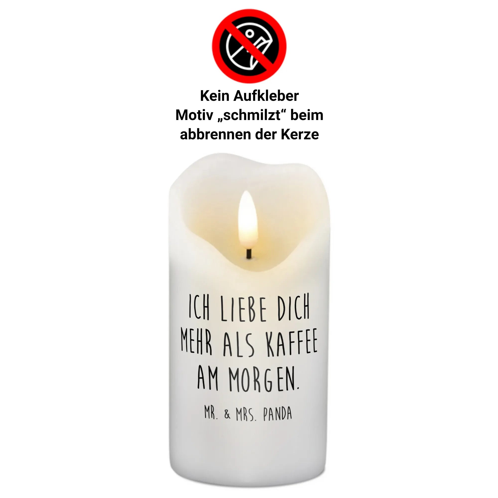 Sie trägt den herzlichen Spruch: 'Ich liebe dich mehr als Kaffee am Morgen.', der jedem ein Lächeln ins Gesicht zaubert. Die Kerze ist aus hochwertigem Paraffinwachs gefertigt und hat eine ultralange Brenndauer, sodass Du lange Freude daran hast. Durch den vorsichtigen Tauchvorgang erhält sie eine hauchdünne, transparente Wachsschicht, die beim Abbrennen schmilzt und das Motiv lebendig hervorhebt.