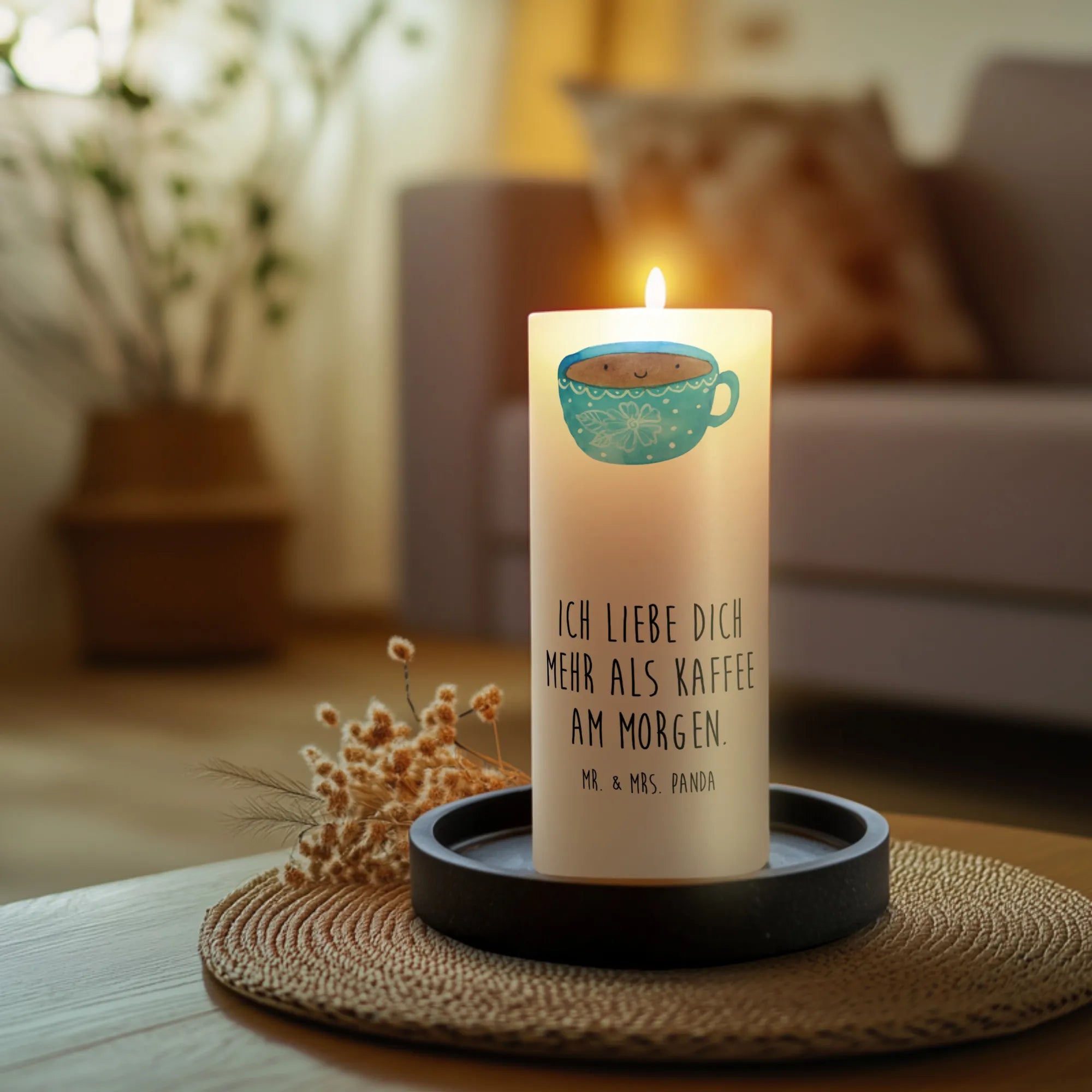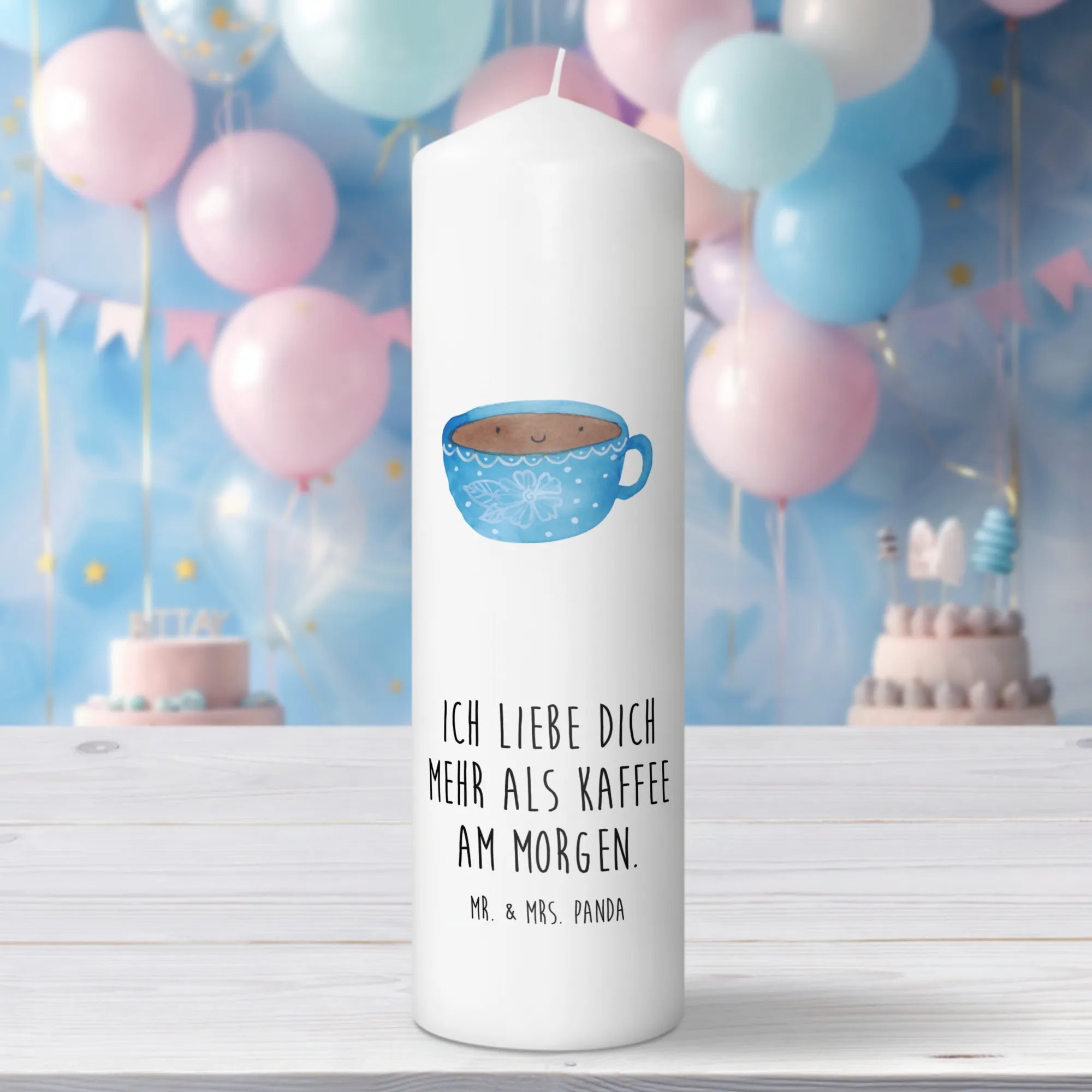 Eine liebevolle Taufkerze, die mit dem fröhlichen Motiv einer Tasse Kaffee geschmückt ist. Diese besondere Kerze von Mr. & Mrs. Panda ist nicht nur ein wunderschönes Dekorationsstück, sondern auch ein ganz besonderes Geschenk zur Taufe, Kommunion oder als Geburtstagsüberraschung.