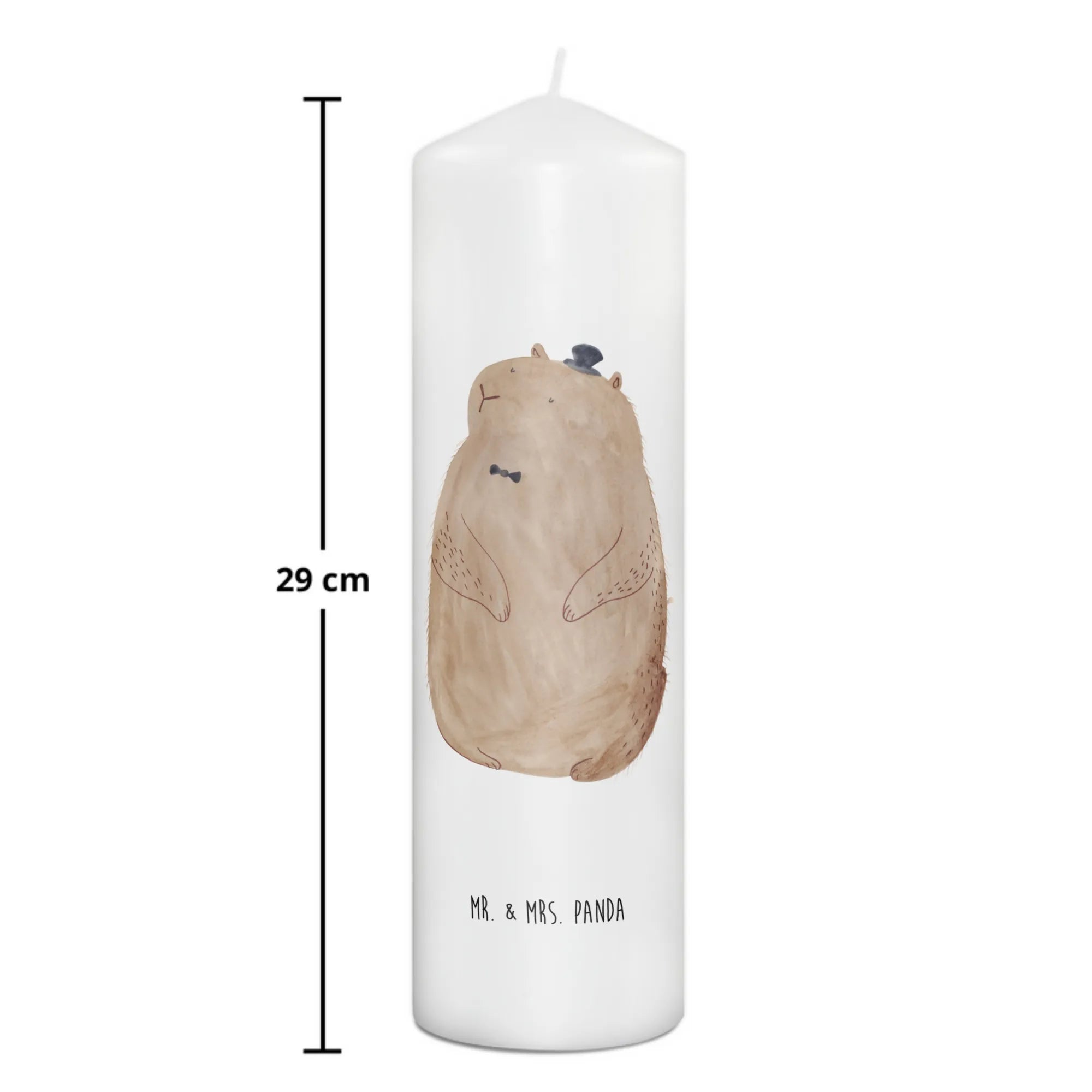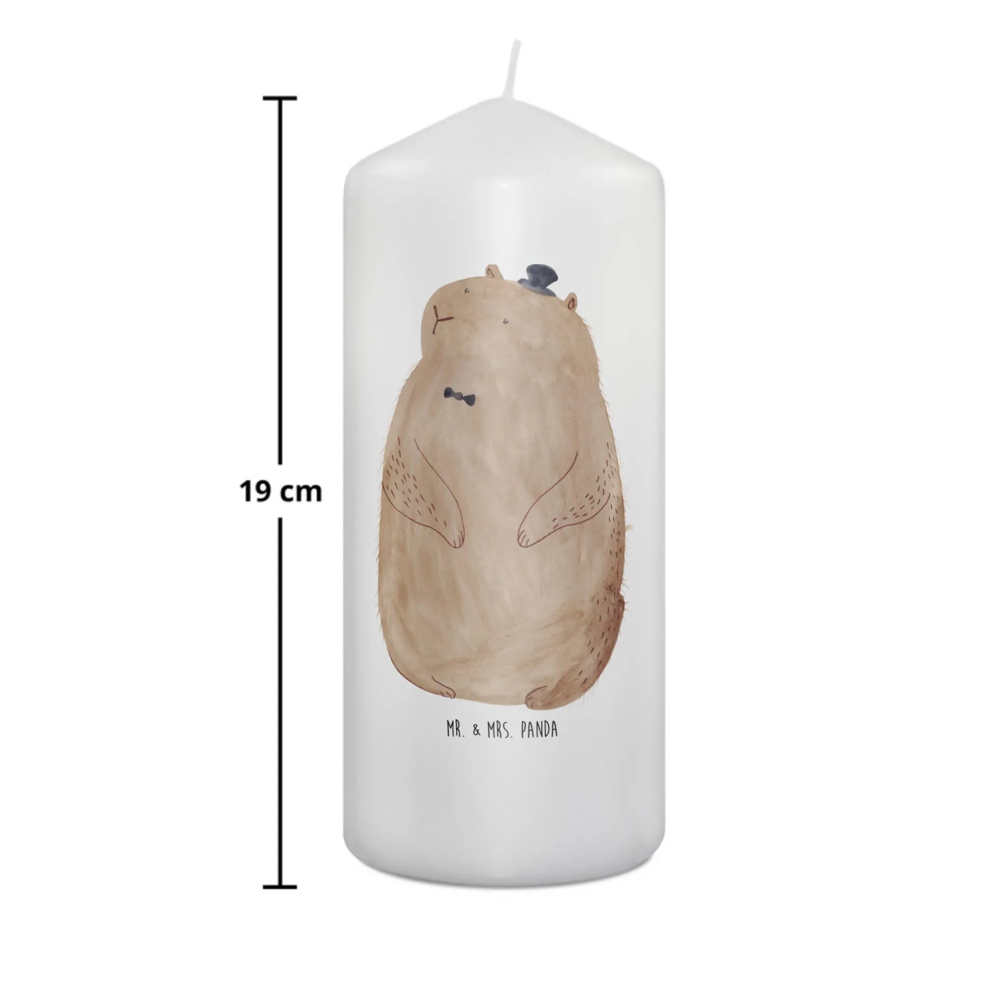 Mit einem Durchmesser von 8 cm und einer Höhe von 29 cm ist sie aus hochwertigem Paraffinwachs gefertigt und überzeugt durch ihre ultralange Brenndauer. Das liebevoll gestaltete Murmeltier, das auf dieser Kerze prangt, bringt fröhliche Stimmung in jeden Raum. Der kleine Zylinder auf dem Kopf des Murmeltiers verleiht ihm einen charmanten Look und sorgt für ein Lächeln auf jedem Gesicht.
