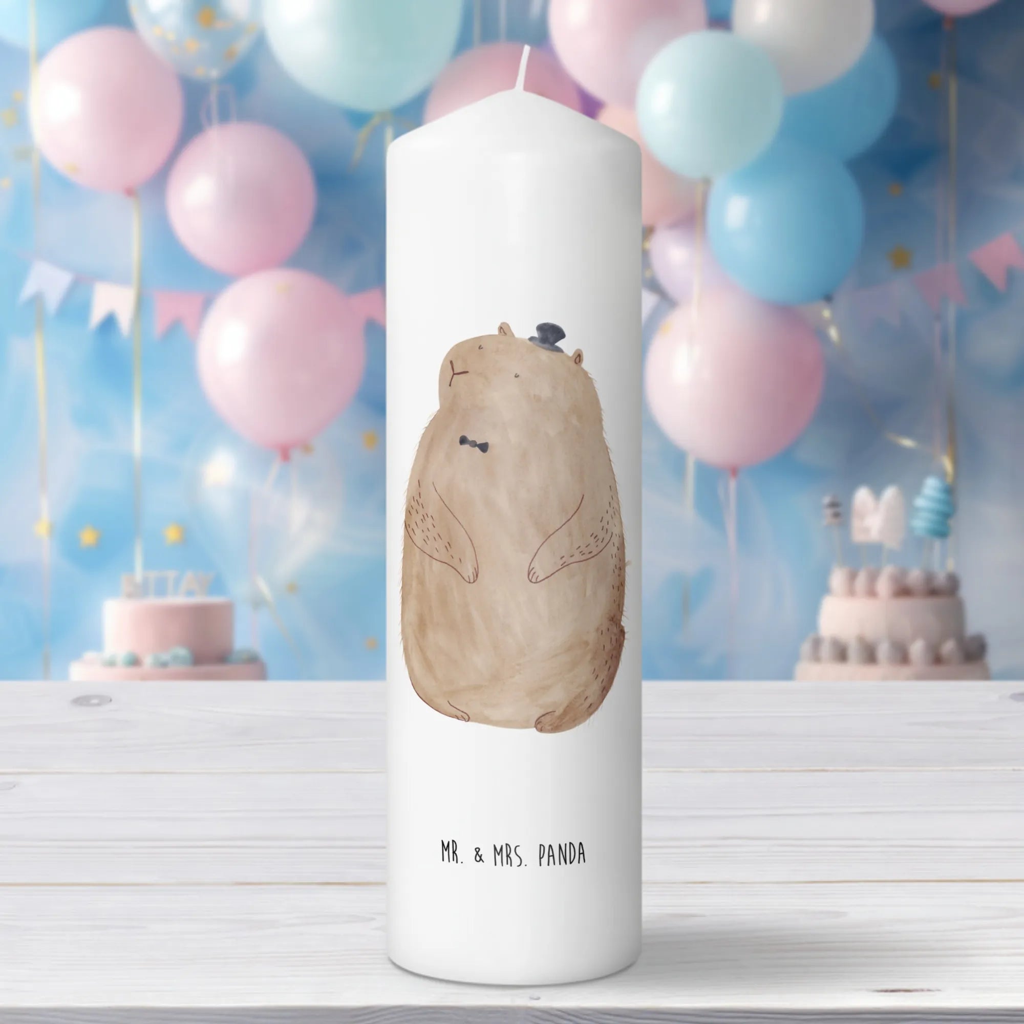 Entdecke die zauberhafte Taufkerze mit einem niedlichen Murmeltier aus der Small World Kollektion von Mr. & Mrs. Panda! Diese einzigartige Kerze ist nicht nur ein wunderschöner Hingucker, sondern auch ein perfektes Geschenk für viele besondere Anlässe.