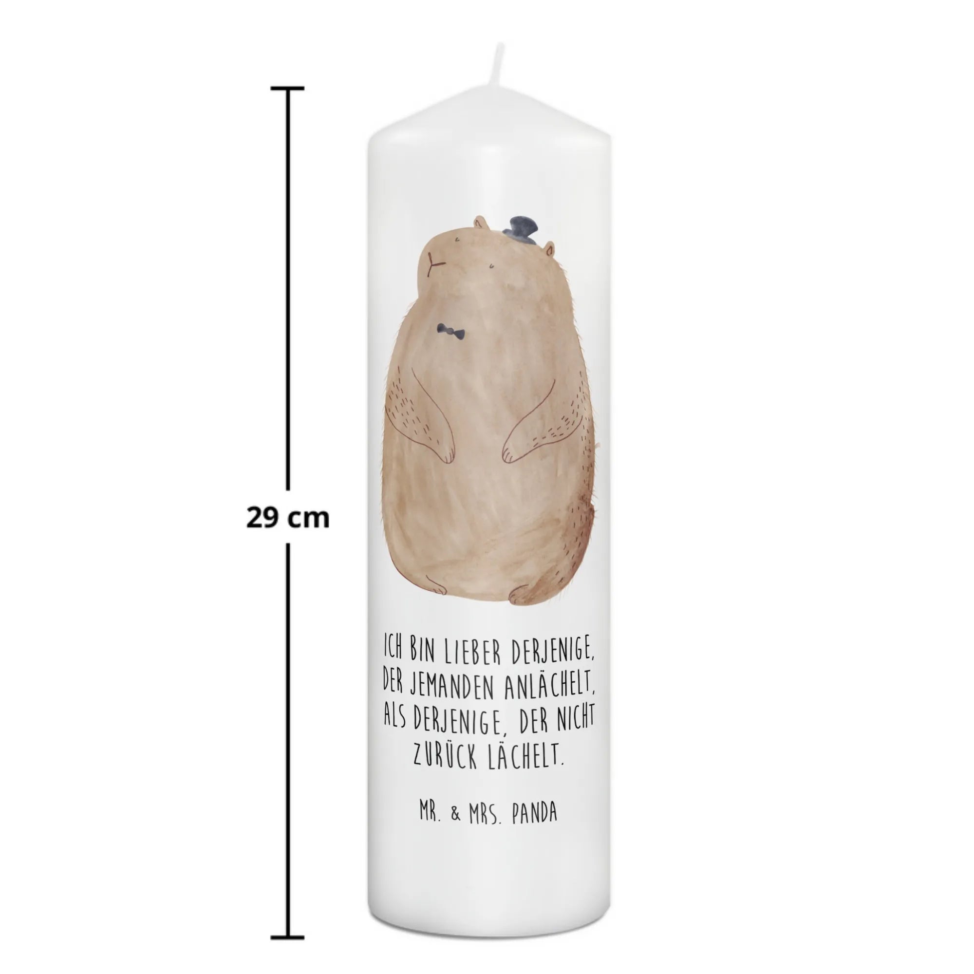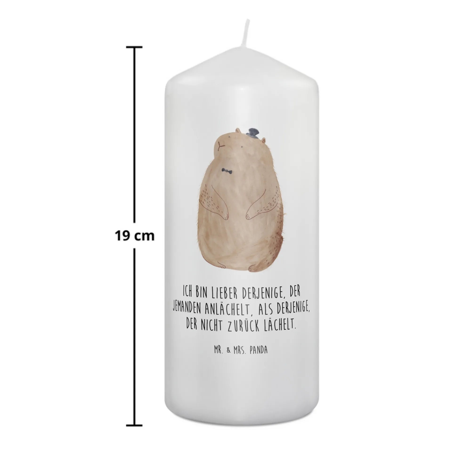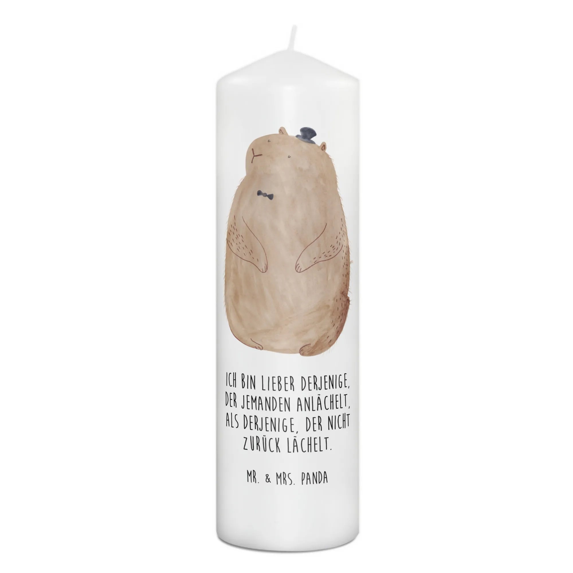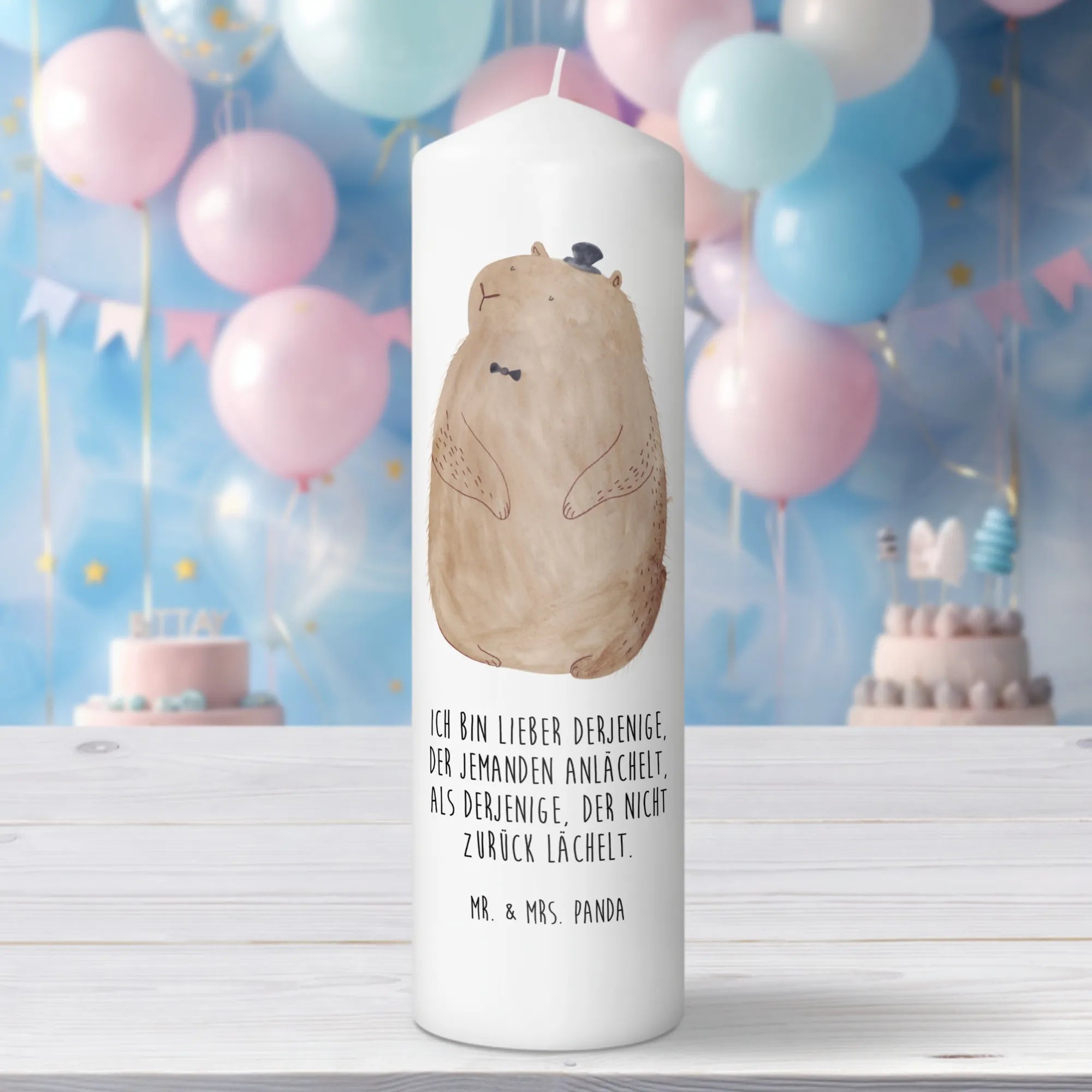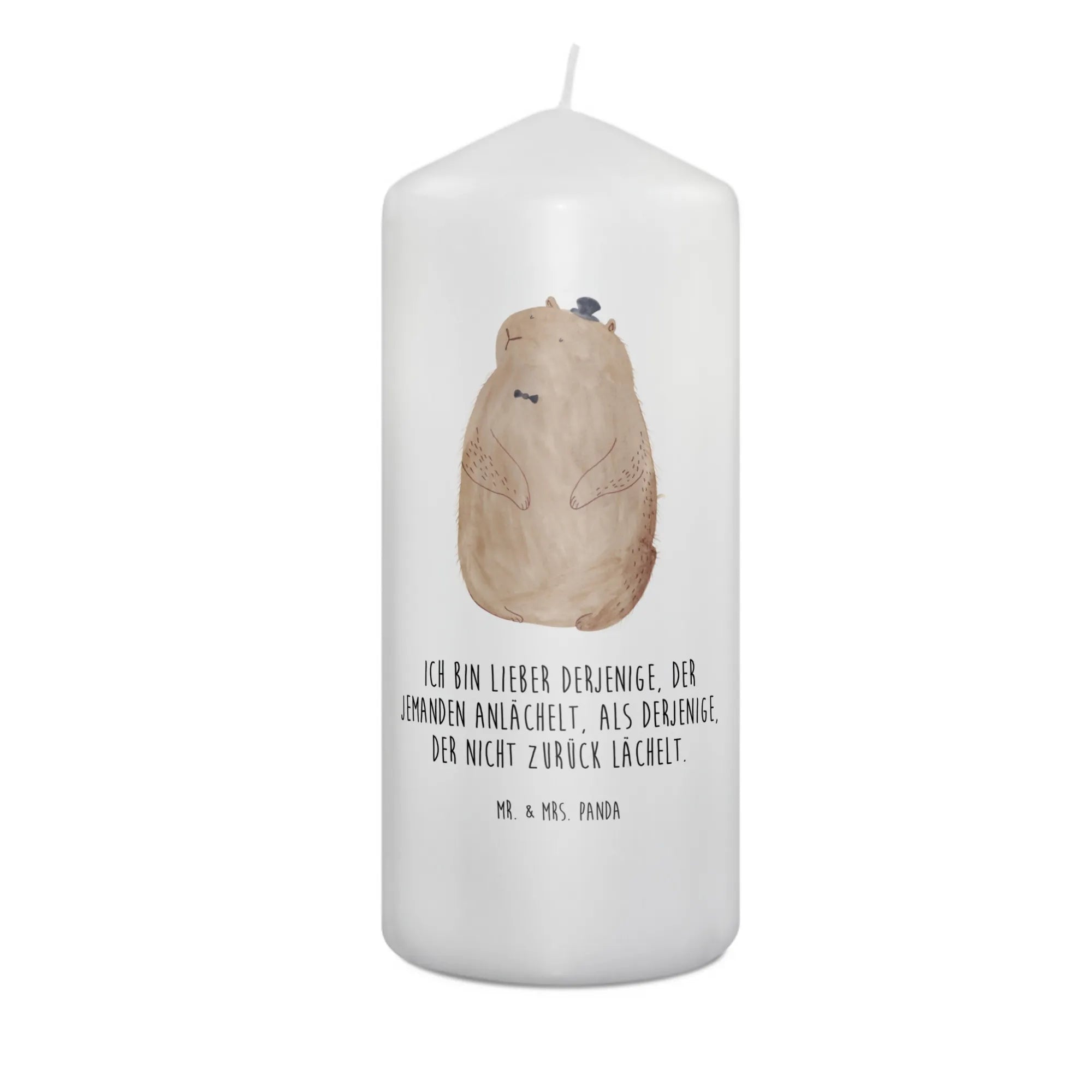 Entdecke die zauberhafte Murmeltier-Kerze von Mr. & Mrs. Panda! Diese einzigartige Kerze ist mehr als nur ein Lichtspender, sie ist ein echtes Stück Gemütlichkeit und Lebensfreude, das jeden Raum erhellt. Mit ihrem süßen Murmeltier-Motiv und dem herzlichen Spruch "Ich bin lieber derjenige, der jemanden anlächelt, als derjenige, der nicht zurück lächelt" verbreitet sie gute Laune und positive Energie. Ob zum Geburtstag, zur Taufe oder zur Kommunion – diese Kerze ist das perfekte Geschenk für jeden besonderen Anlass.