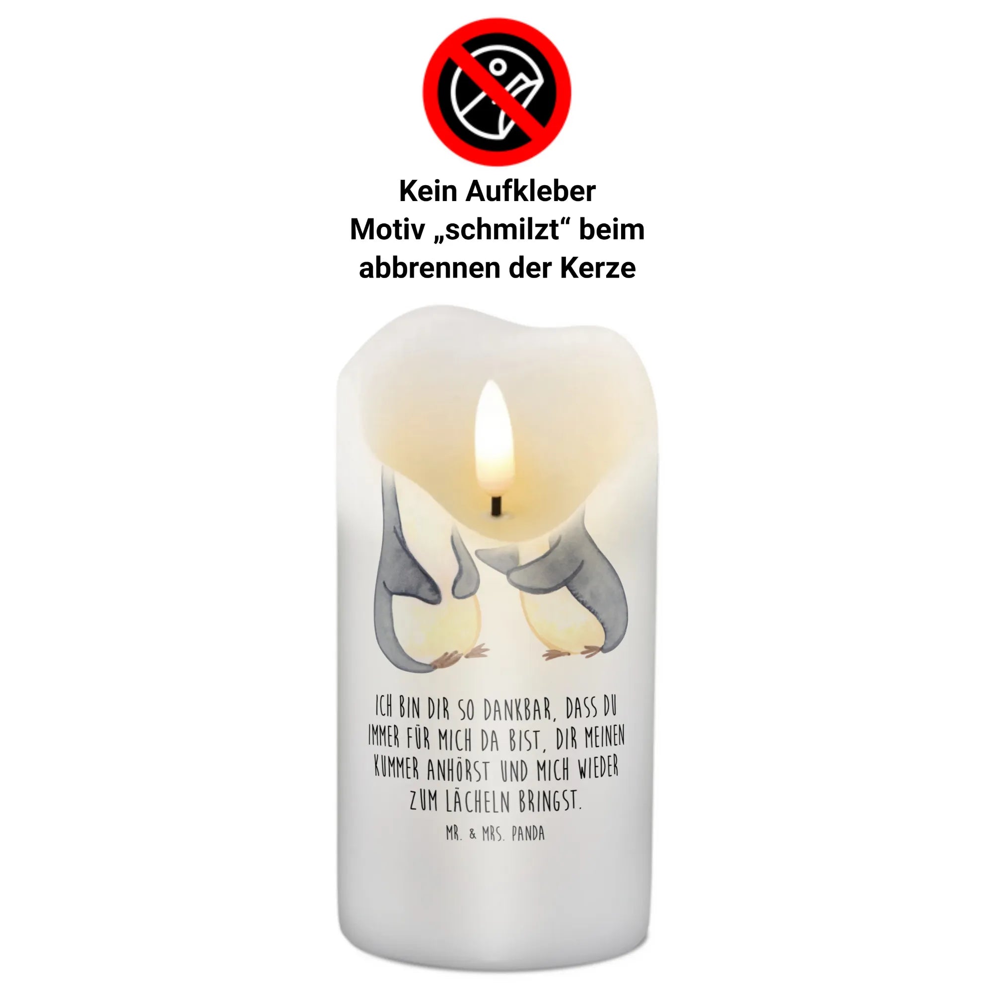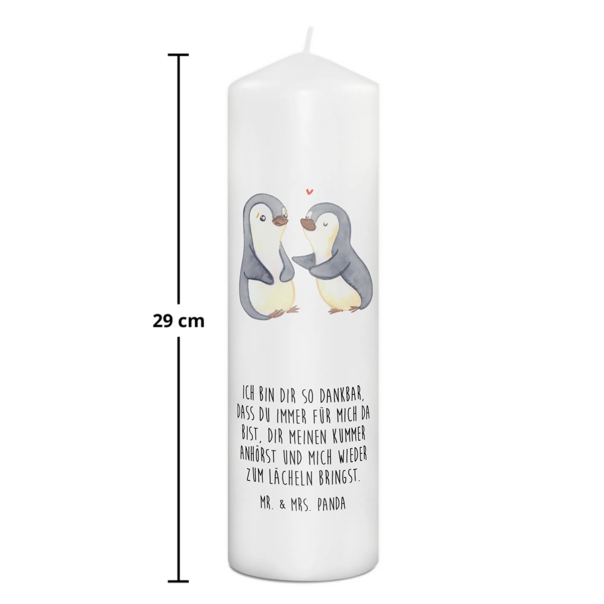 Die wundervolle Taufkerze 'Pinguine trösten' von Mr. & Mrs. Panda ist das perfekte Geschenk für jeden wichtigen Anlass! Ob zur Taufe, zur Kommunion oder zum Geburtstag – diese Kerze ist nicht nur ein wunderschönes Deko-Element, sondern auch eine liebevolle Botschaft für deine Liebsten. Die zwei niedlichen Pinguine, die sich zärtlich zuneigen, spenden Trost und zeigen, dass man immer füreinander da ist. Mit dem zauberhaften Slogan 'Ich bin dir so dankbar, dass du immer für mich da bist, dir meinen Kummer anhörst und mich wieder zum Lächeln bringst' wird diese Kerze zum perfekten Ausdruck von Dankbarkeit und Liebe.