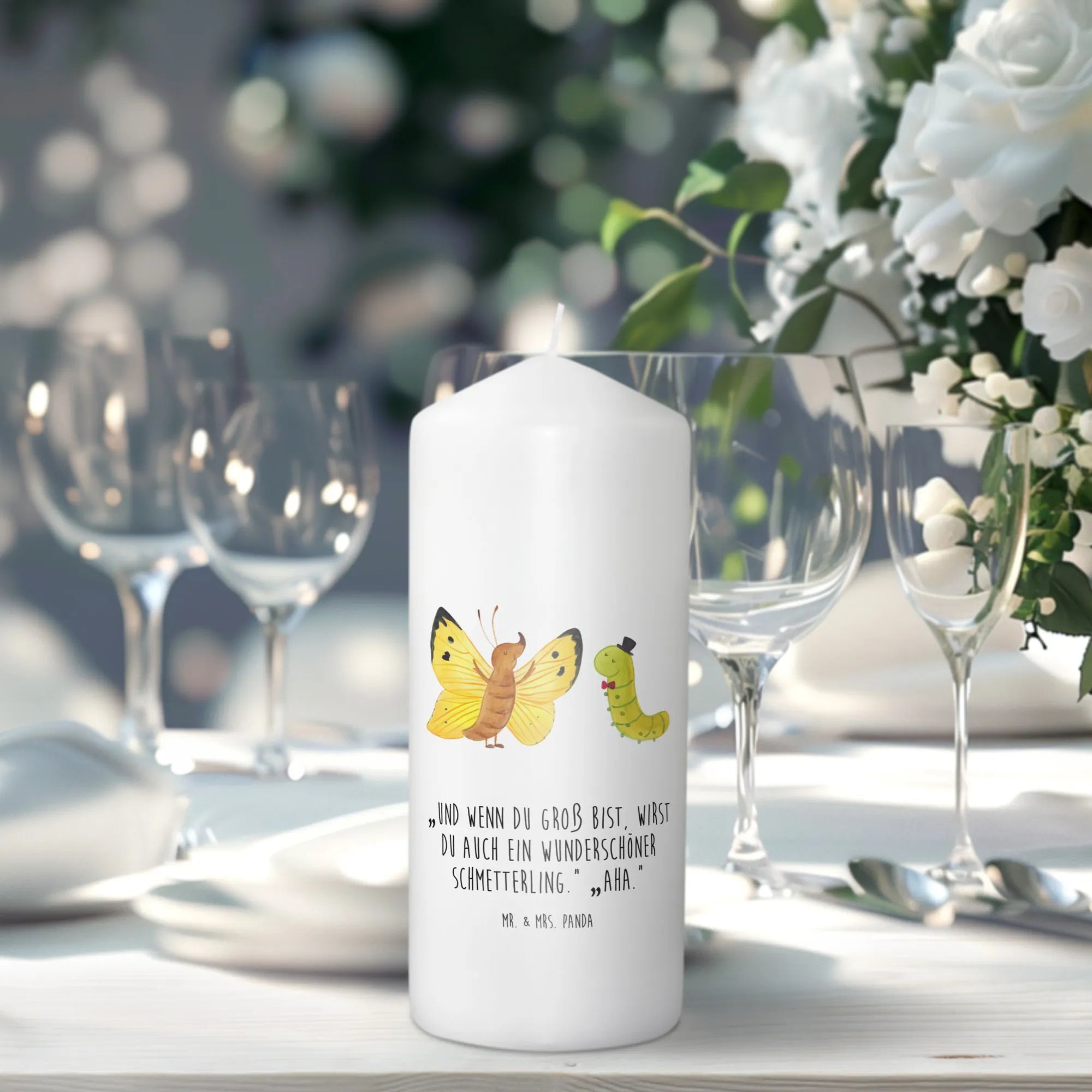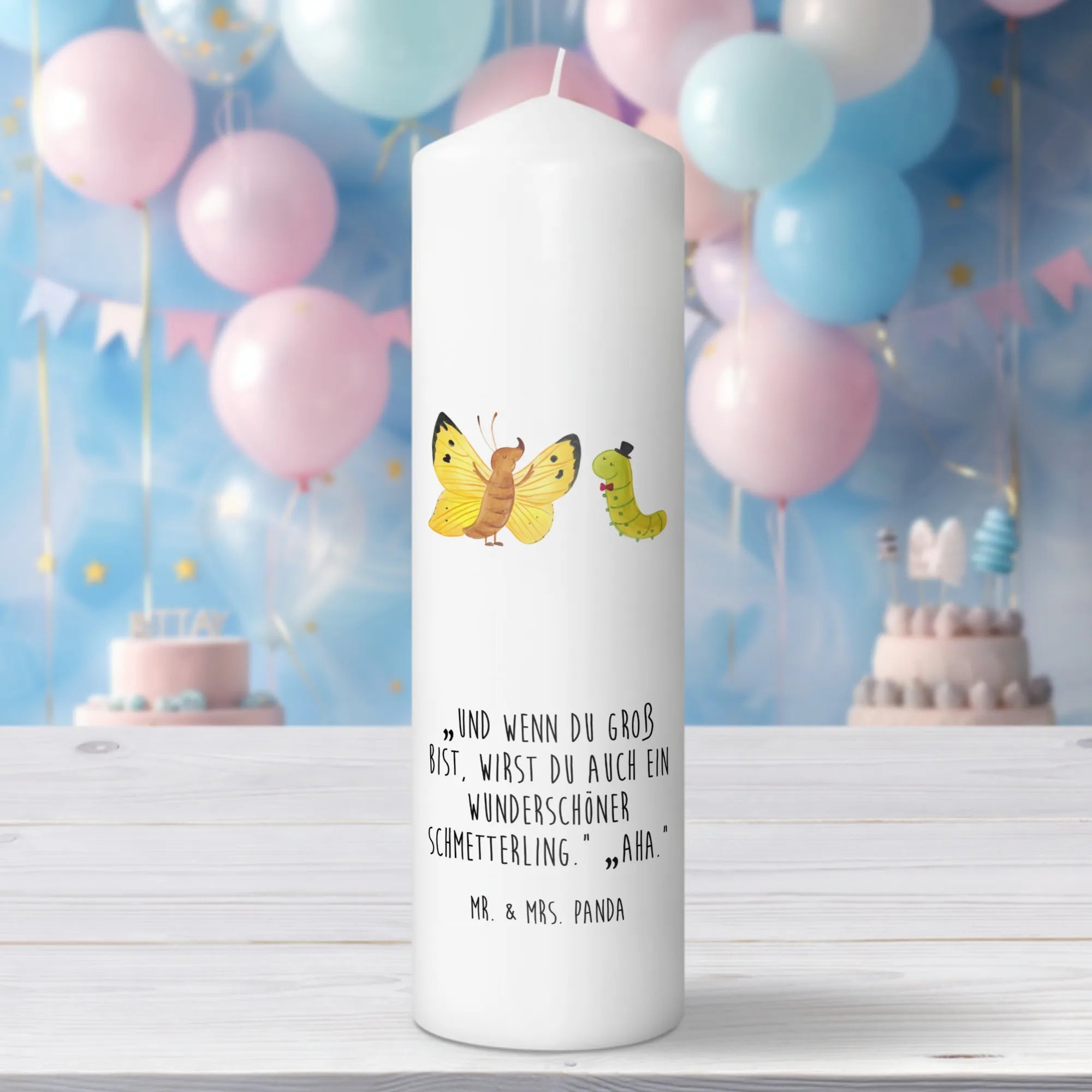 świeca gąsienica motyl - 29 x 8 cm XL - z napisem