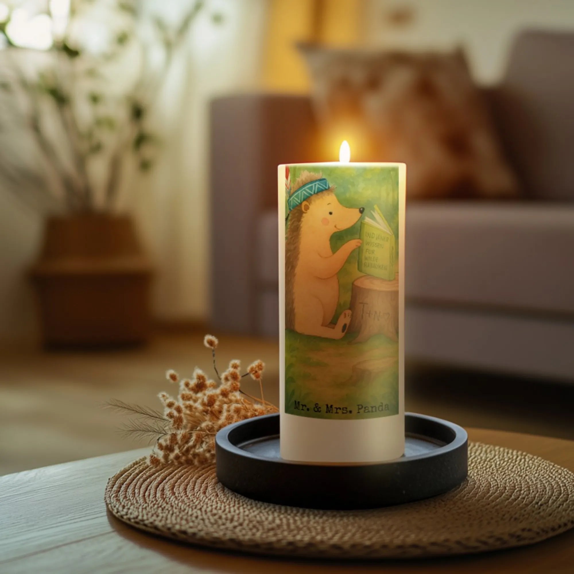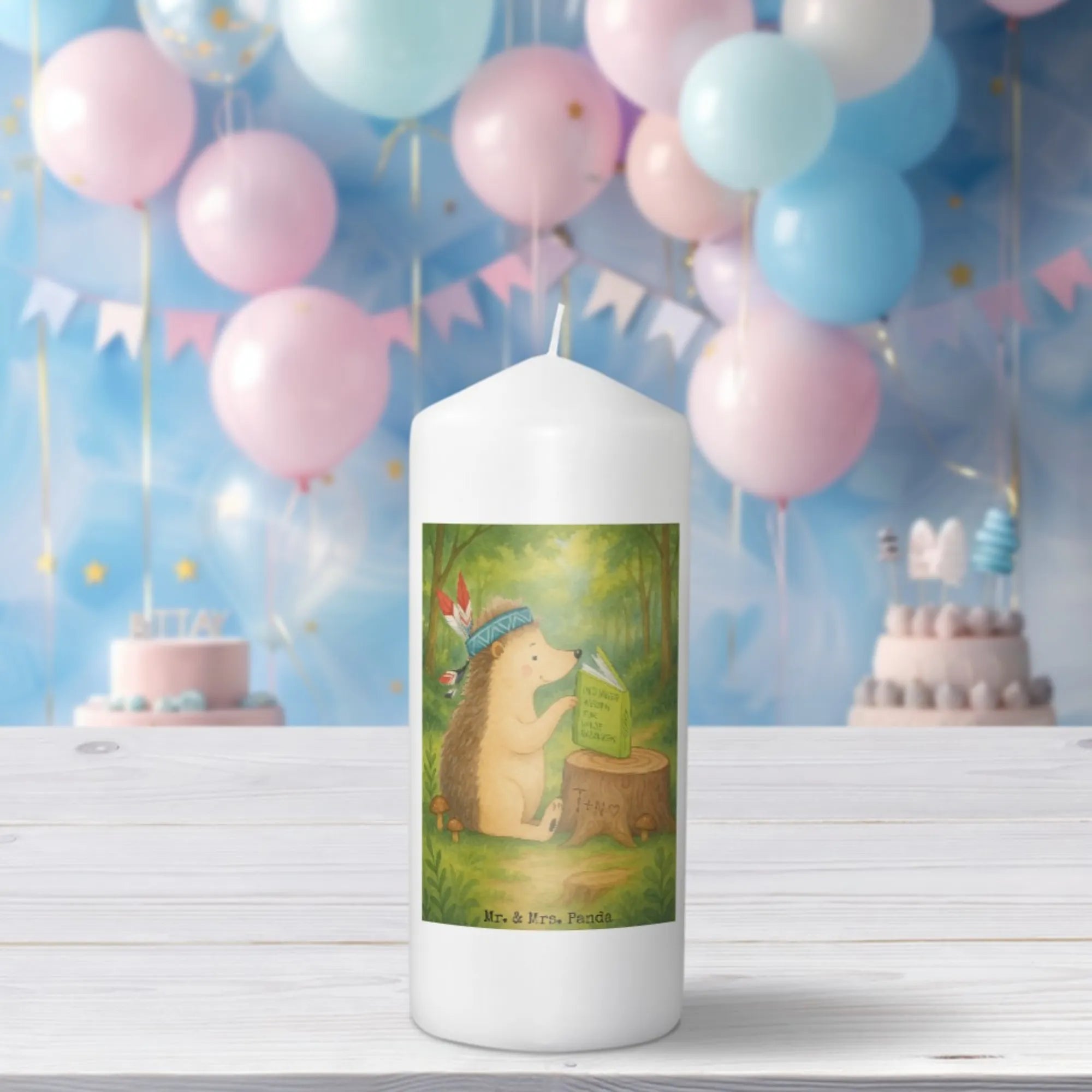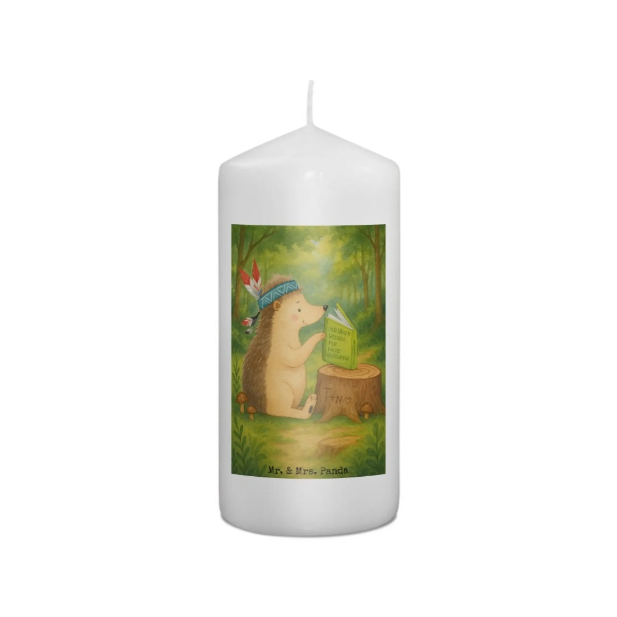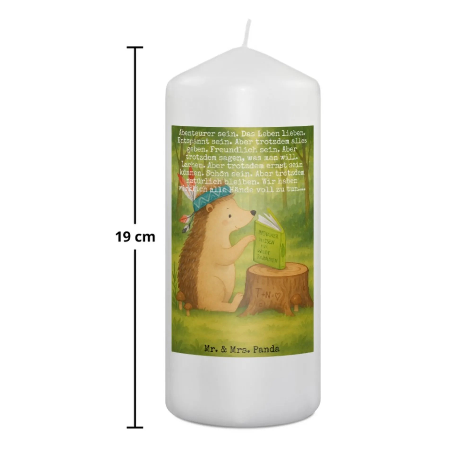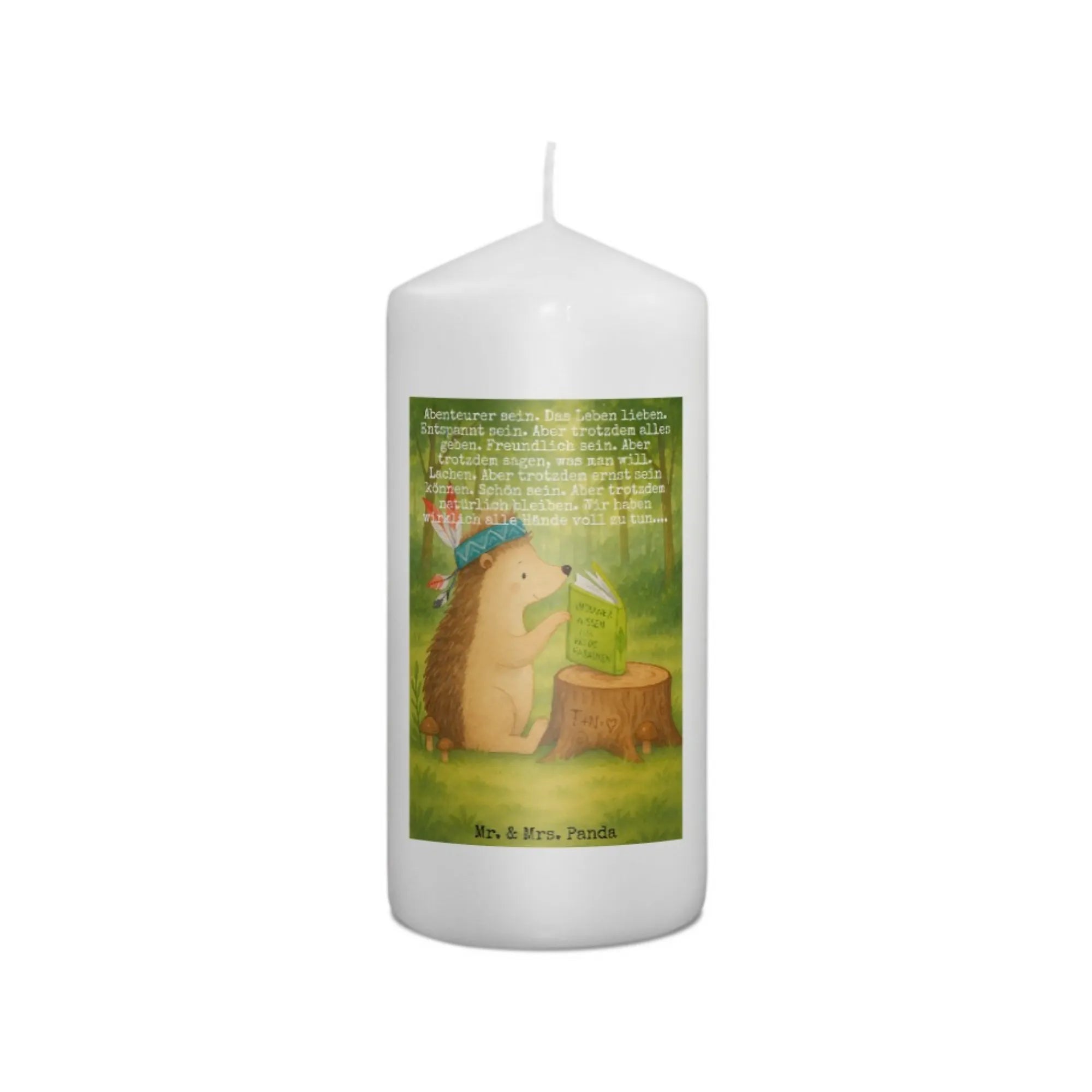 świeca jeż Ozdoba z piór Design - 19 x 8 cm - z napisem