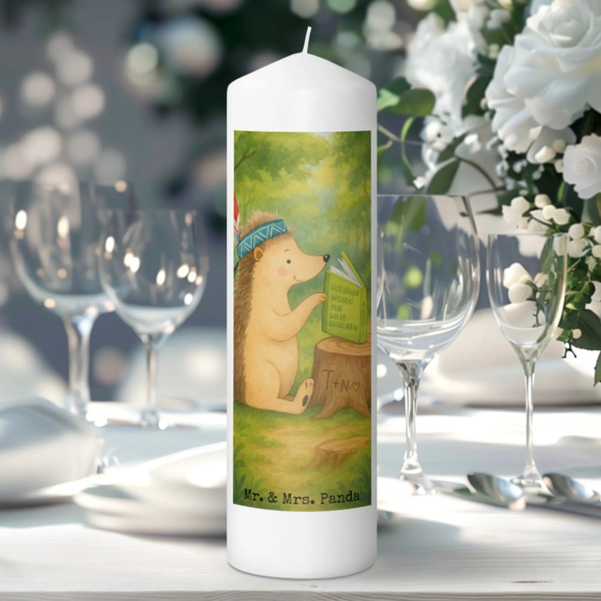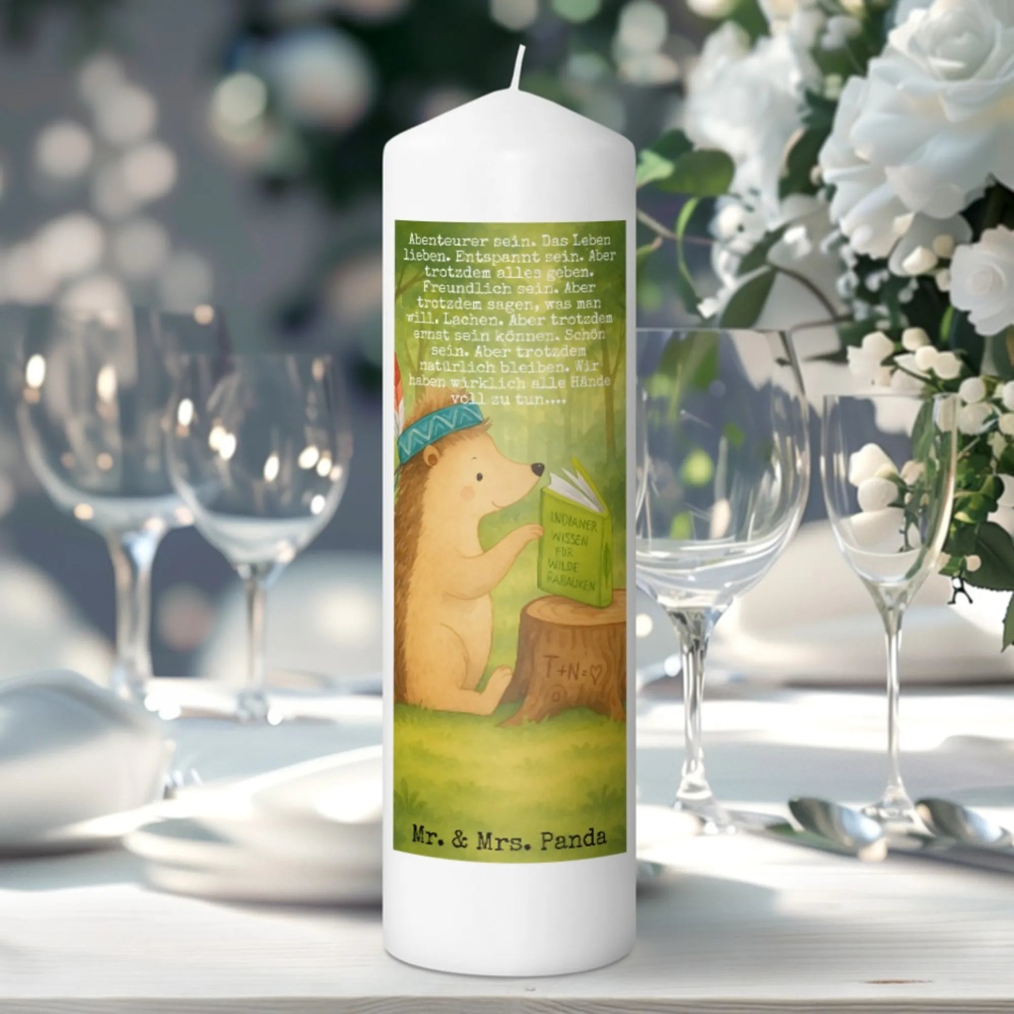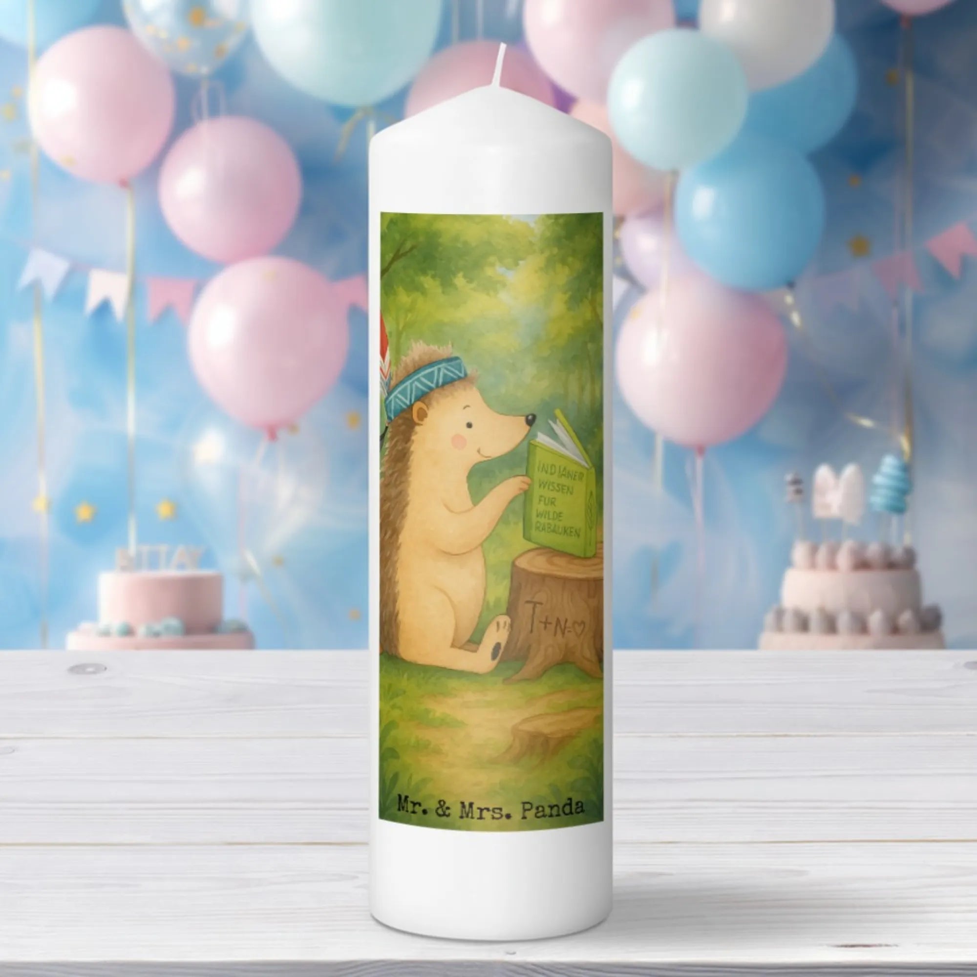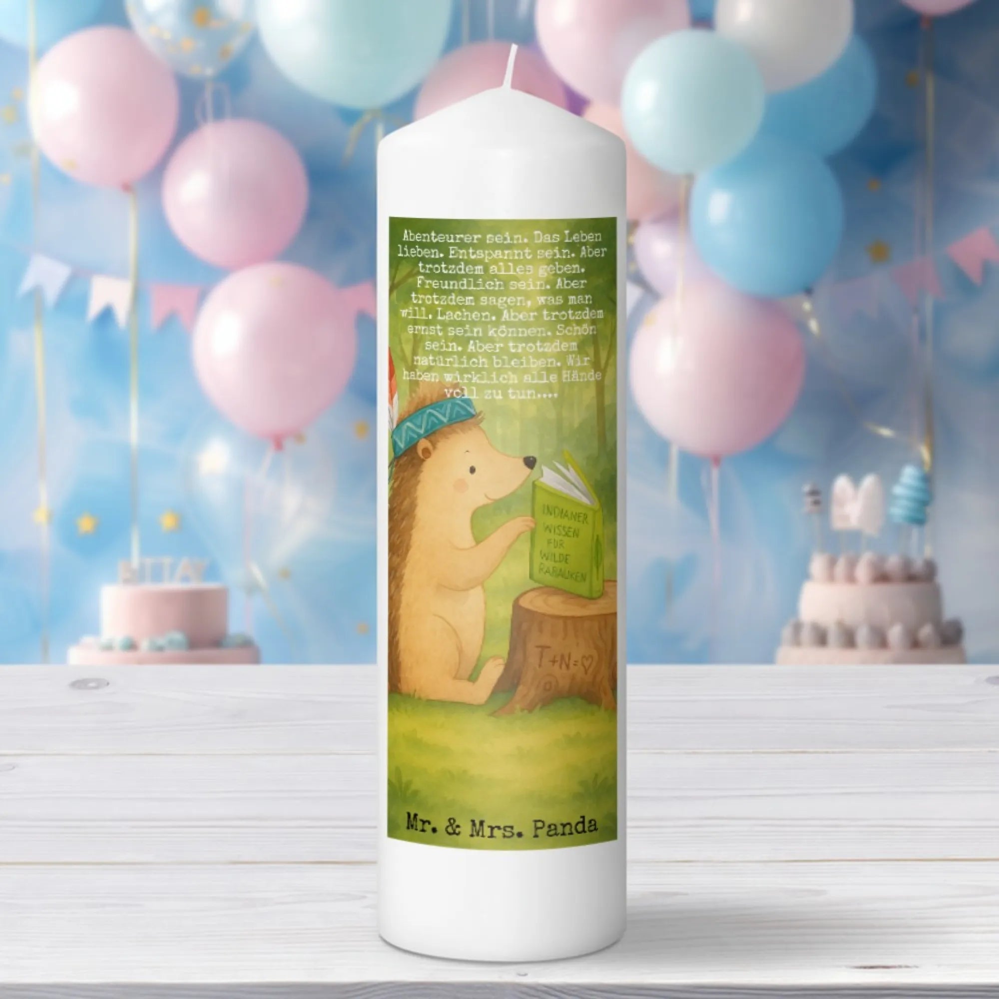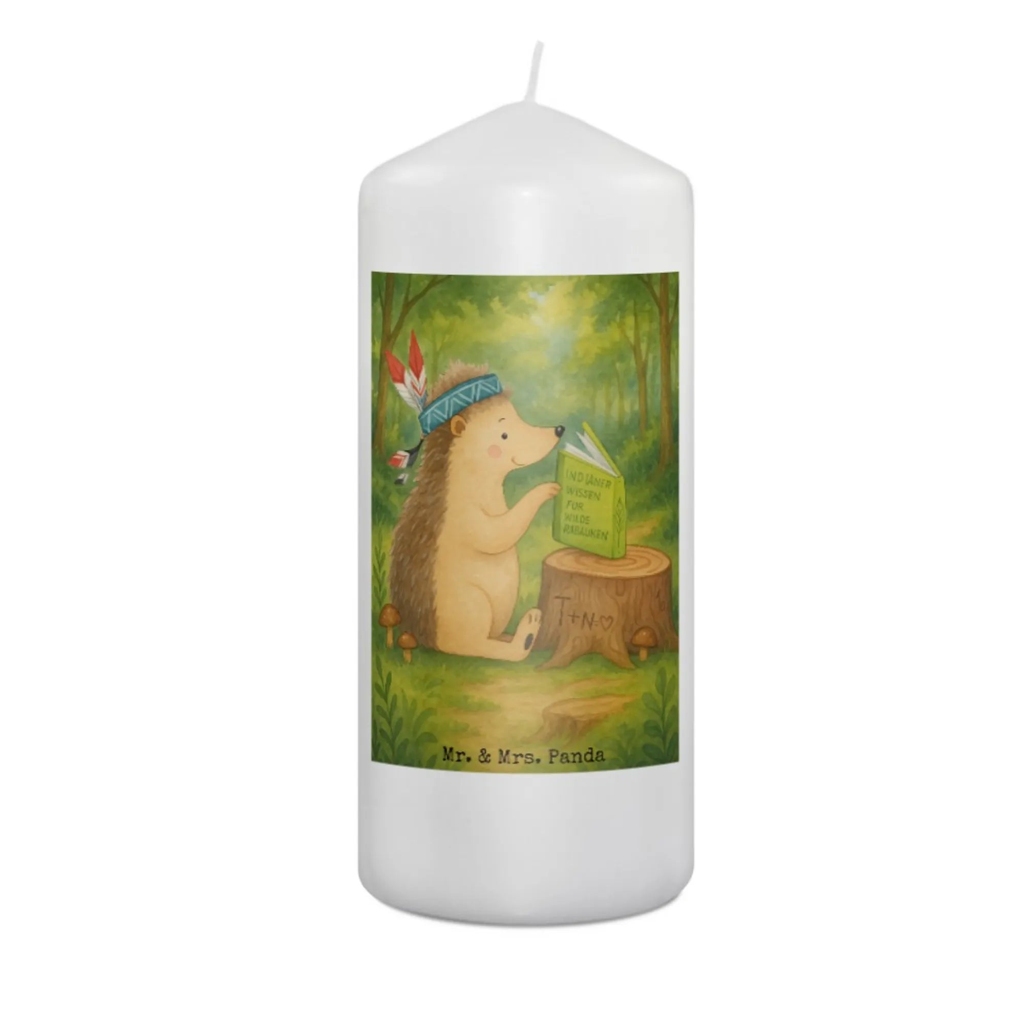 świeca jeż Ozdoba z piór Design - 19 x 8 cm - z napisem