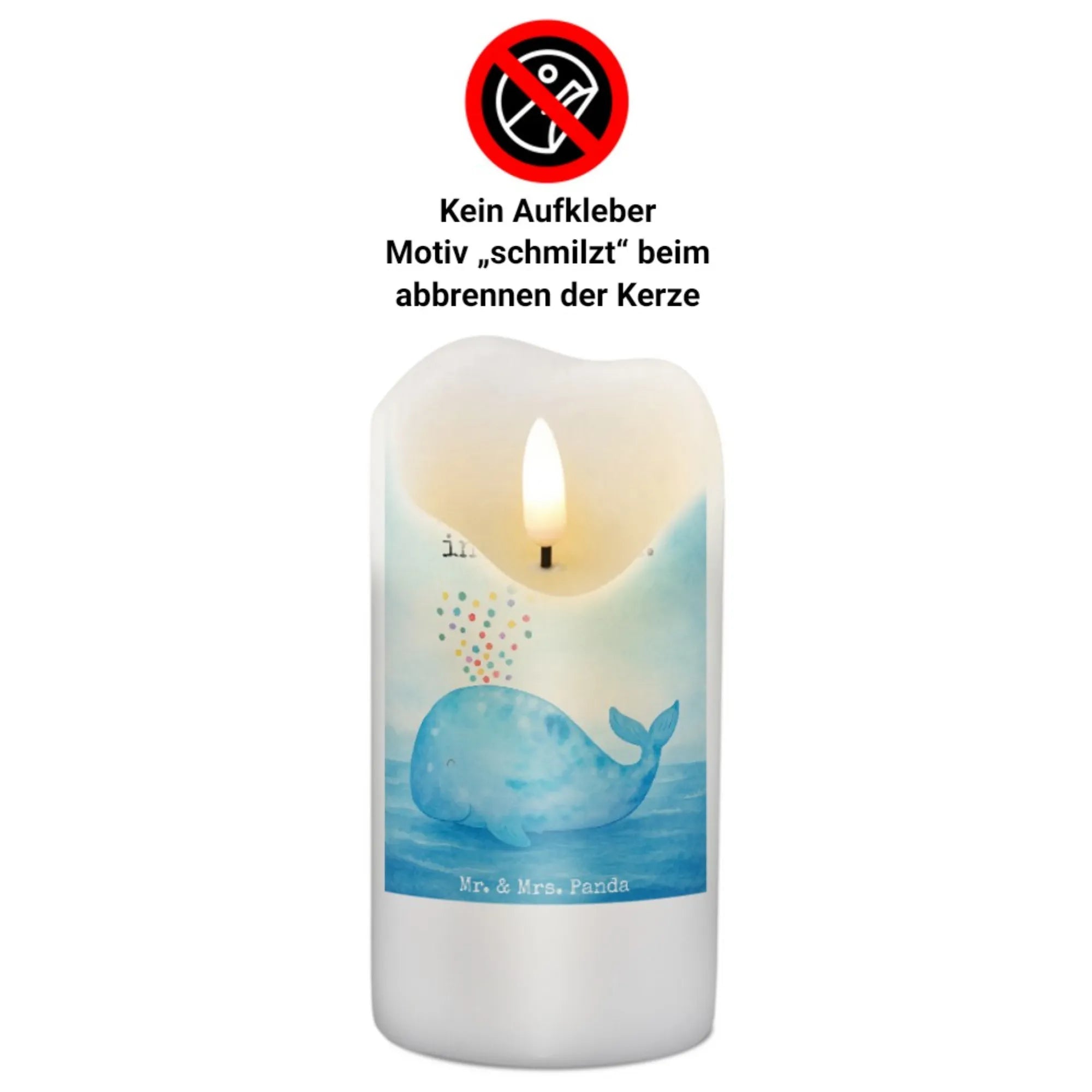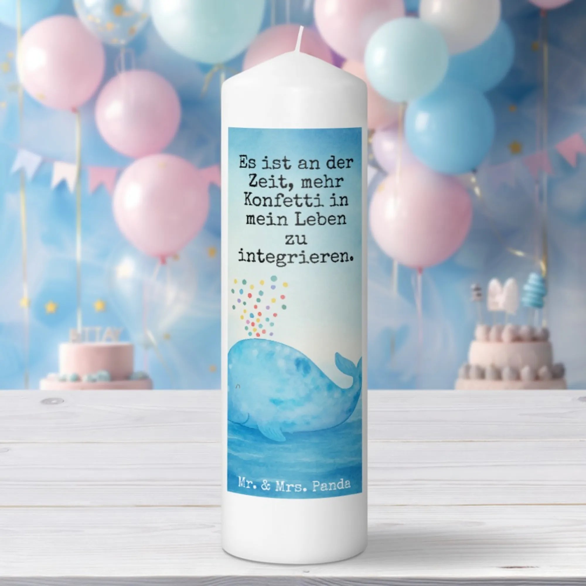 świeca wieloryb konfetti Design - 15 x 7 cm - z napisem