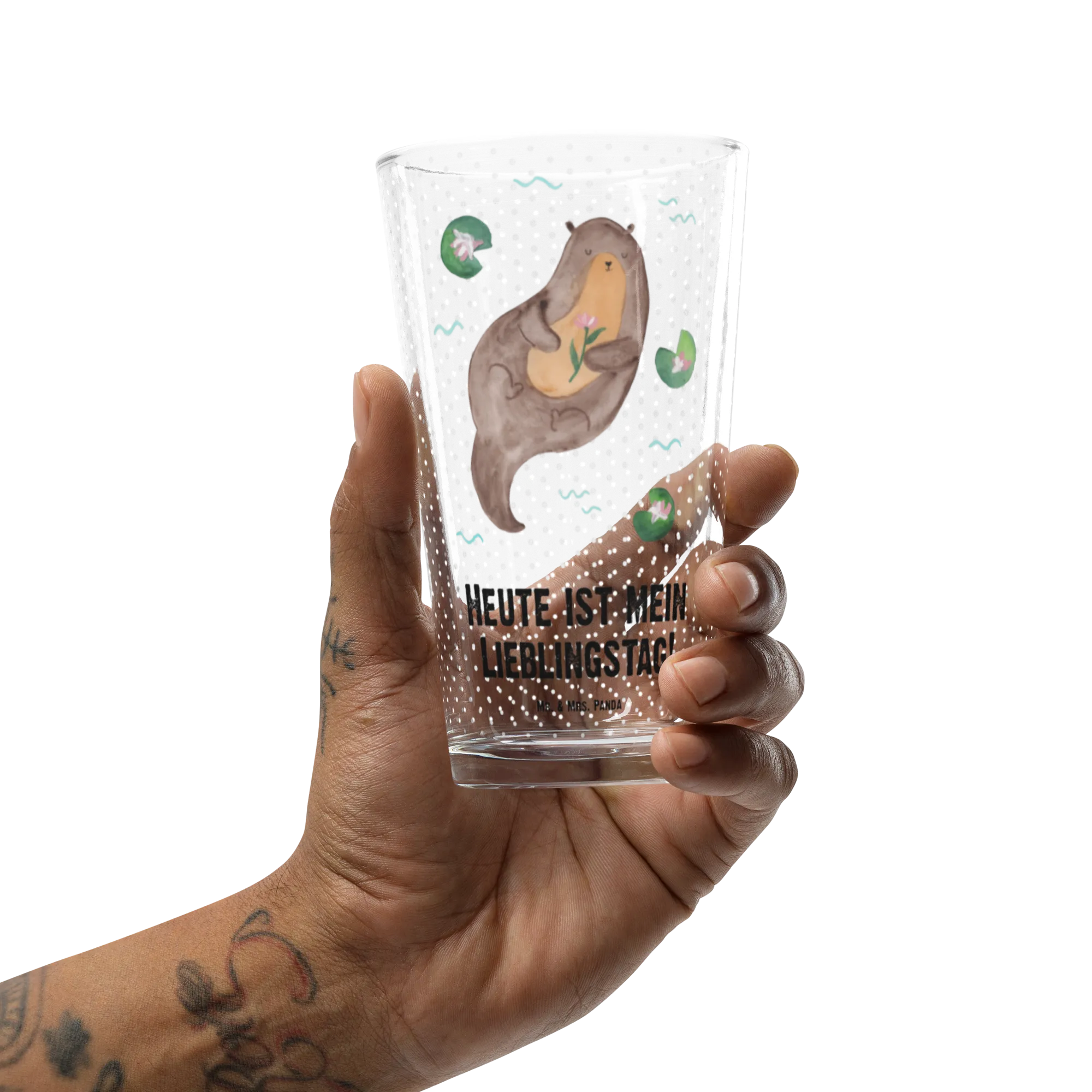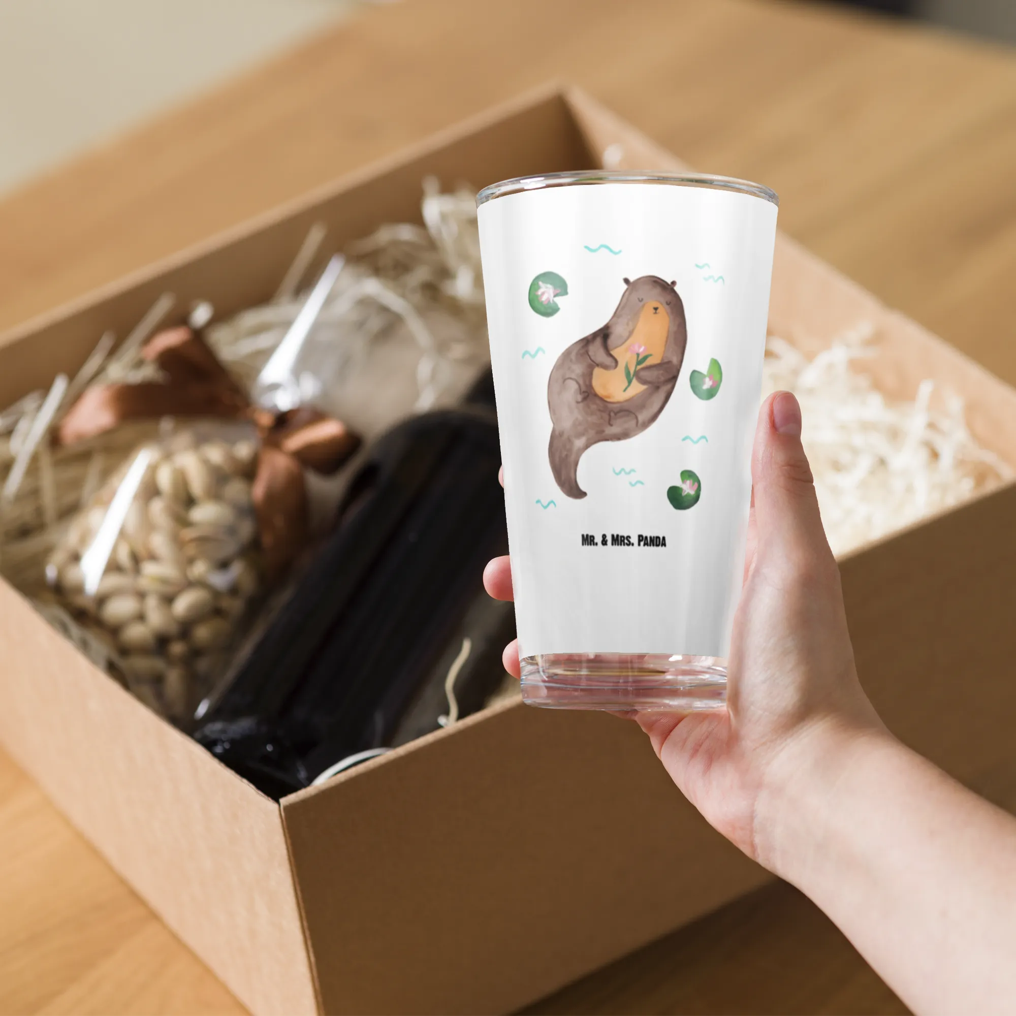 Die hochwertige Verarbeitung sorgt dafür, dass es lange Freude bereitet. Bitte beachte, dass das Glas nicht für die Mikrowelle oder die Spülmaschine geeignet ist. Da die Motive mit viel Liebe von Mrs. Panda handgezeichnet wurden, spiegelt das Design die lebensfrohe Persönlichkeit der Otter wider und bringt Freude in jeden Tag.