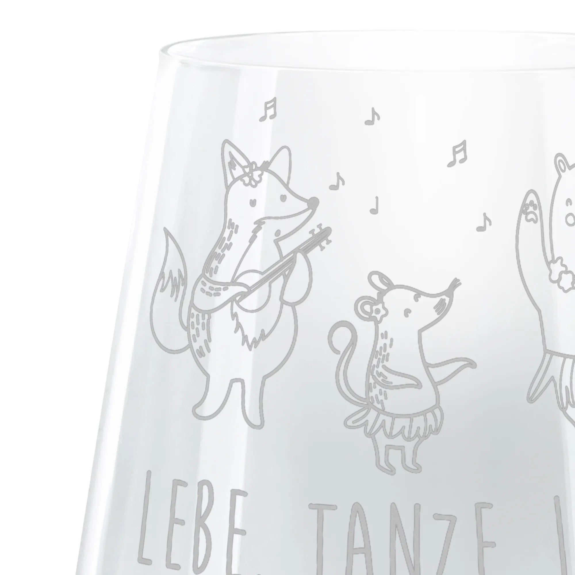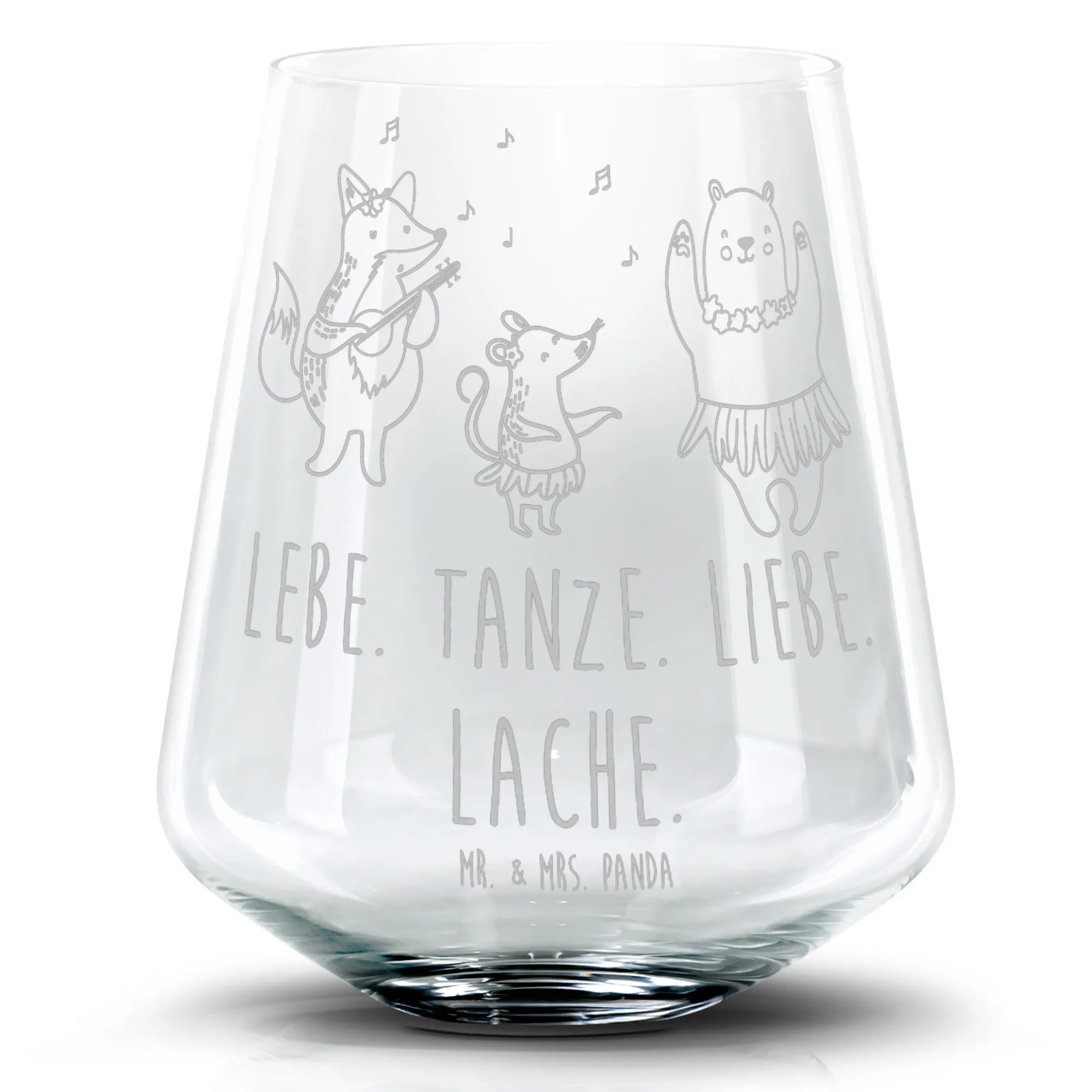 Die lebhaften Waldtiere, die in bunten Hula-Röcken zu fröhlichen Hawaiianischen Klängen tanzen, bringen die sonnige Stimmung des Urlaubs direkt zu dir nach Hause. Die kunstvolle Lasergravur sorgt für einen stilvollen Matteffekt und macht dieses Glas zu einem echten Hingucker. Wenn du den Spruch "Lebe. Tanze. Liebe. Lache." liest, fühlst du dich gleich inspiriert, das Leben in vollen Zügen zu genießen.