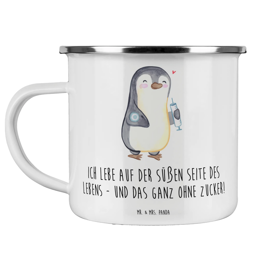Entdecke die wunderschöne Camping Emaille Tasse mit dem niedlichen Pinguin Diabetes aus der Kollektion "Tiere mit Superkräften" von Mr. & Mrs. Panda! Diese Tasse ist nicht nur ein praktischer Begleiter für deine Outdoor-Abenteuer, sondern auch ein ganz besonderes Geschenk für Menschen, die ihren Alltag mit Diabetes gestalten.