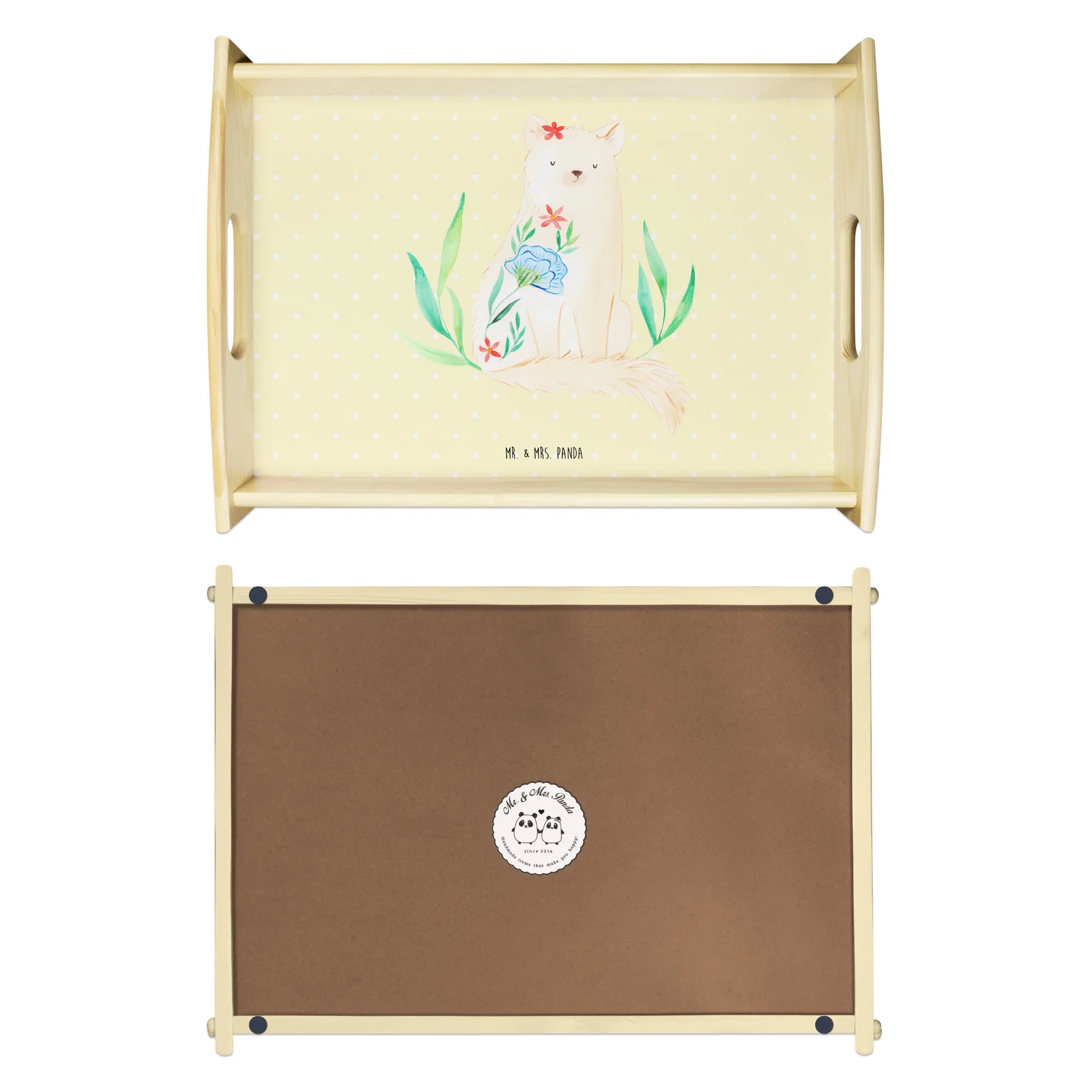 Taca serwisowa kot kwiaty - z napisem - Pastelowy żółty