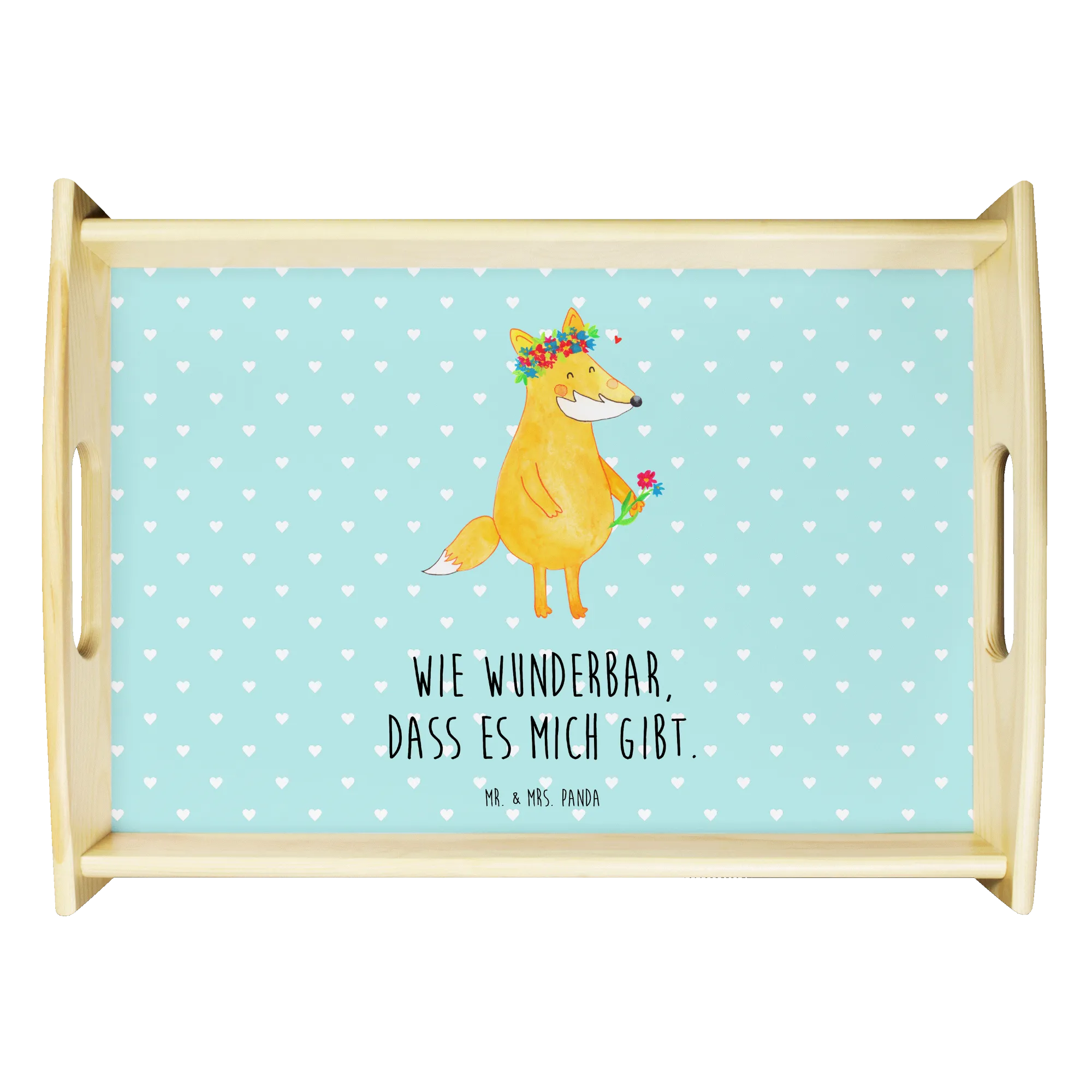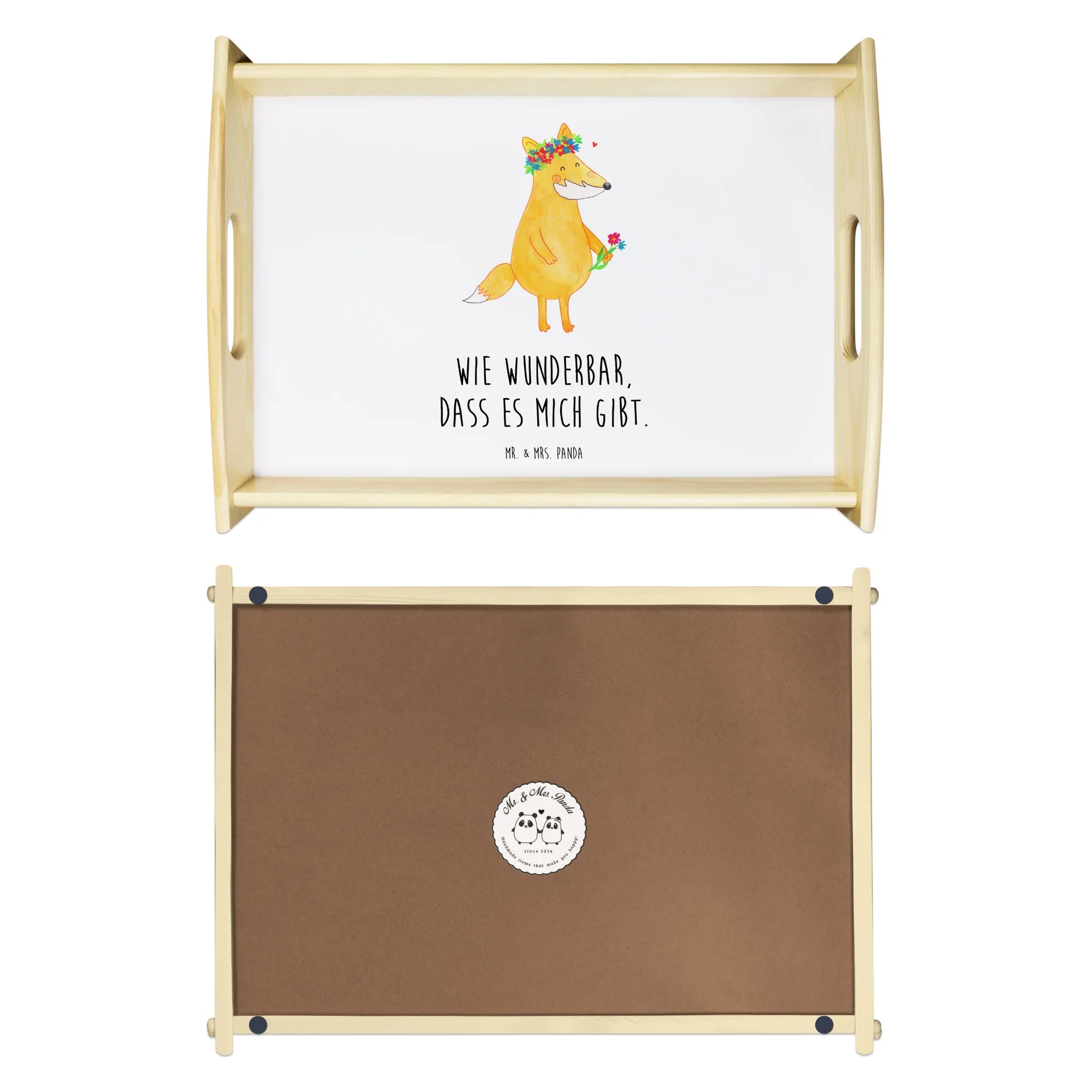 Taca serwisowa lis Kwiaty - z napisem - biały