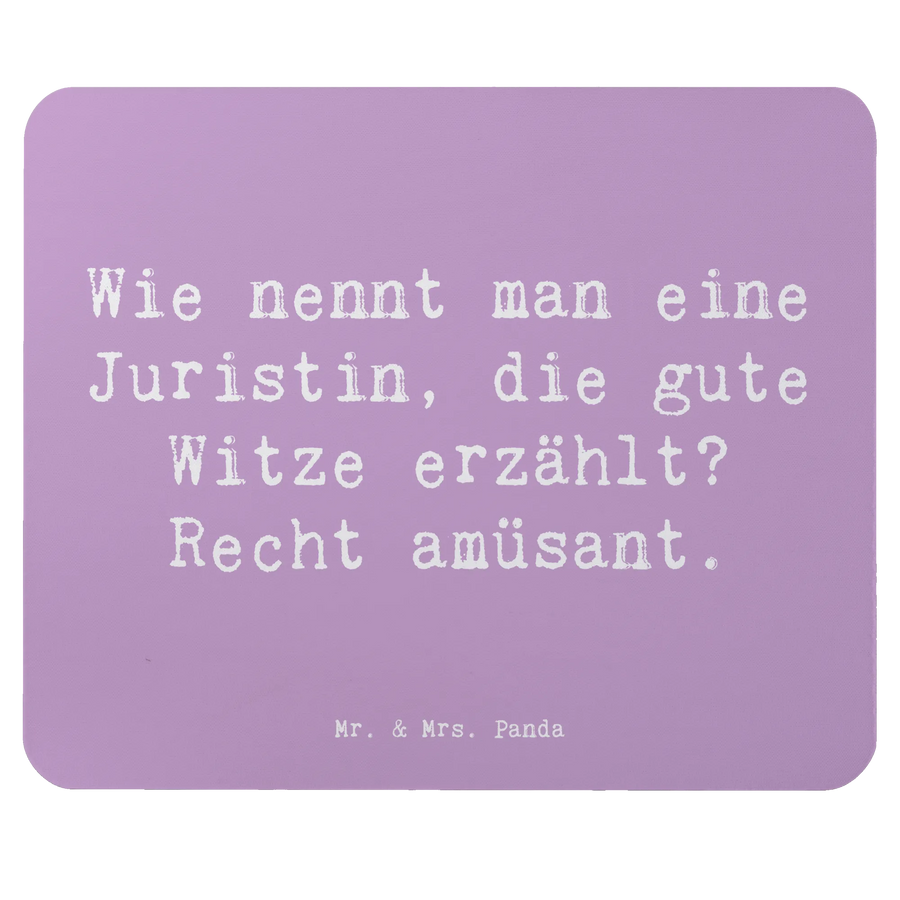 Das liebevoll gestaltete Mauspad mit dem witzigen Spruch "Wie nennt man eine Juristin, die gute Witze erzählt? Recht amüsant." aus der Kollektion Beruf von Mr. & Mrs. Panda ist das perfekte Geschenk für alle Juristinnen und Rechtsanwältinnen.