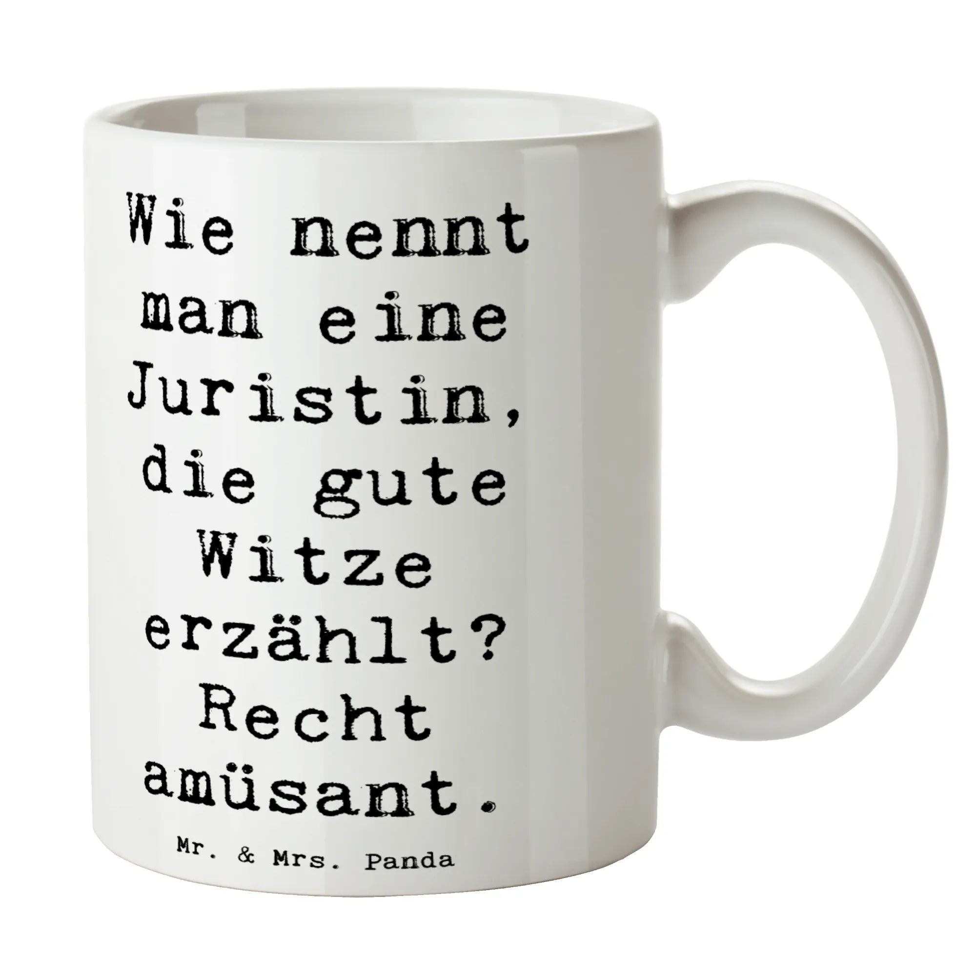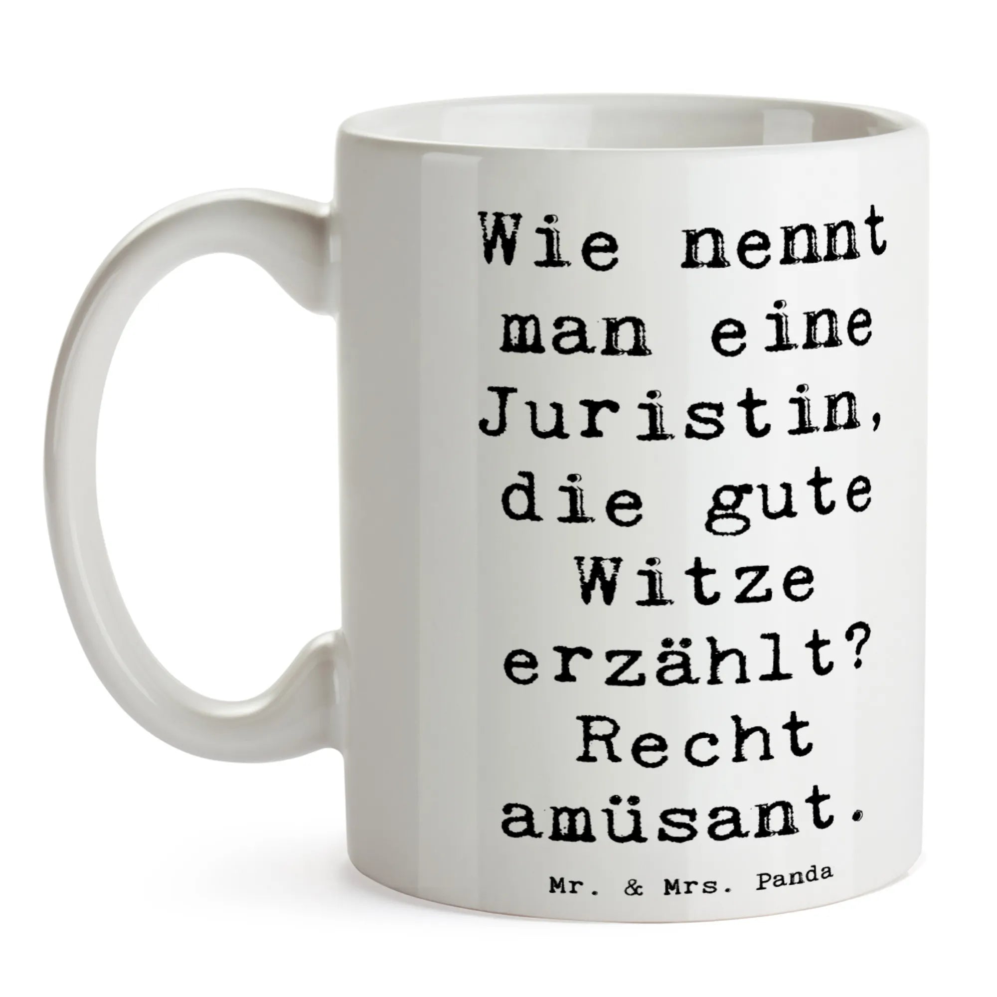 Der humorvolle Spruch "Wie nennt man eine Juristin, die gute Witze erzählt? Recht amüsant." zaubert ein Lächeln auf jedes Gesicht und sorgt für gute Laune am Arbeitsplatz oder zu Hause. Diese Keramiktasse hat eine Füllmenge von 325 ml und ist spülmaschinenfest, sodass sie auch nach zahlreichen Waschladungen in der Spülmaschine, immer glänzend aussieht.