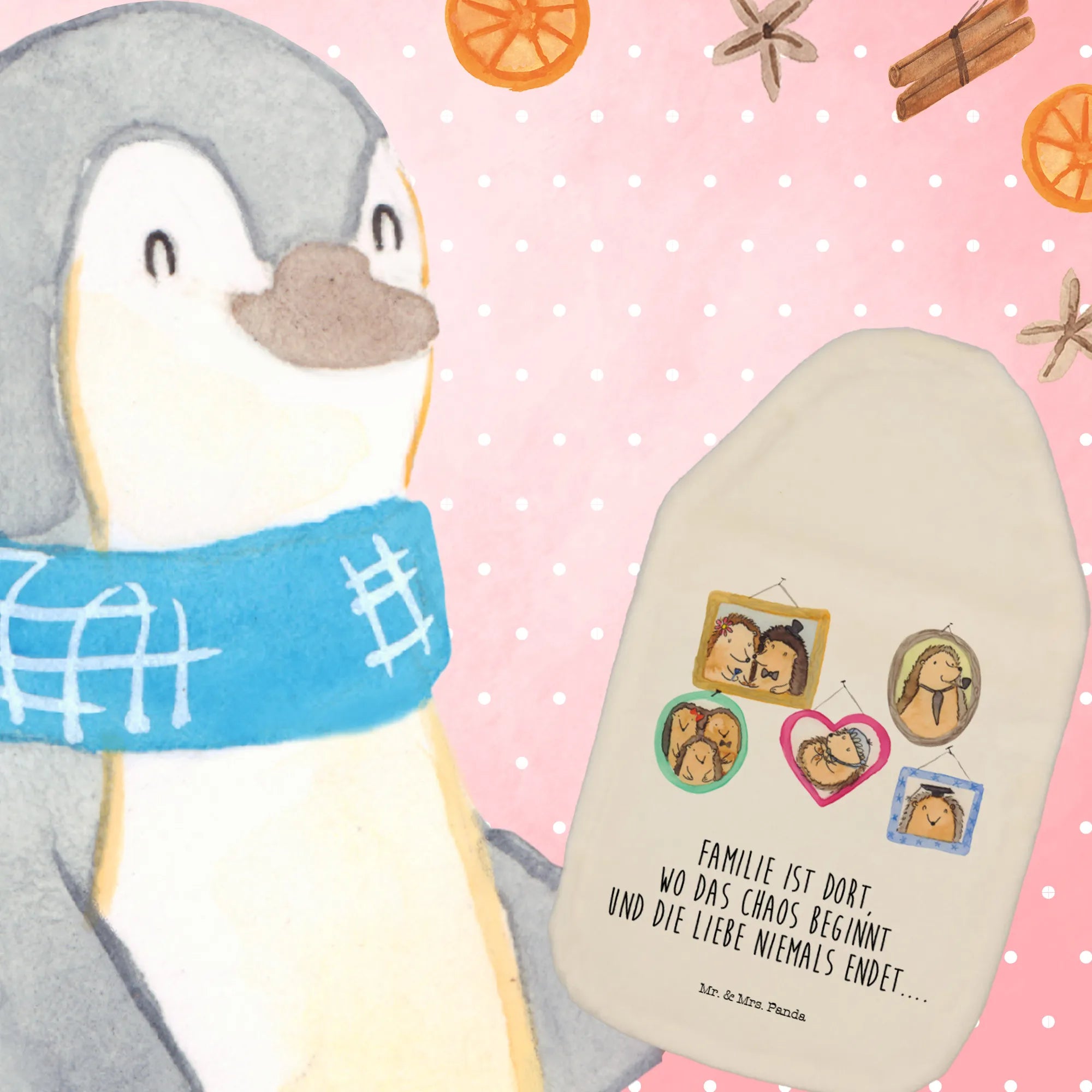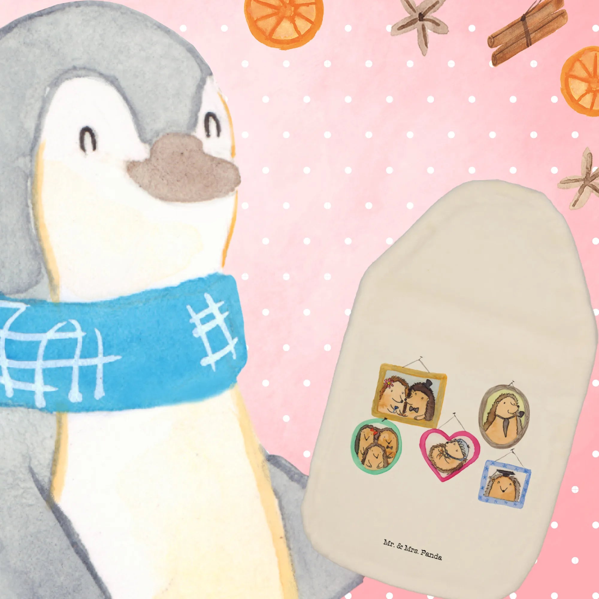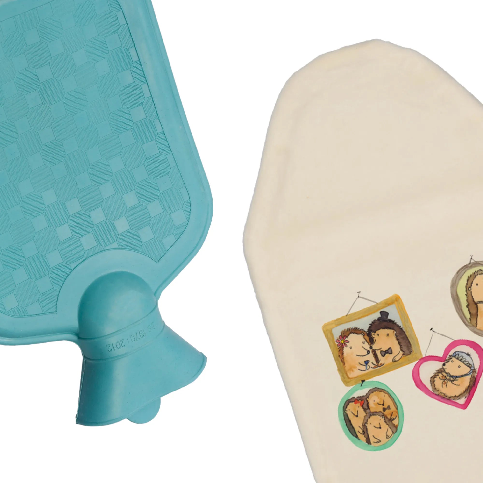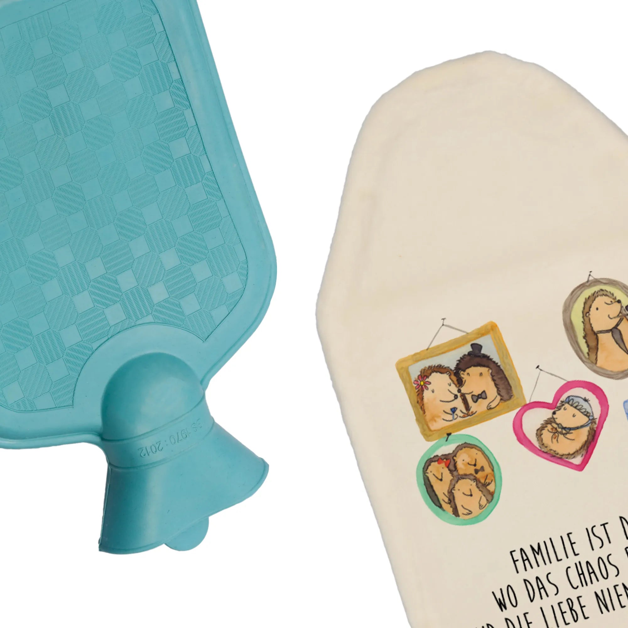 Termofor Rodzina jeży - z napisem - biały