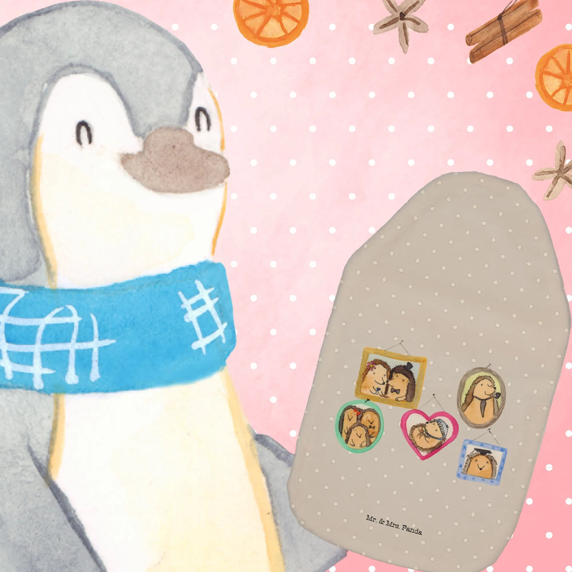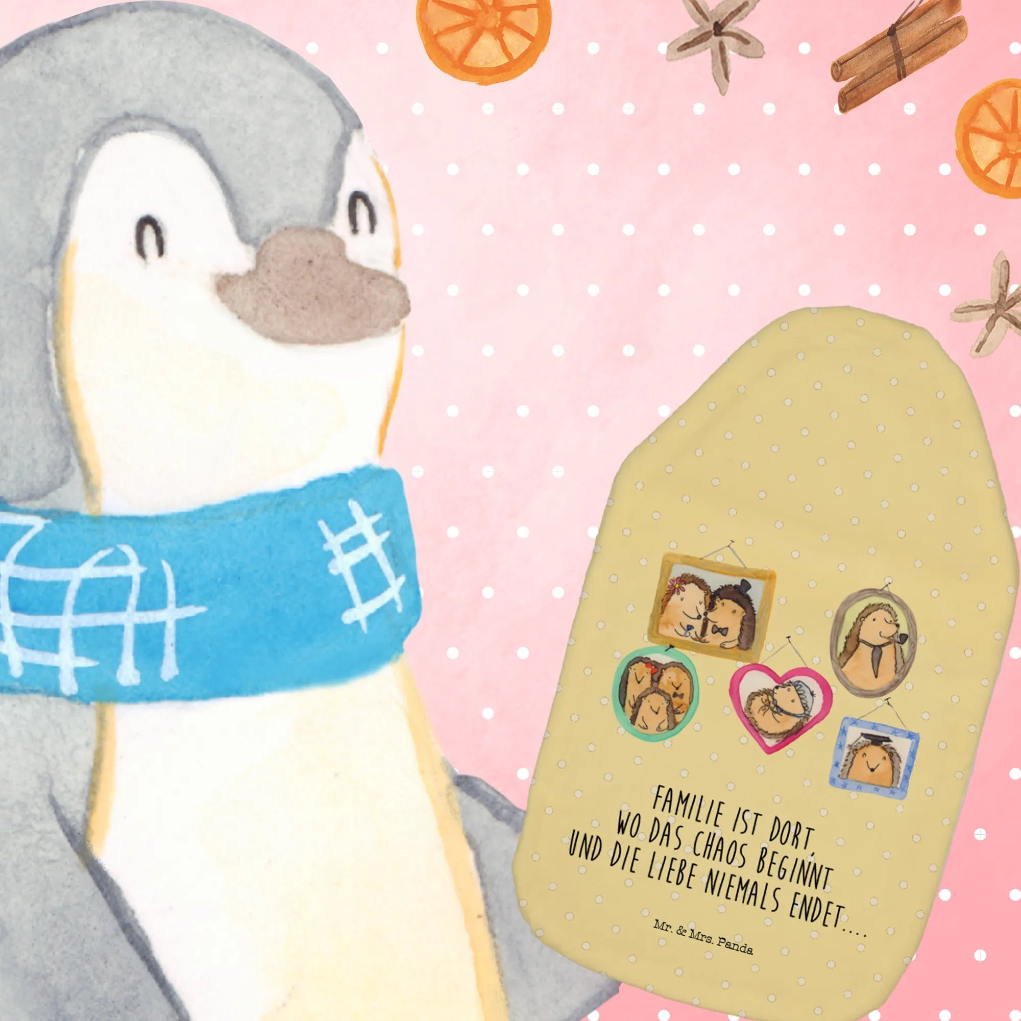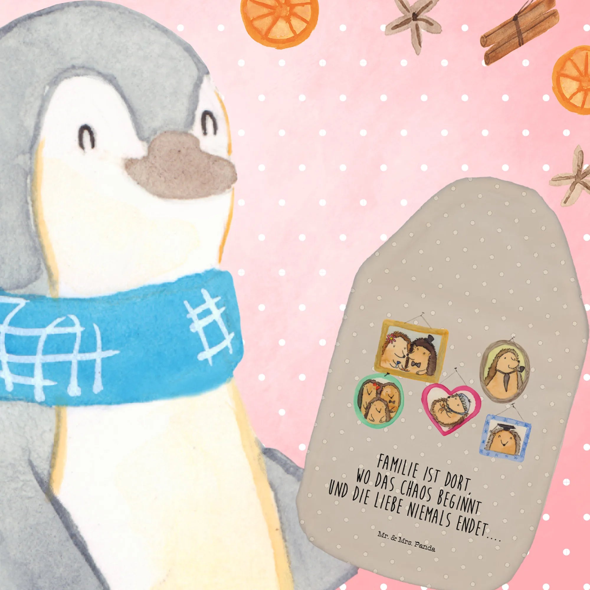 Termofor Rodzina jeży - z napisem - biały