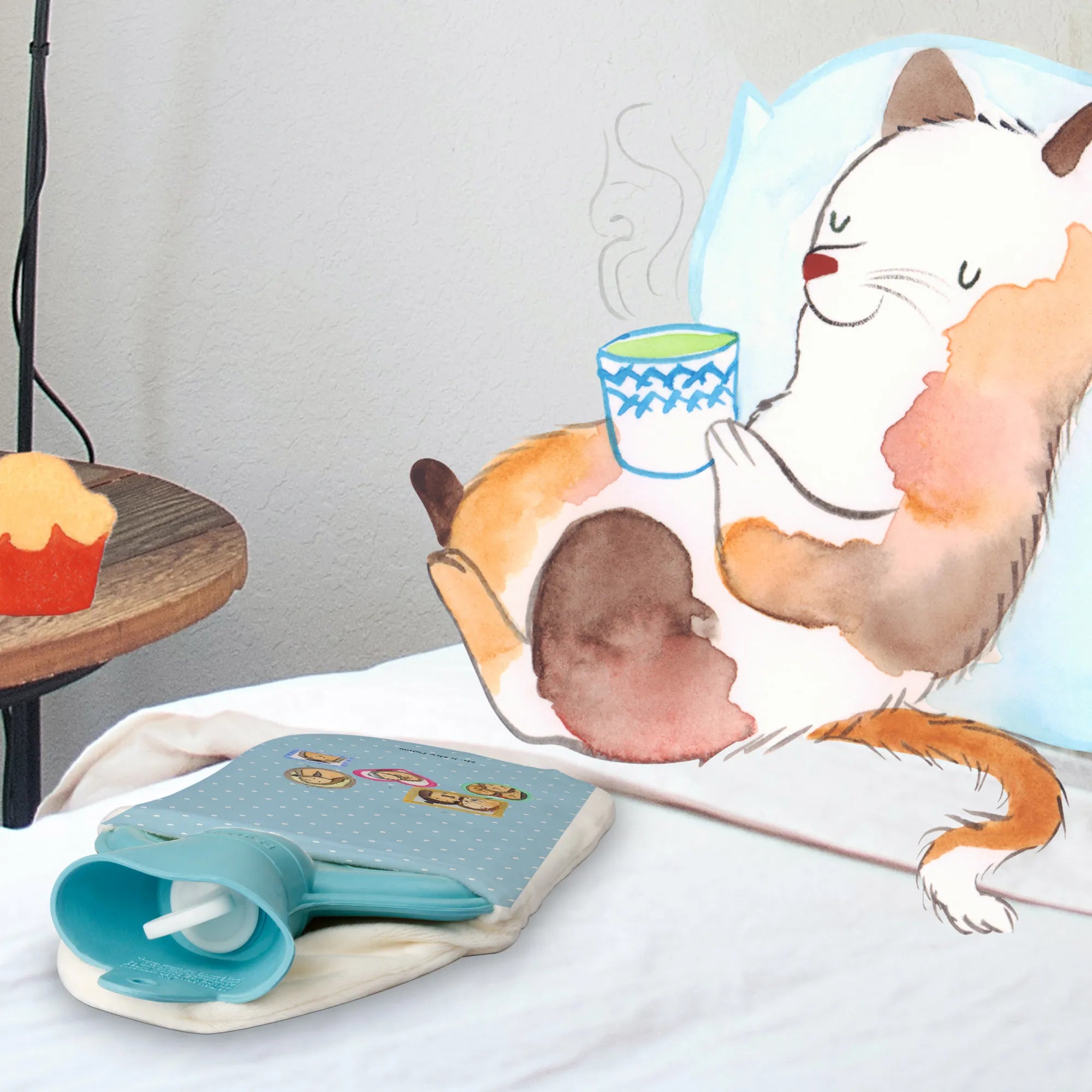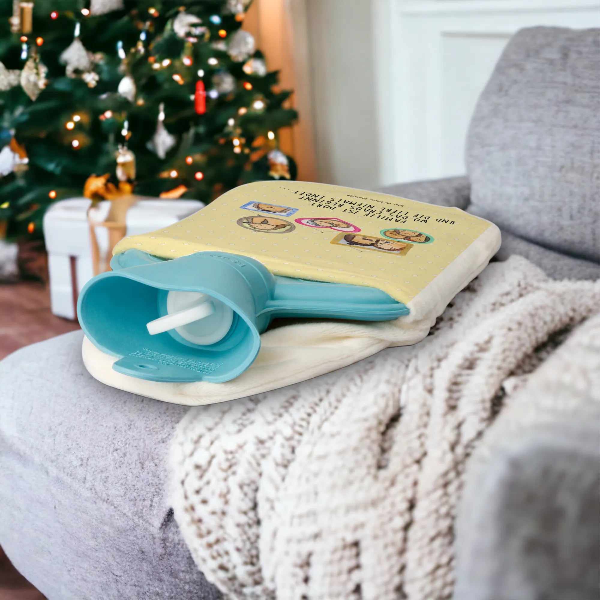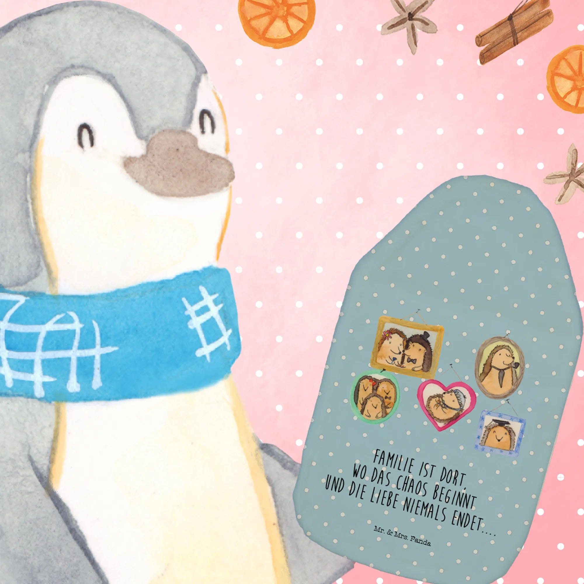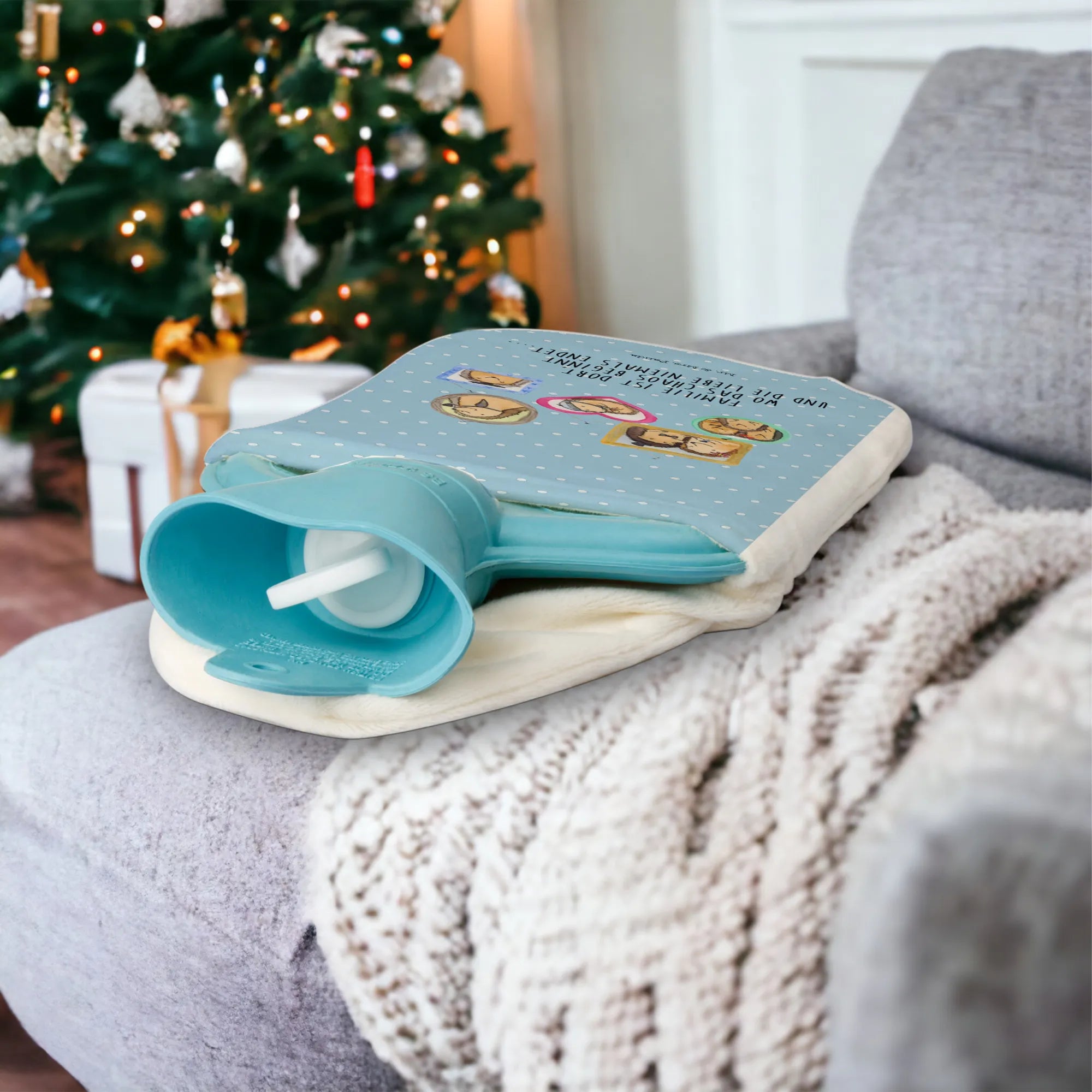 Termofor Rodzina jeży - z napisem - biały