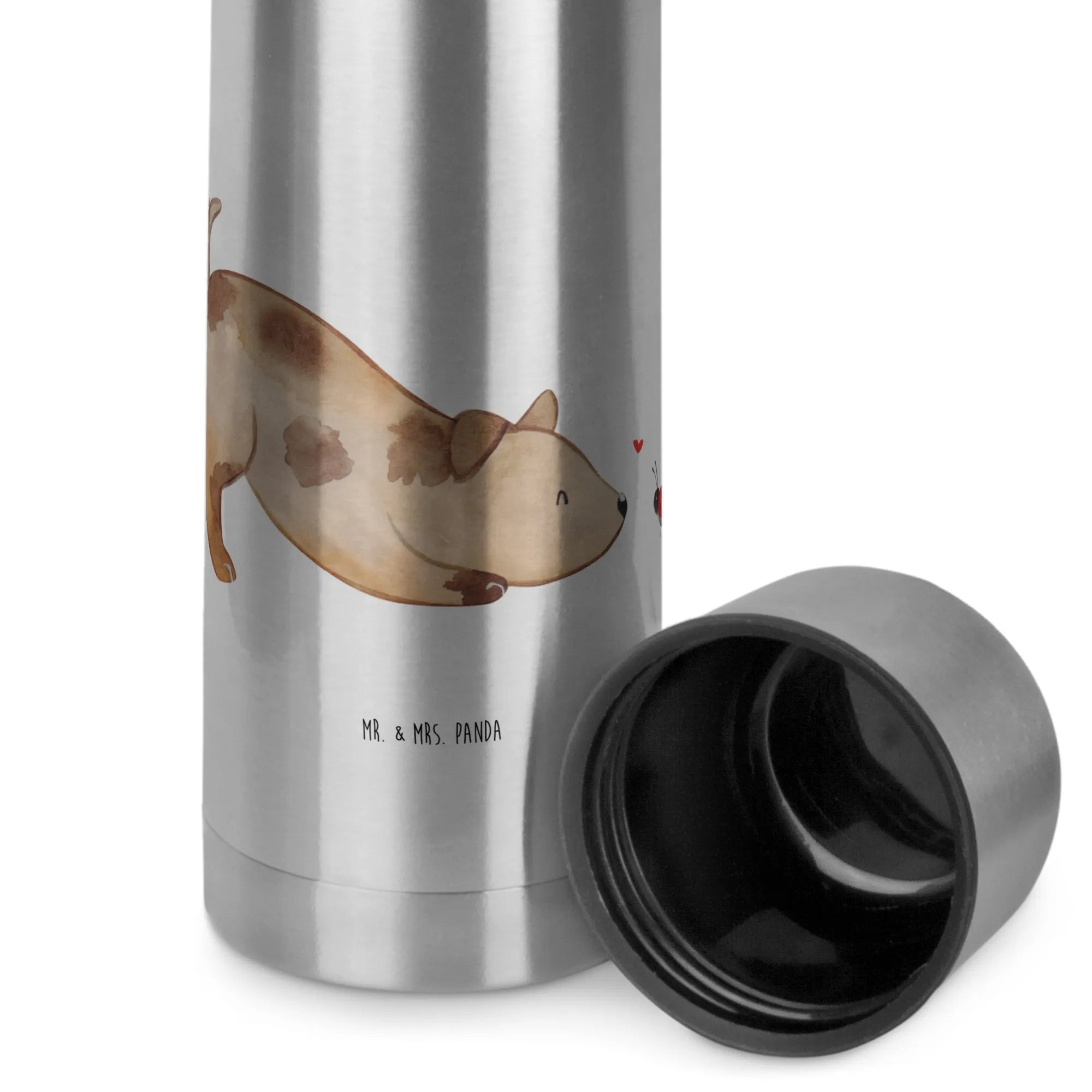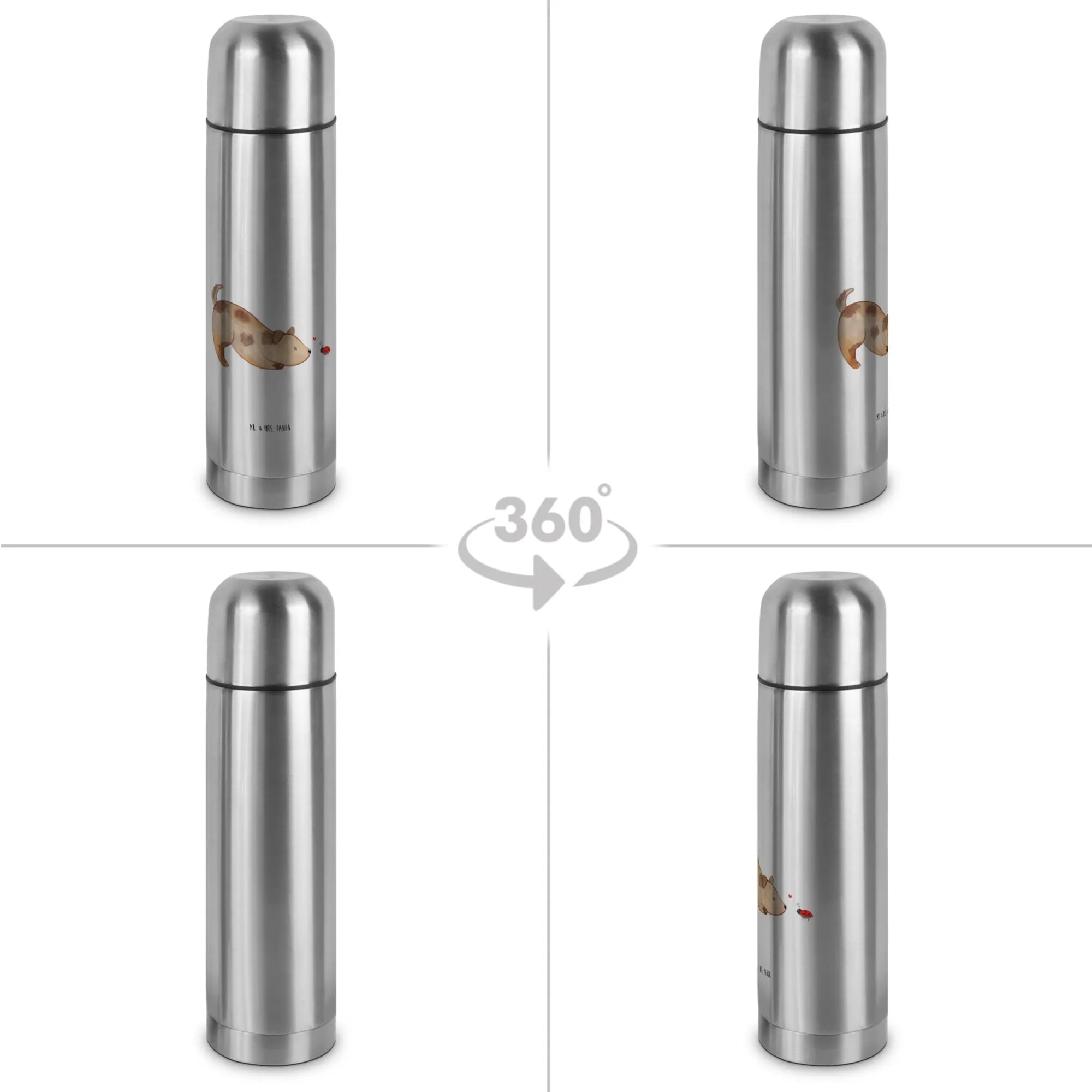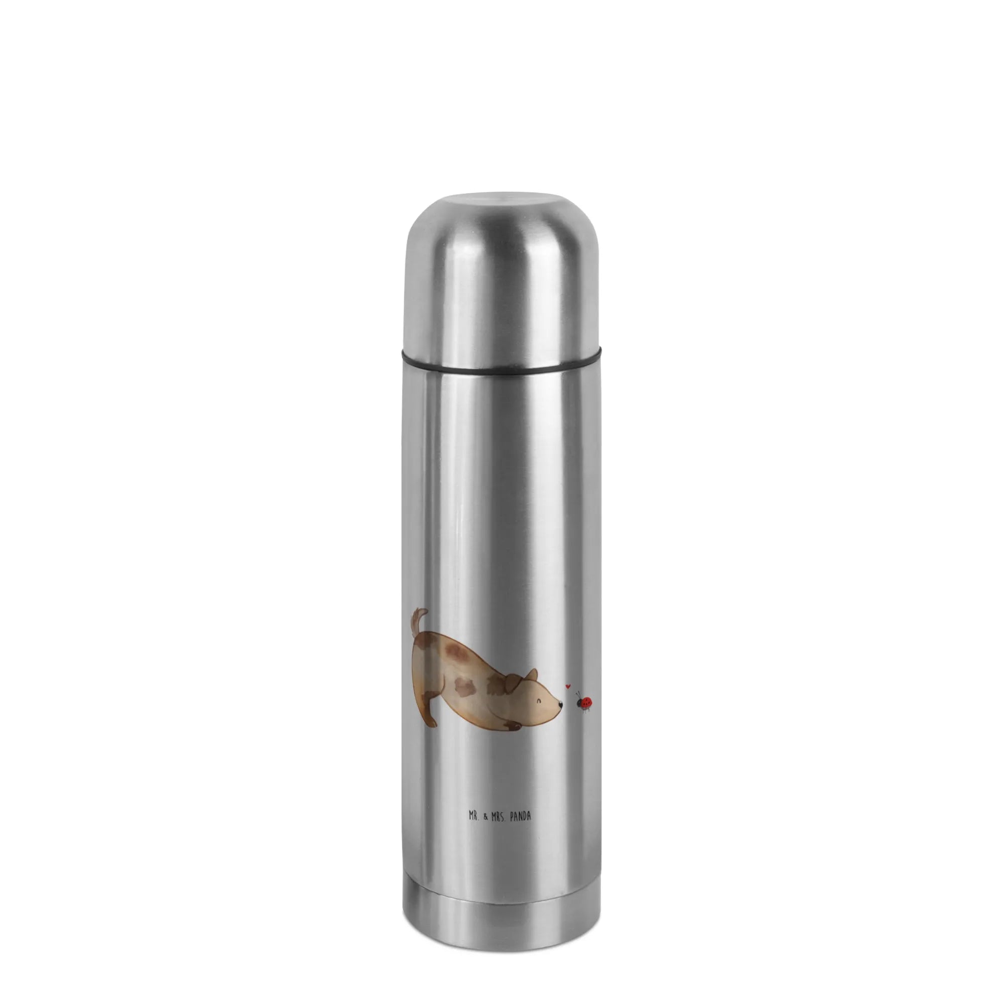 Entdecke die Wunderschöne Thermoskanne mit dem niedlichen Motiv "Hund Marienkäfer" aus der Hunde Kollektion von Mr. & Mrs. Panda! Diese spezielle Thermoskanne ist das perfekte Geschenk für alle, die Hunde lieben.