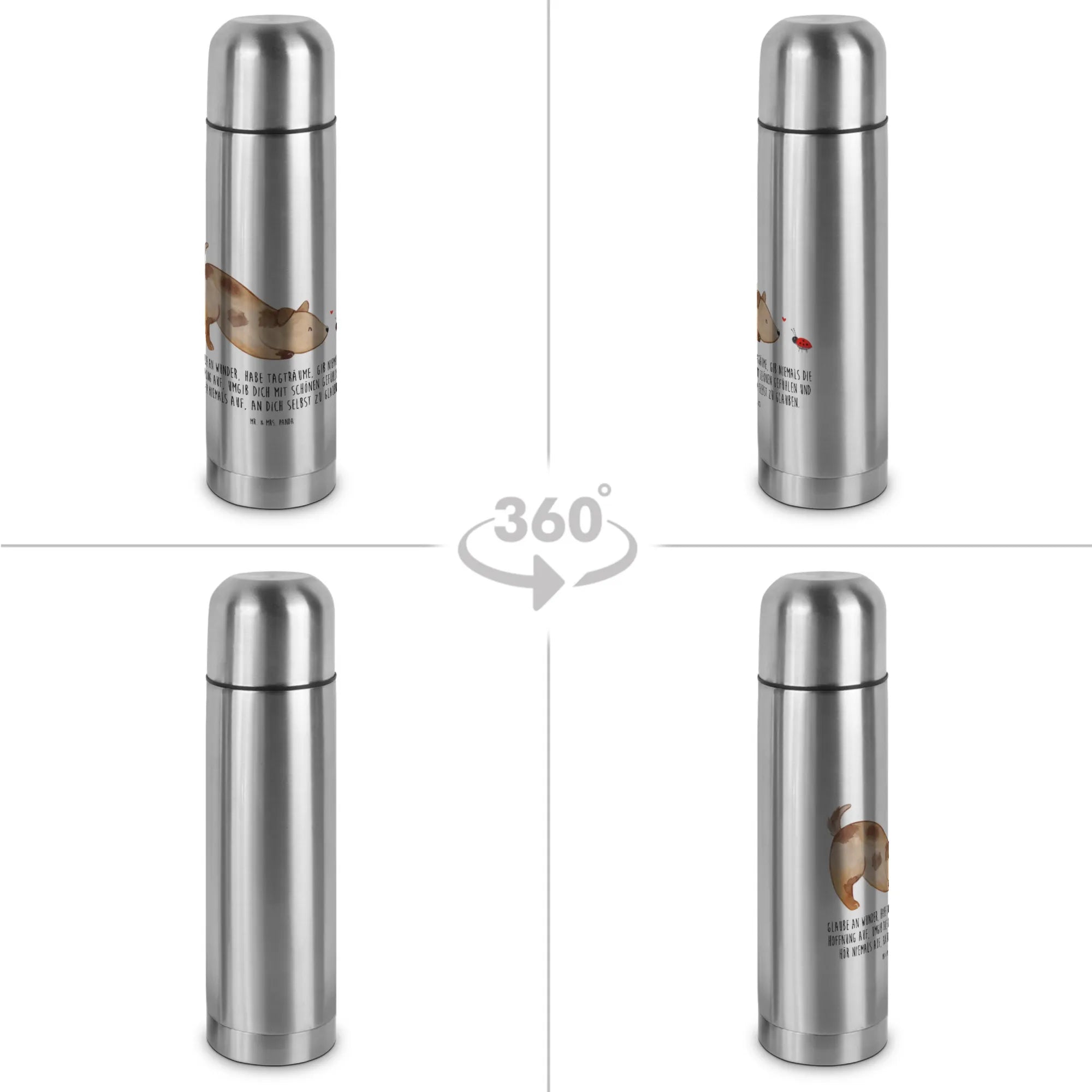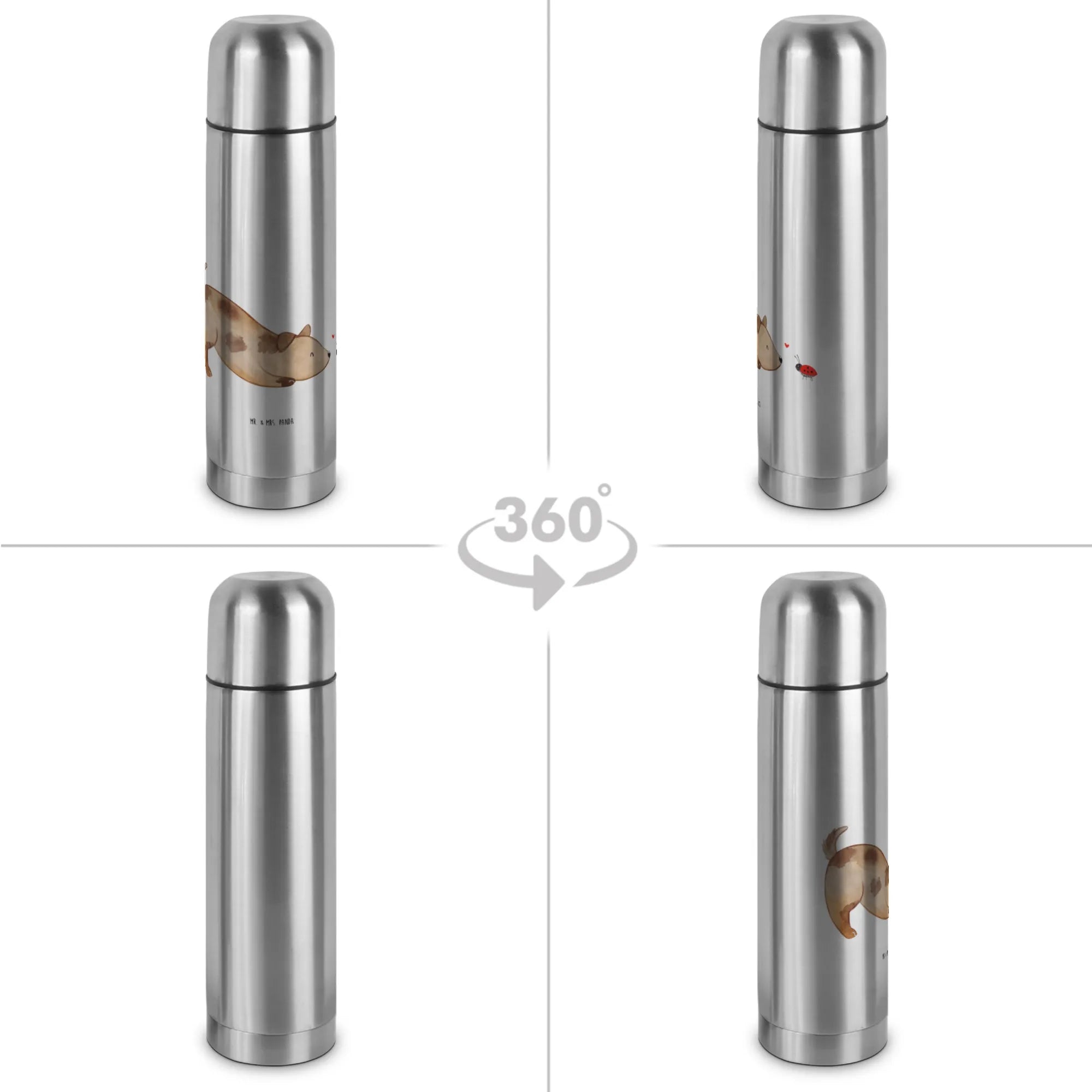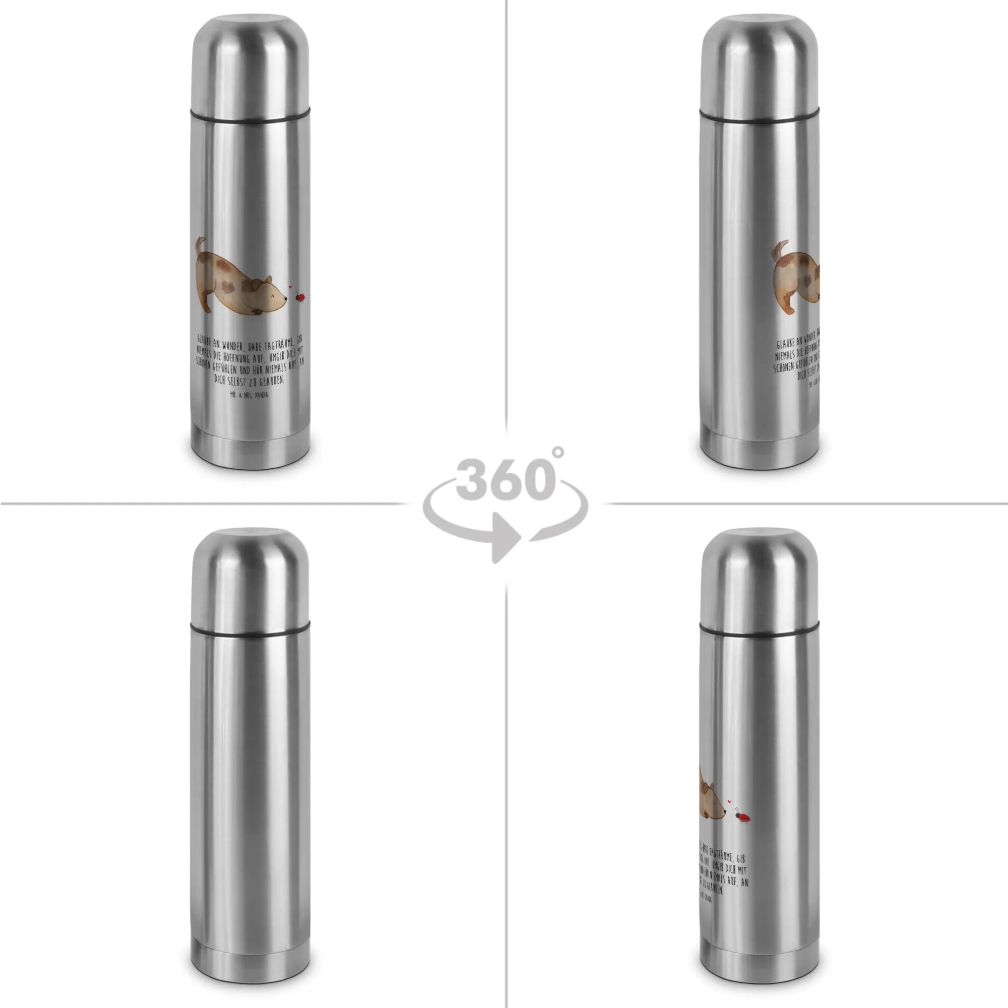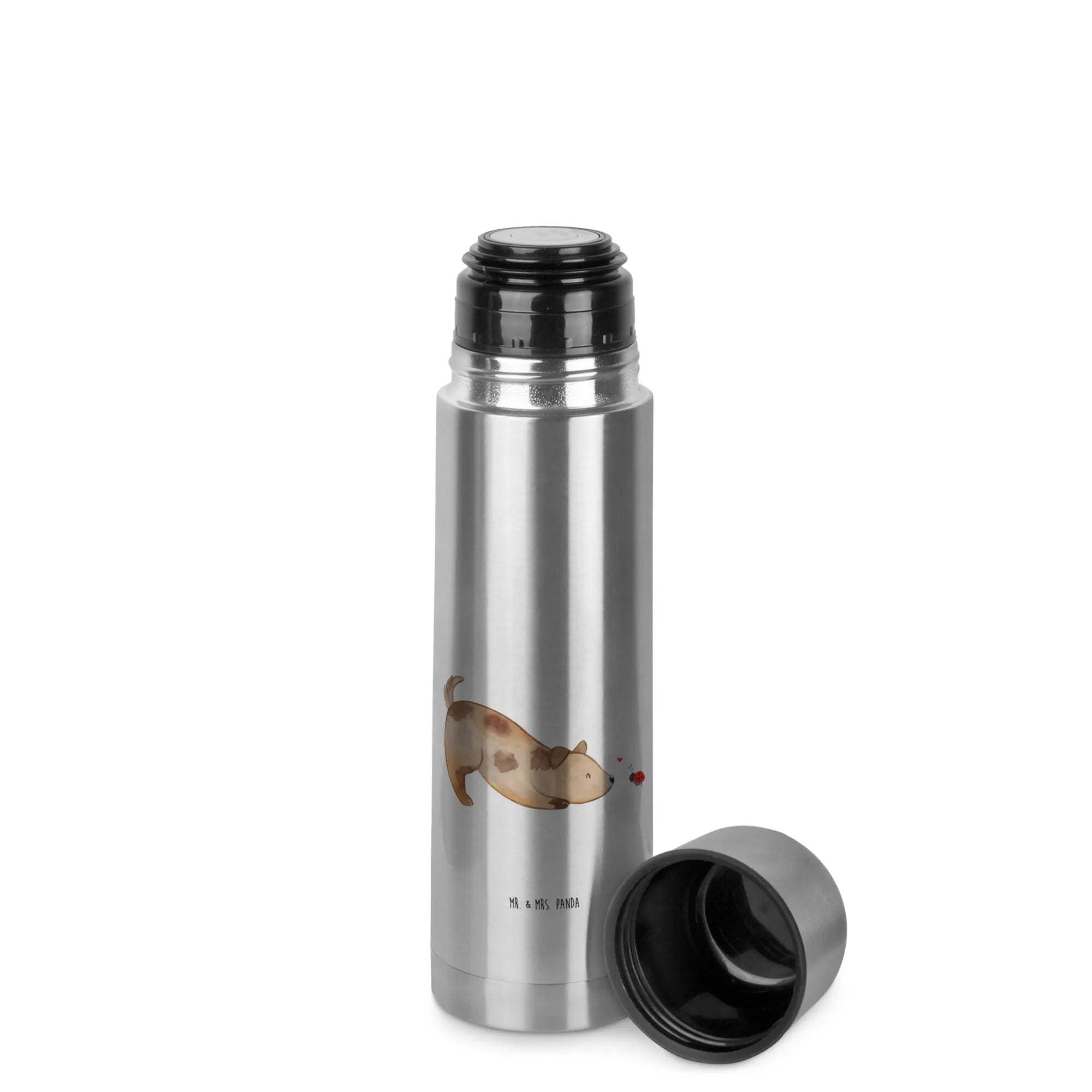 Entdecke die Wunderschöne Thermoskanne mit dem niedlichen Motiv "Hund Marienkäfer" aus der Hunde Kollektion von Mr. & Mrs. Panda! Diese spezielle Thermoskanne ist das perfekte Geschenk für alle, die Hunde lieben.