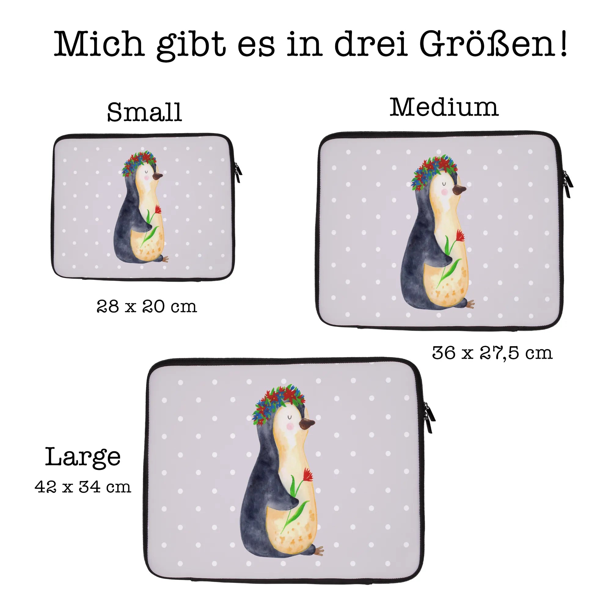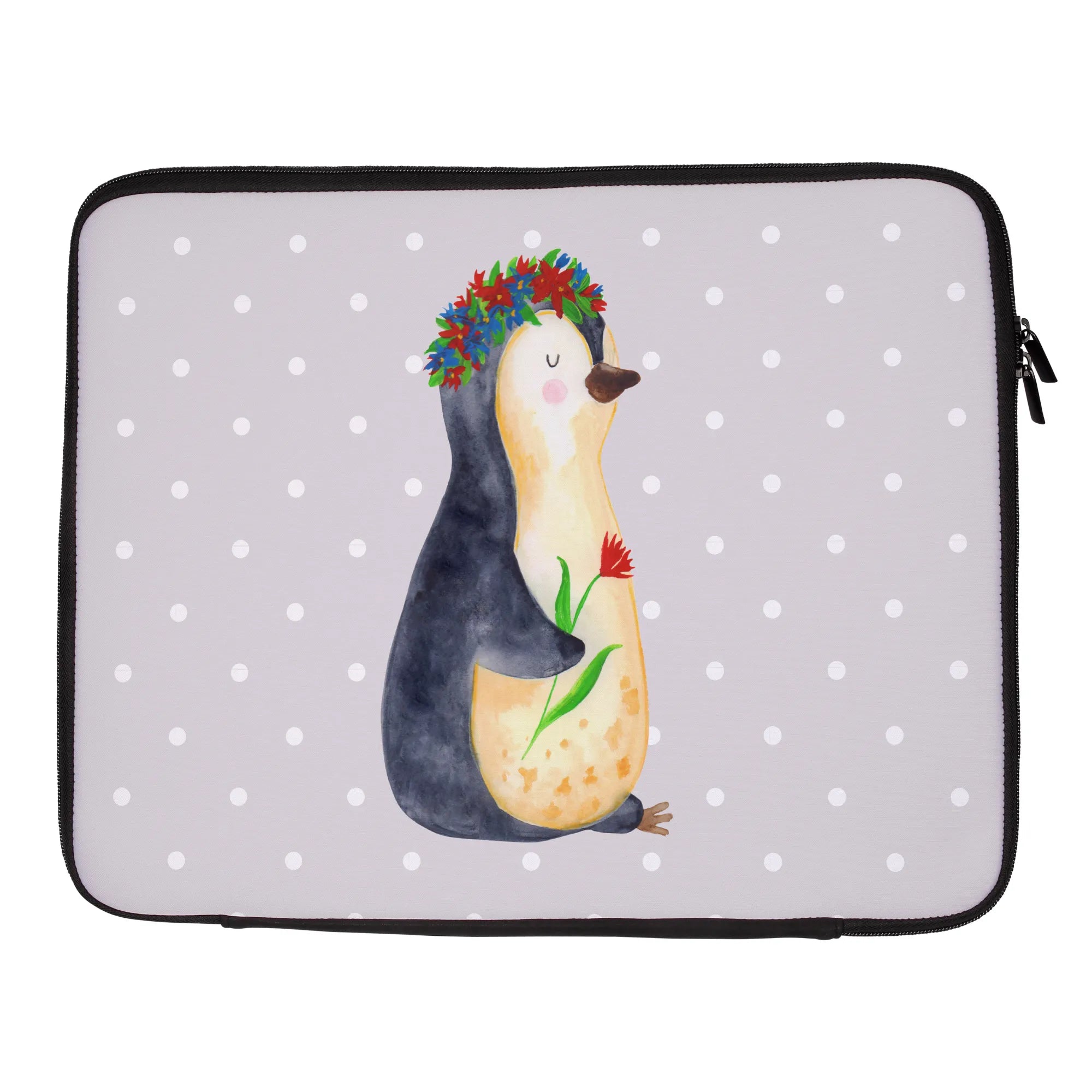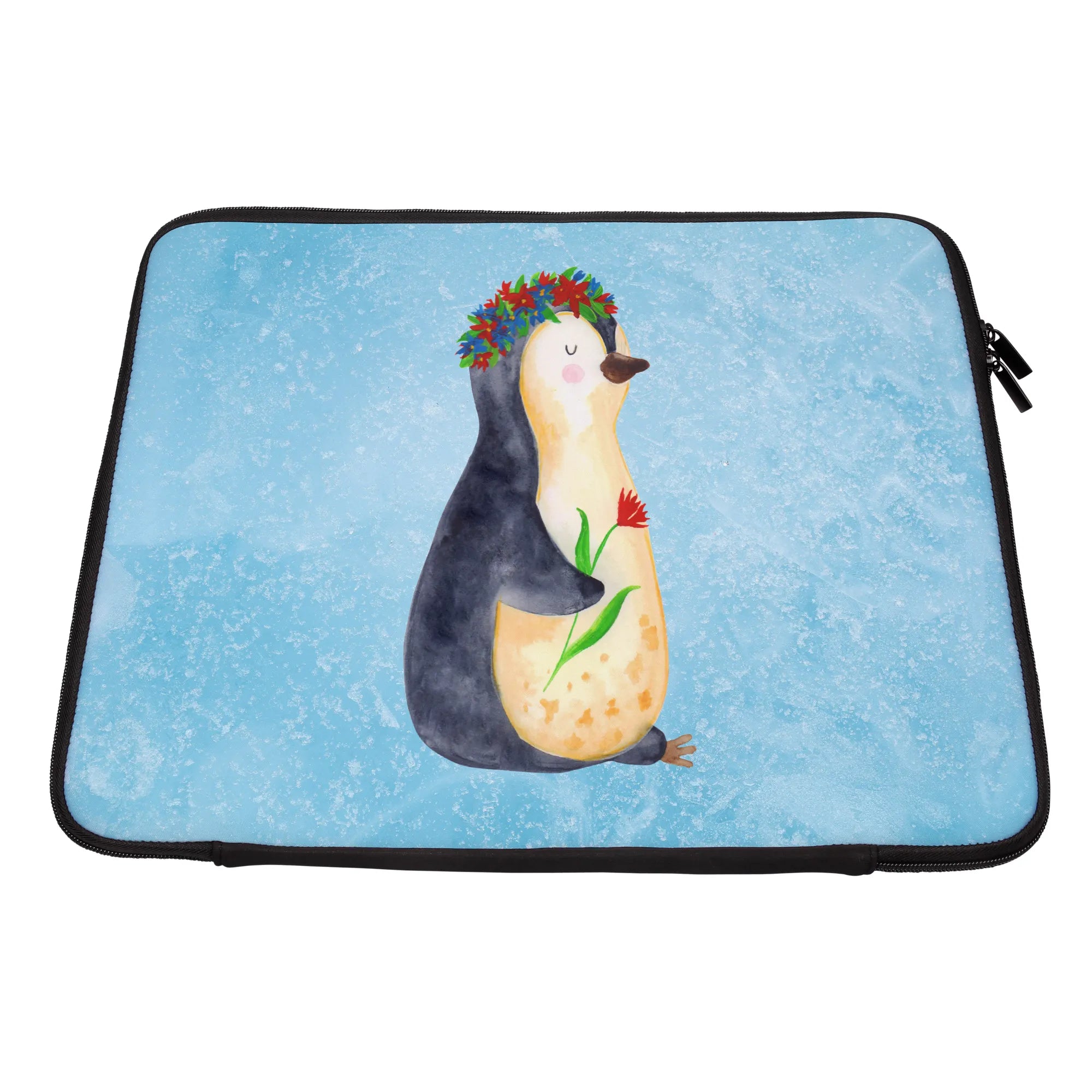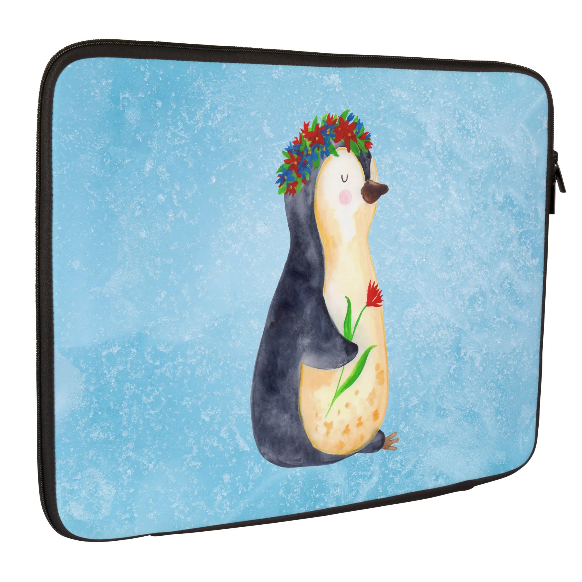 Torba na laptop pingwin kwiaty - 20 x 28 cm - z napisem - lodowoniebieski