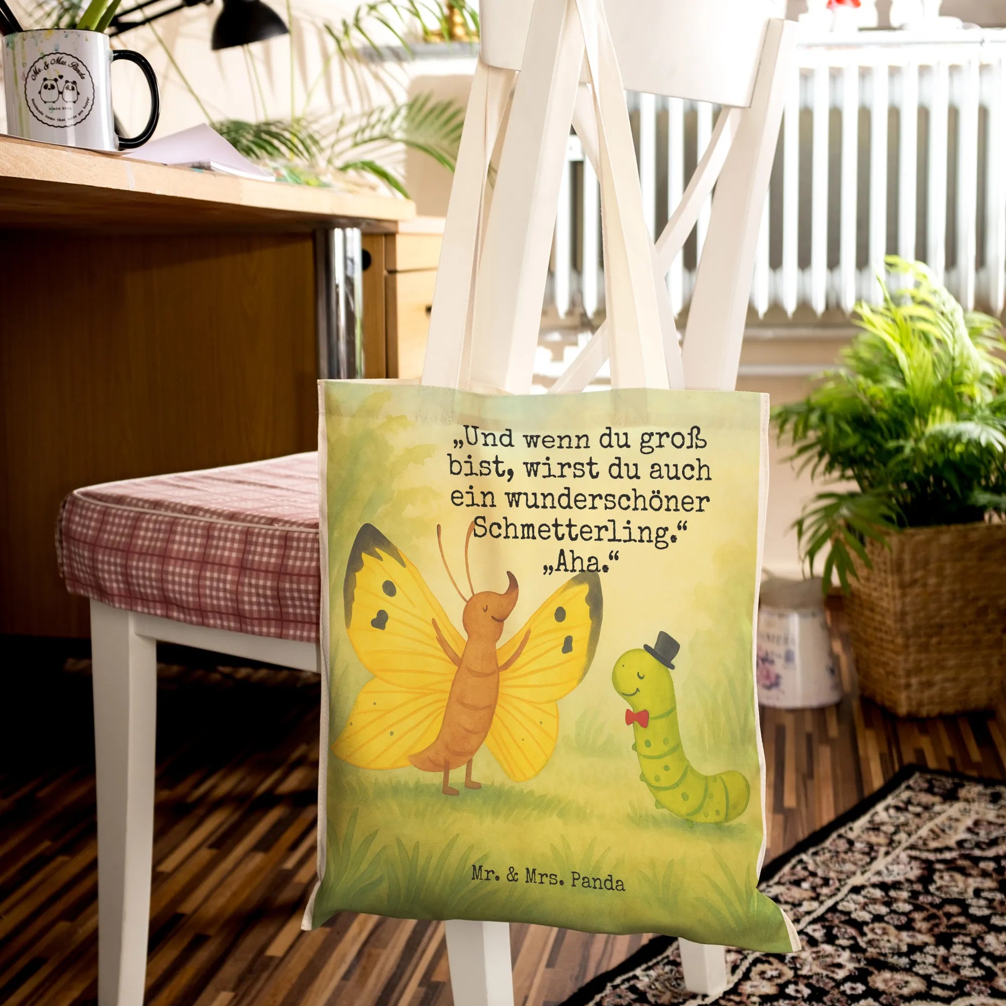 Einkaufstasche Raupe Schmetterling Design - mit Spruch