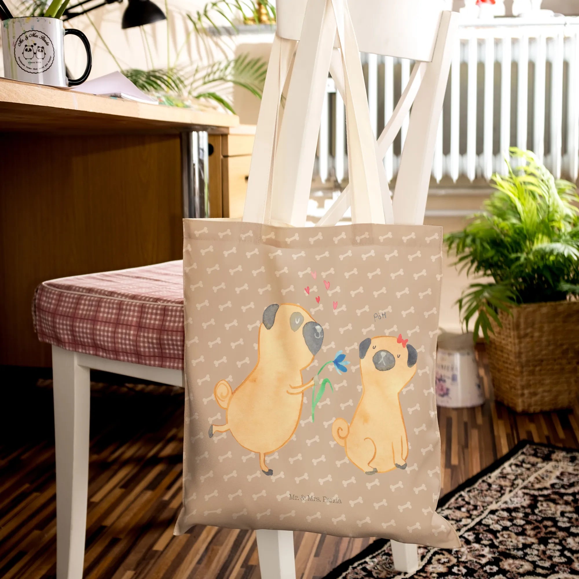 torba na zakupy mops Zakochani Pies, motyw psa, zwierzę domowe, rasa psa, miłośnik zwierząt, właściciel psa, powiedzenia