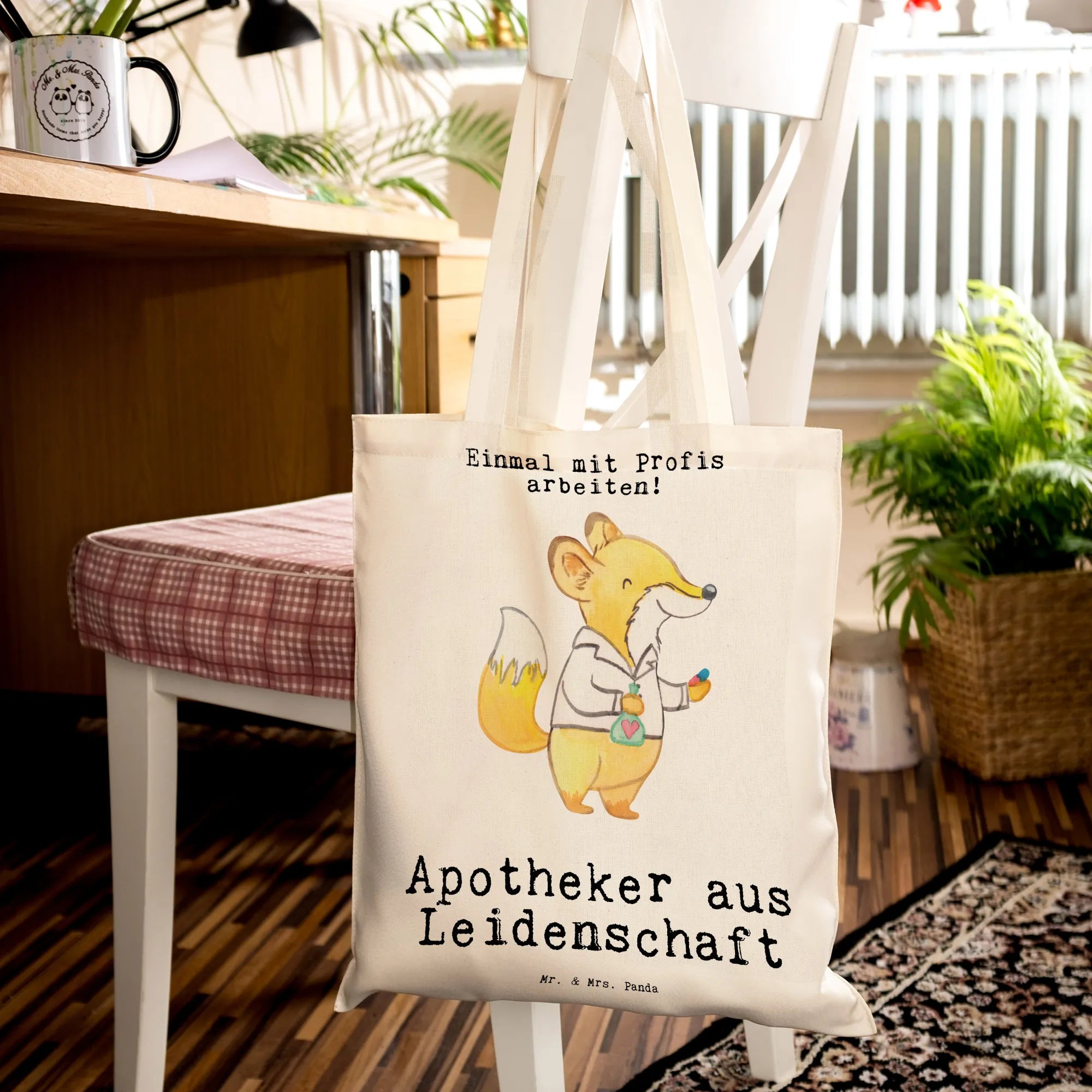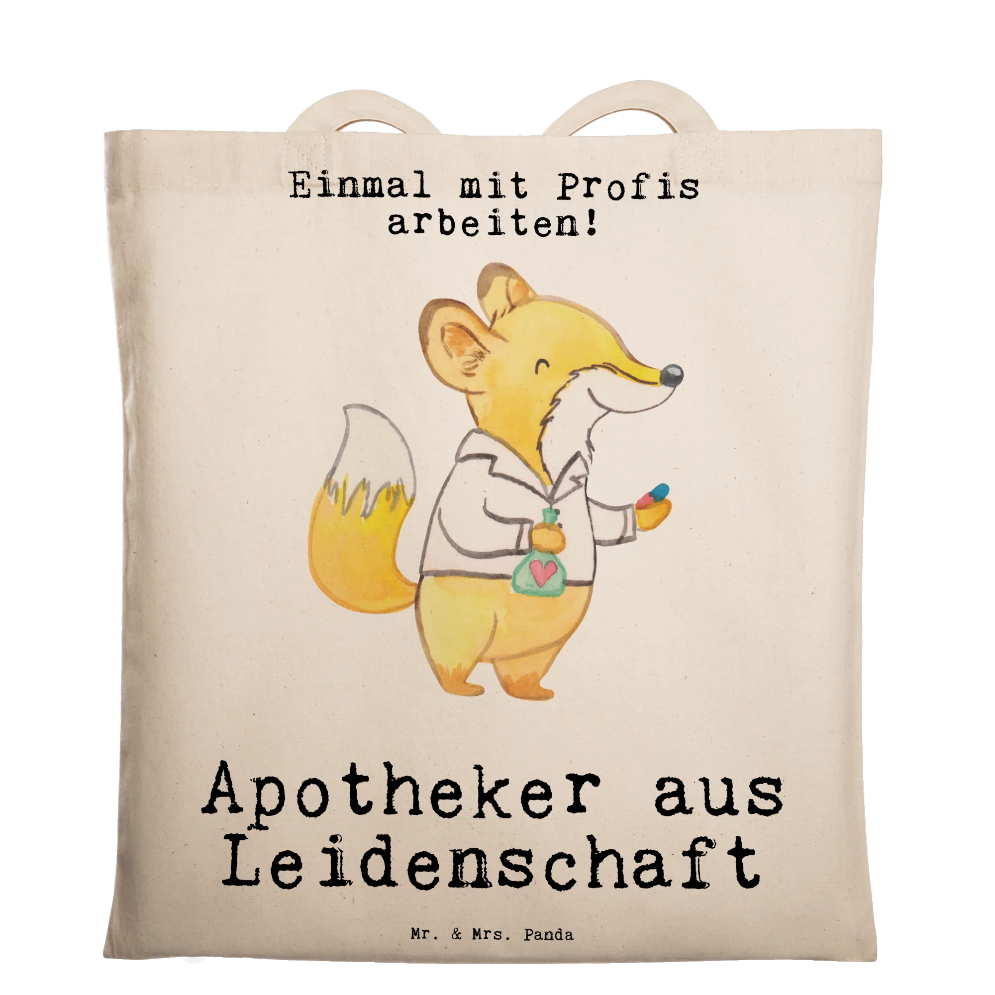 Apotheker aus Leidenschaft – unsere liebevoll gestaltete Tragetasche von Mr. & Mrs. Panda ist das ideale Geschenk für alle Apothekerinnen und Apotheker. Der süße Fuchs im weißen Kittel hält eine Pille und ein Reagenzglas, dazu der herzliche Schriftzug „Apotheker aus Leidenschaft“ – eine kleine, aber wirkungsvolle Anerkennung für Beruf und Engagement. 😊