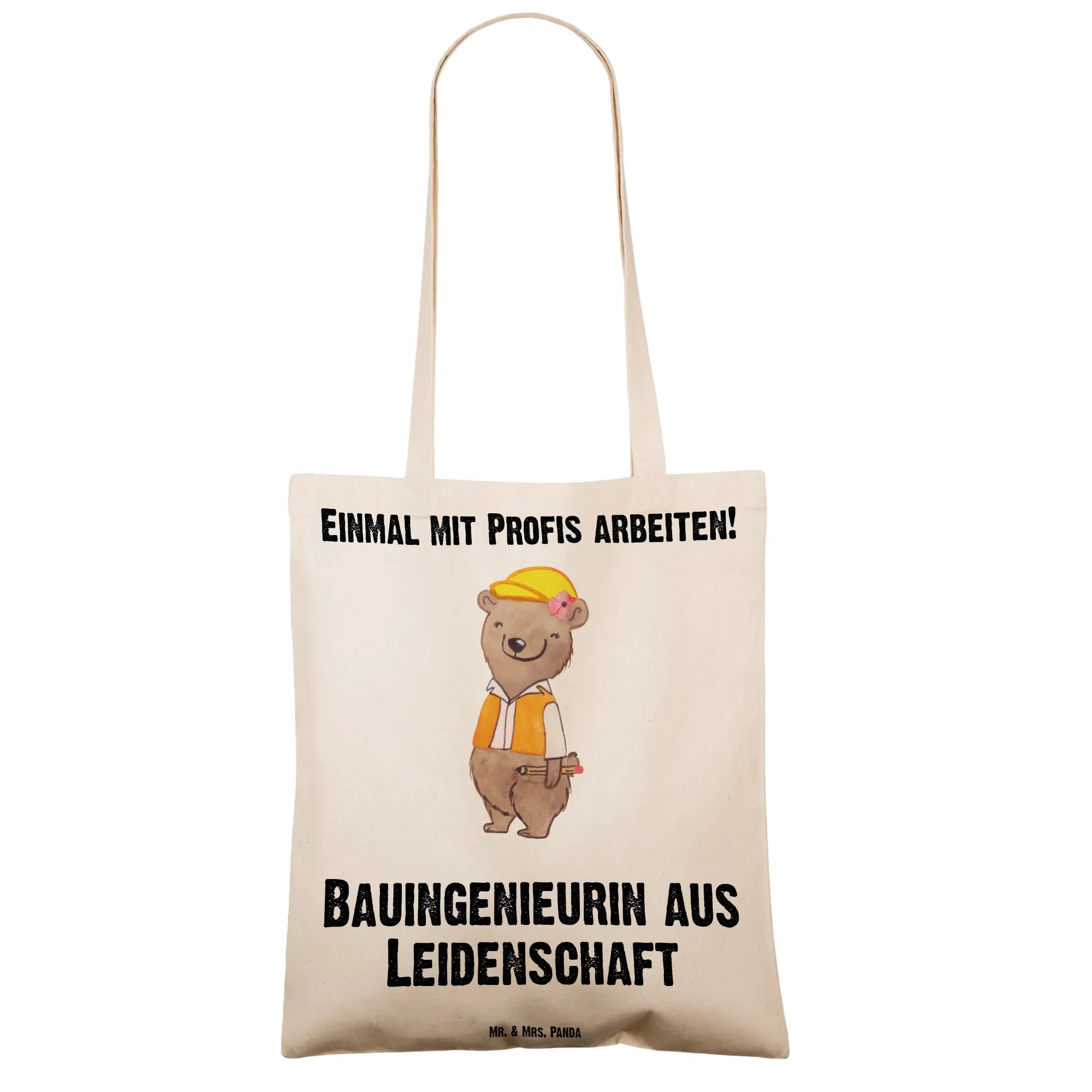 Praktisch, liebenswert und berufsstolz: Die Tragetasche "Bauingenieurin aus Leidenschaft" von Mr. & Mrs. Panda ist das perfekte Geschenk für alle Bauingenieurinnen, Statikerinnen und Ingenieurinnen. Das liebevoll handgezeichnete Aquarellmotiv zeigt eine kleine Bärendame mit Helm und Warnweste und wird durch den klaren Slogan „Bauingenieurin aus Leidenschaft“ ergänzt. Diese Stofftasche ist ideal als Geschenk zum Studium, zur bestandenen Prüfung, zum Abschied aus dem Team oder als Dankeschön an eine Kollegin.