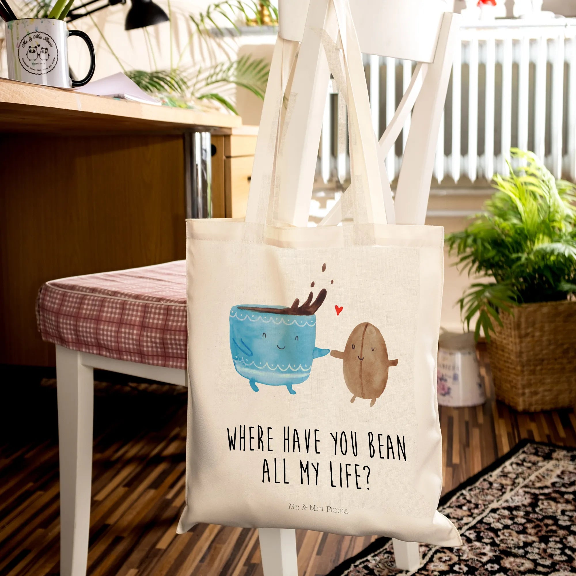 Du liebst Kaffee und fröhliche Motive? Diese niedliche Tragetasche vereint beides: Eine strahlende Kaffeetasse hält stolz eine kleine Kaffeebohne und der freche Spruch "Where have you bean all my life?" bringt garantiert ein Lächeln in deinen Tag. Das Motiv wurde liebevoll von Mrs. Panda handgezeichnet und passt perfekt zur bunten, lebensfrohen Small World Kollektion.