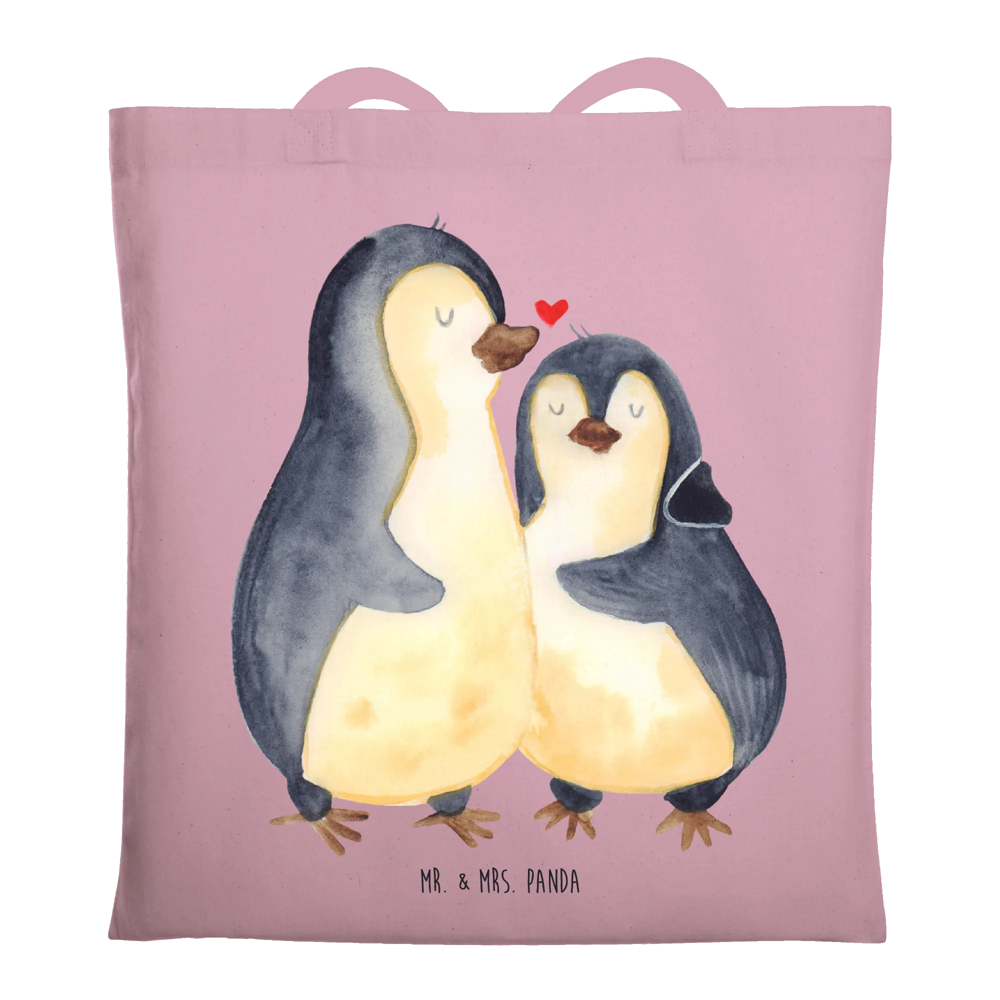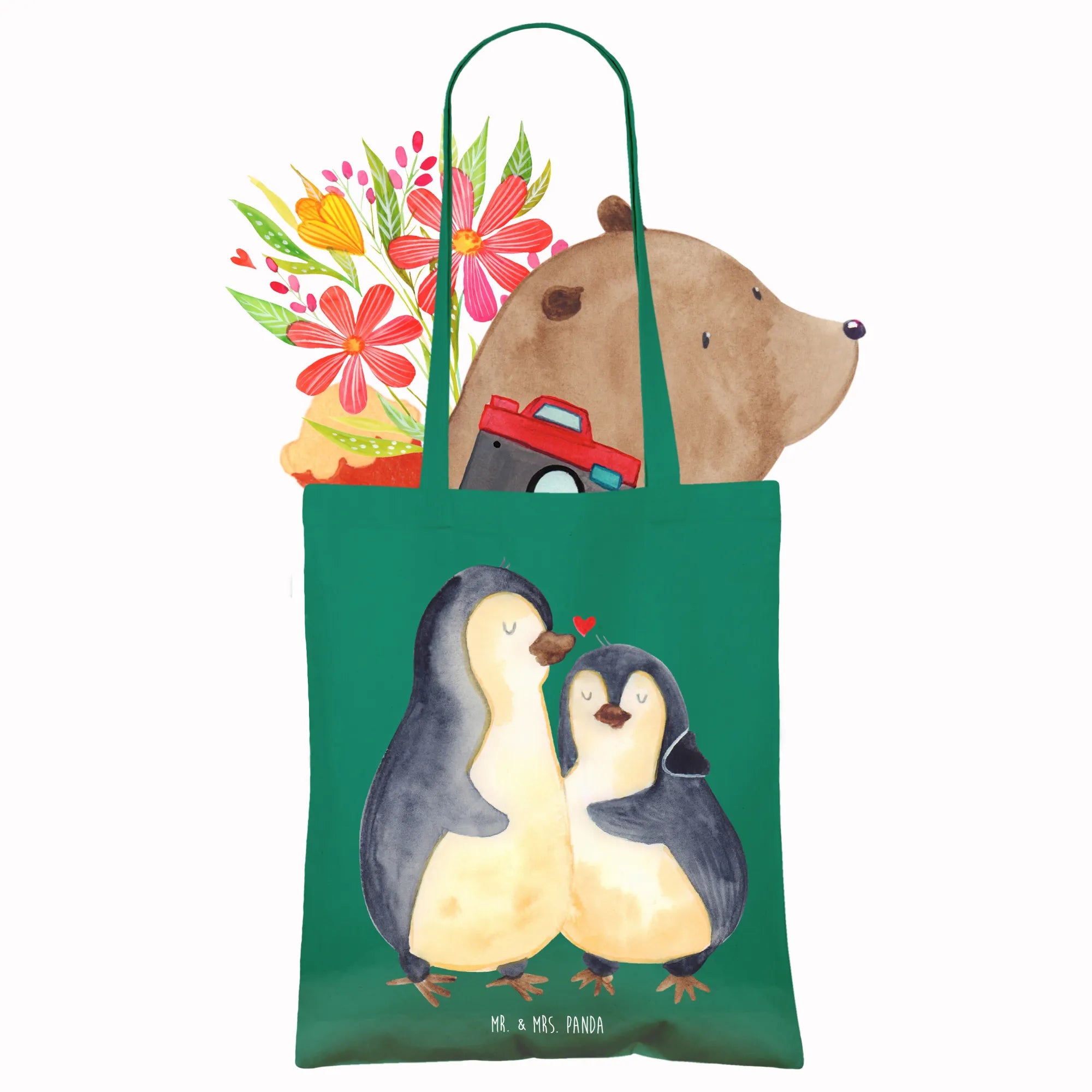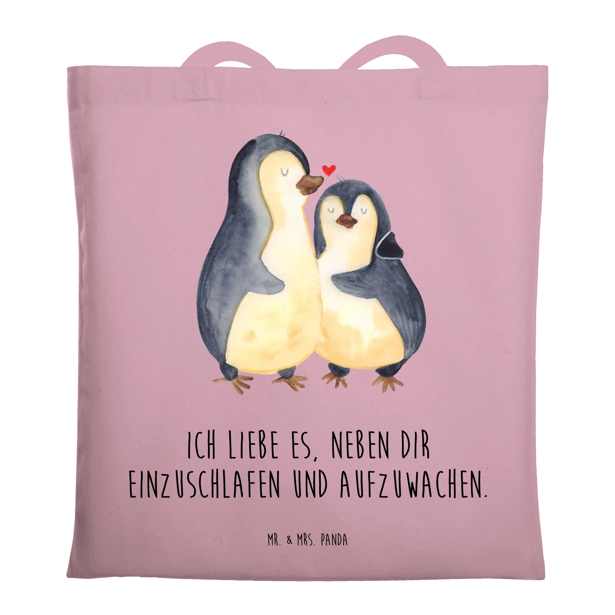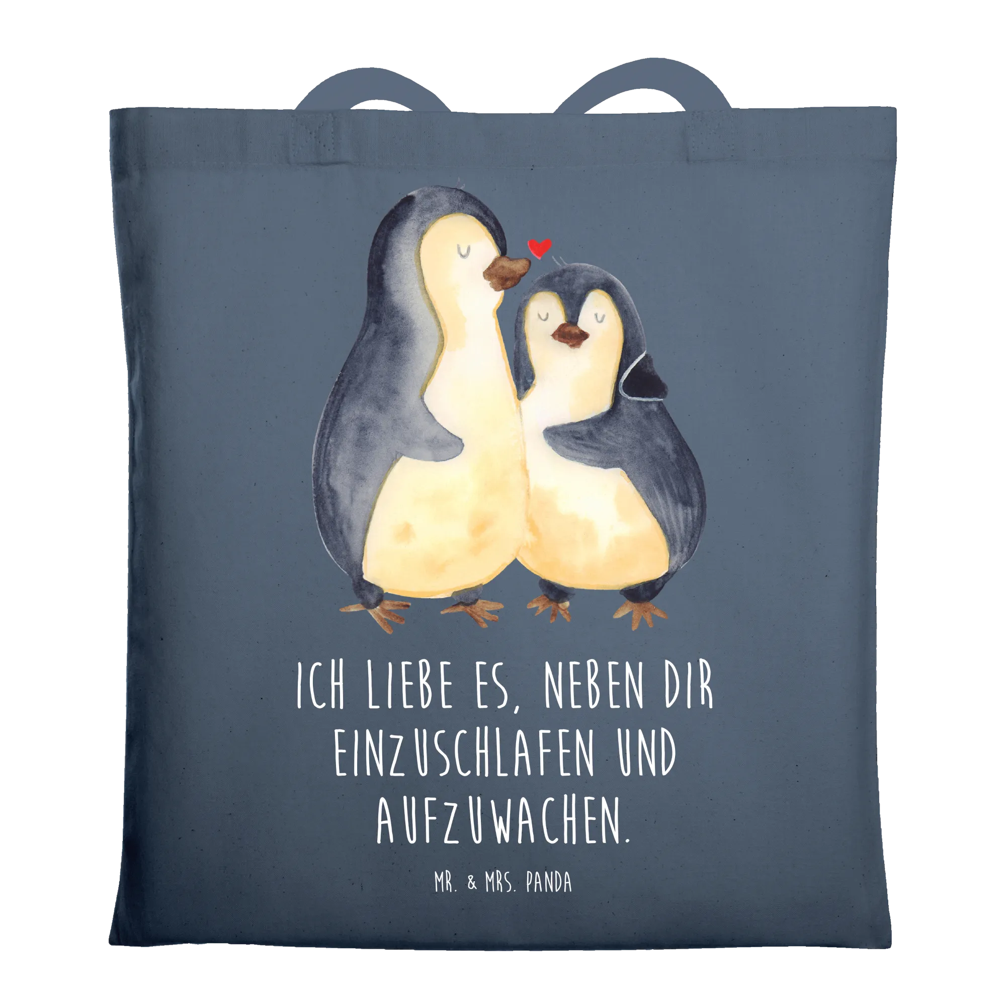 Eine Liebeserklärung zum Mitnehmen: Unsere Tragetasche „Pinguine Einschlafen“ aus der Liebe-Kollektion von Mr. & Mrs. Panda ist mehr als nur eine Einkaufstasche – sie ist ein kleines Geschenk für den Alltag, das Zuneigung zeigt. Auf dem sanften mintgrünen Hintergrund kuscheln zwei handgezeichnete Aquarell-Pinguine innig nebeneinander, darüber schwebt ein kleines rotes Herz. Der liebevolle Spruch „Ich liebe es, neben dir einzuschlafen und aufzuwachen.“ macht die Stofftasche zu einem perfekten Liebesgeschenk für Freundin, Freund, Ehefrau oder Ehemann.