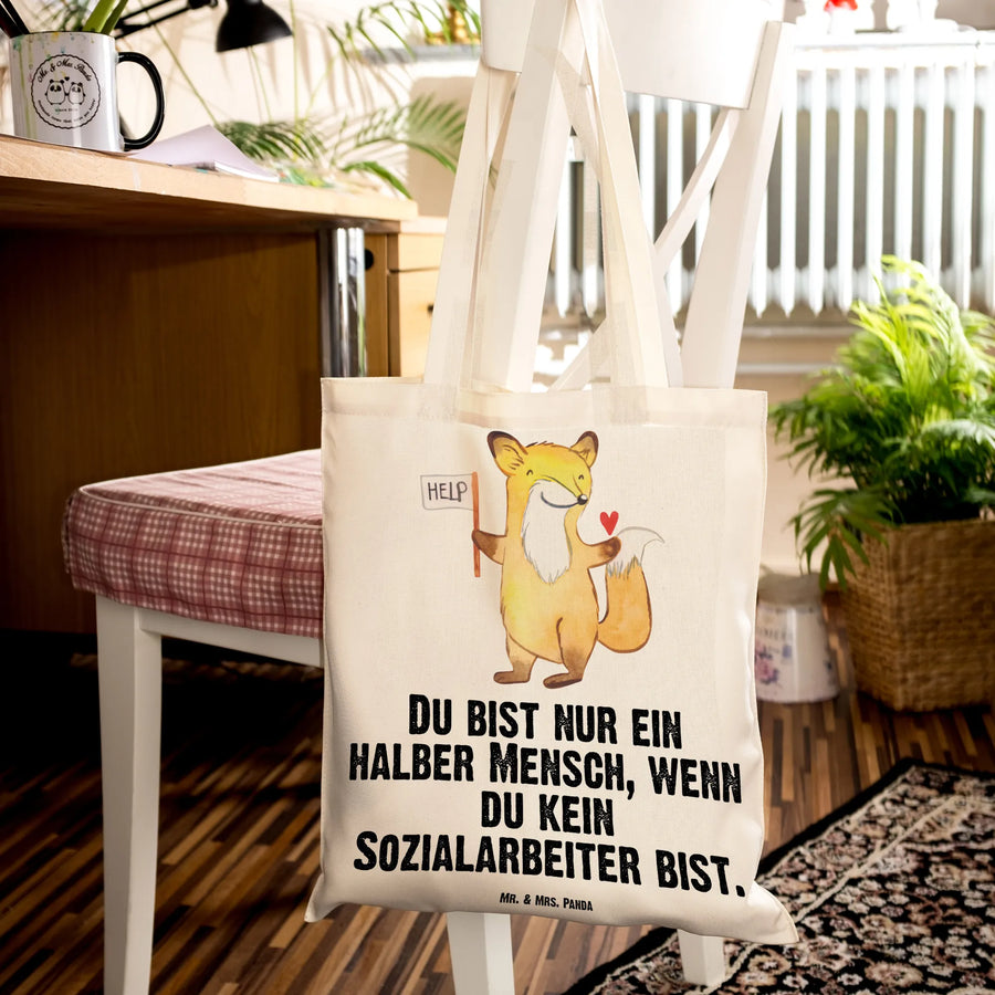 Suchst Du ein liebevolles Geschenk für Sozialarbeiterinnen und Sozialarbeiter? Unsere Tragetasche ist mit einem handgezeichneten Aquarell-Fuchs gestaltet, der die Arme wohlwollend ausbreitet und ein warmes Gefühl von Fürsorge vermittelt. Der humorvolle und wertschätzende Spruch „Du bist nur ein halber Mensch, wenn du kein Sozialarbeiter bist.“ macht die Tasche zu einem perfekten Präsent für Abschied, Jubiläum, Rente oder als kleines Dankeschön an Kollegen.