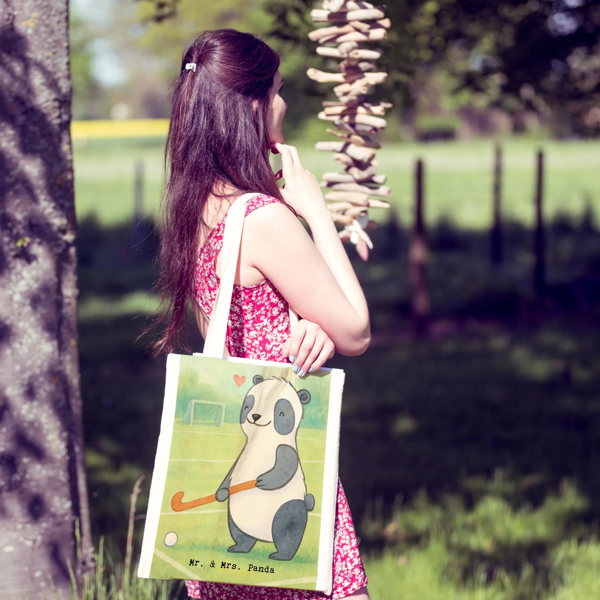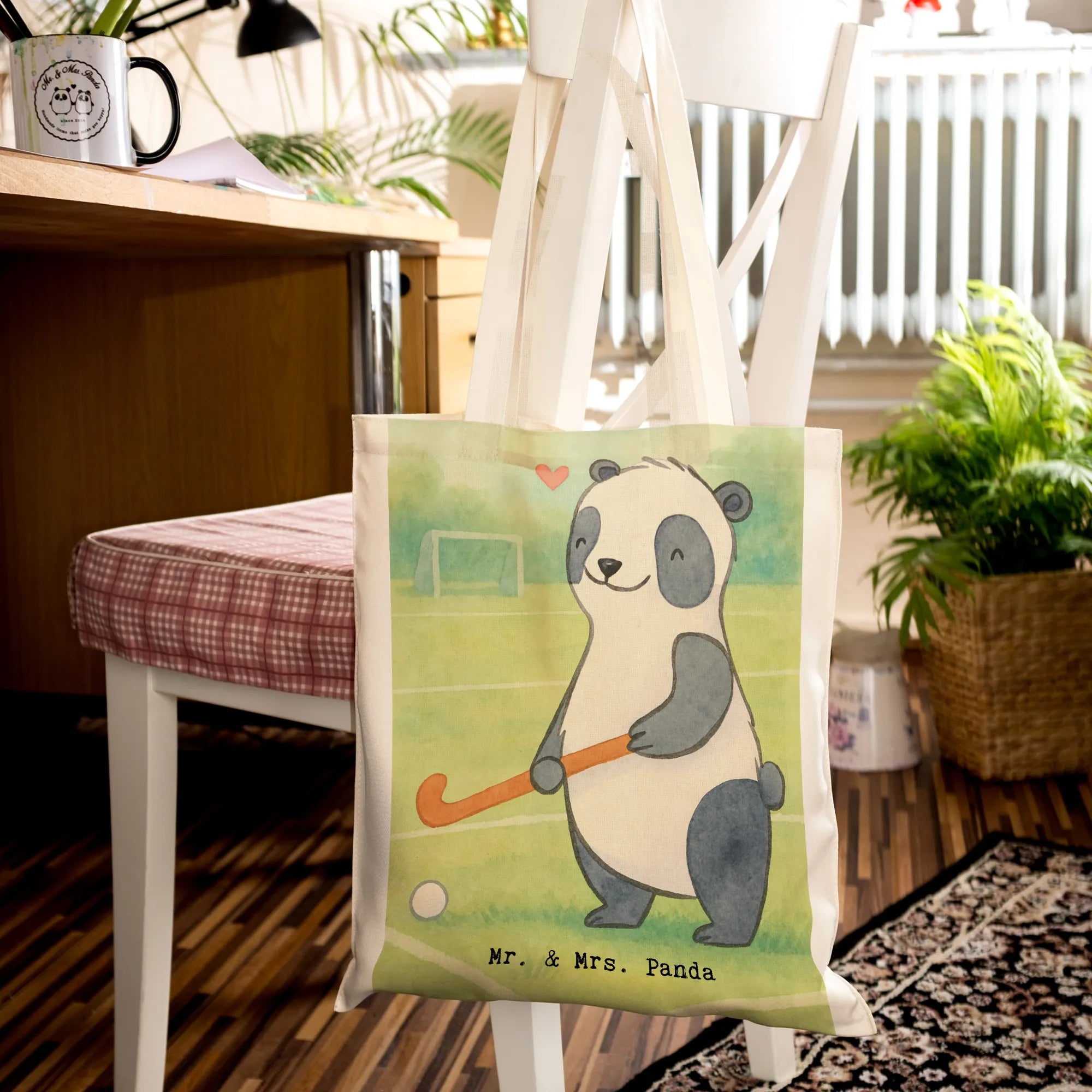 Tragetasche Panda Hockey spielen Design