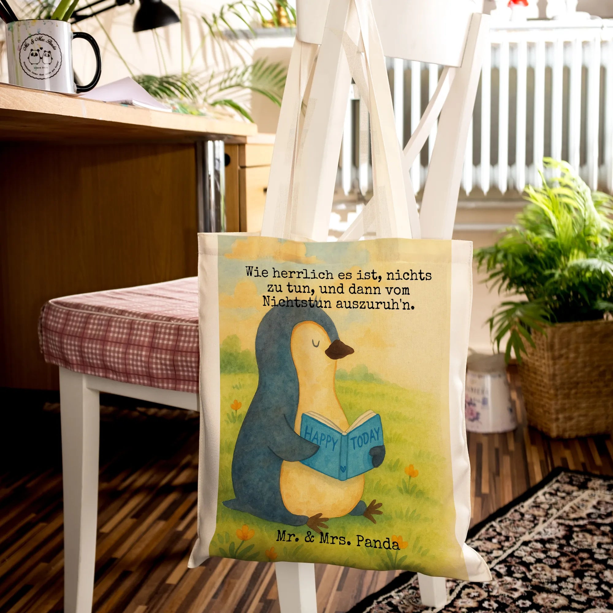 Tragetasche Pinguin Buch Design - mit Spruch