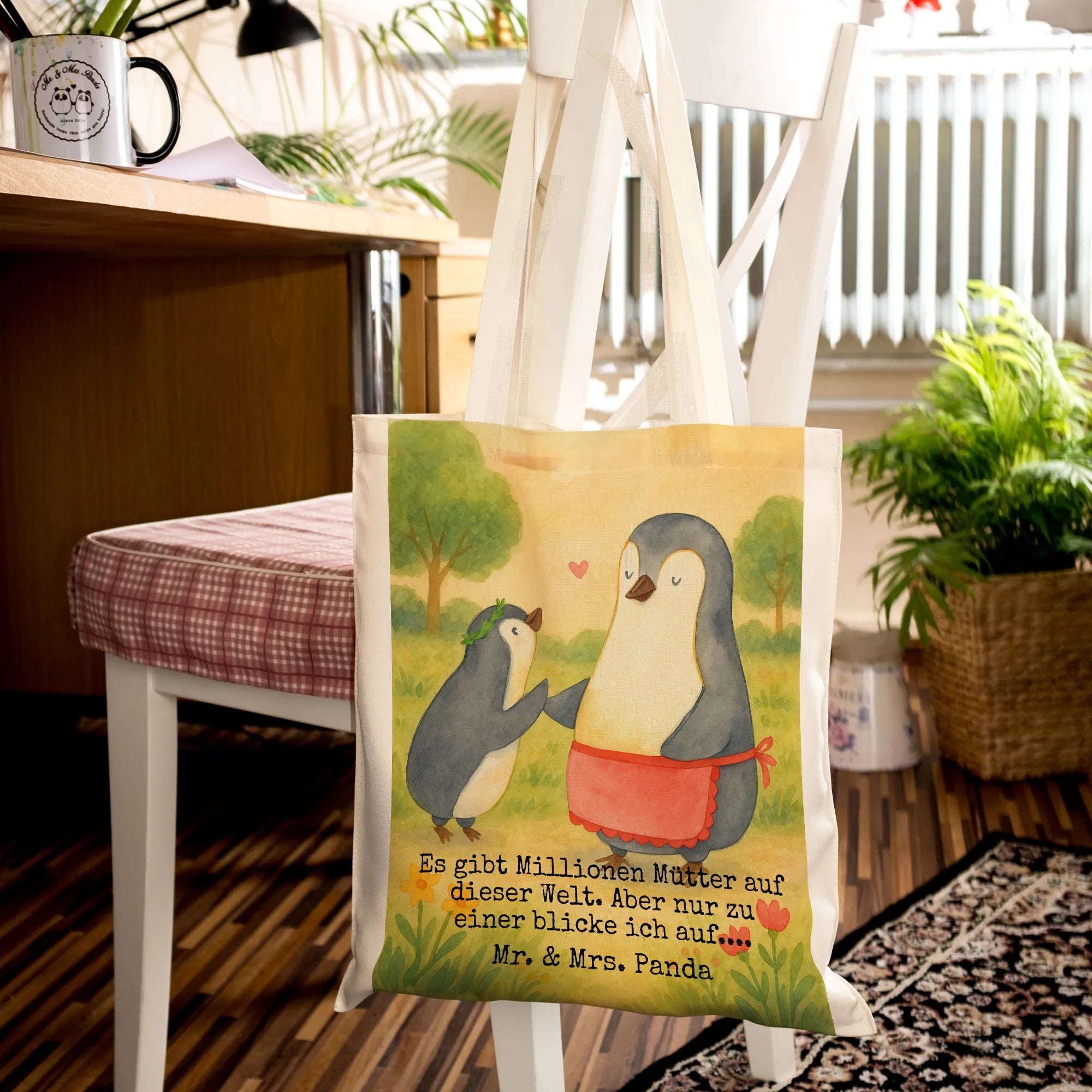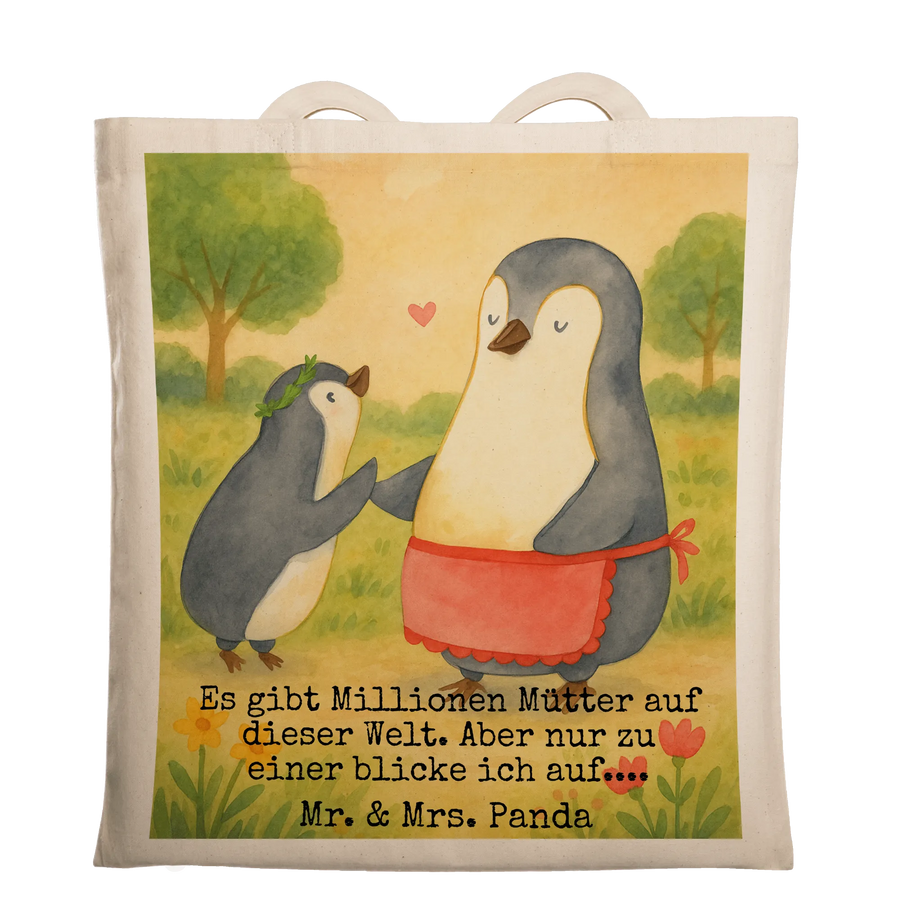 Tragetasche Pinguin mit Kind Design - mit Spruch