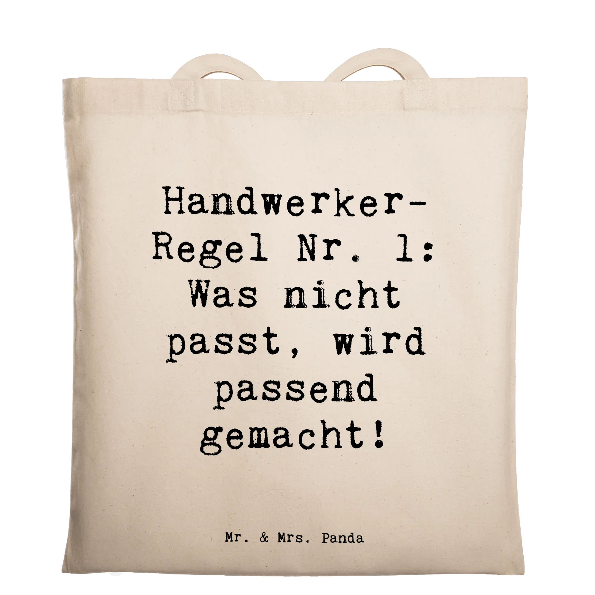 Tragetasche Spruch Handwerker-Regel Nr. 1: Was nicht passt, wird passe – Mr. & Mrs. Panda