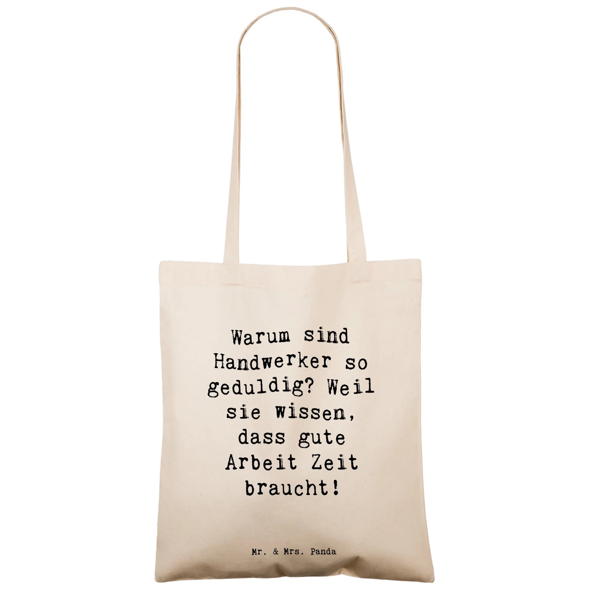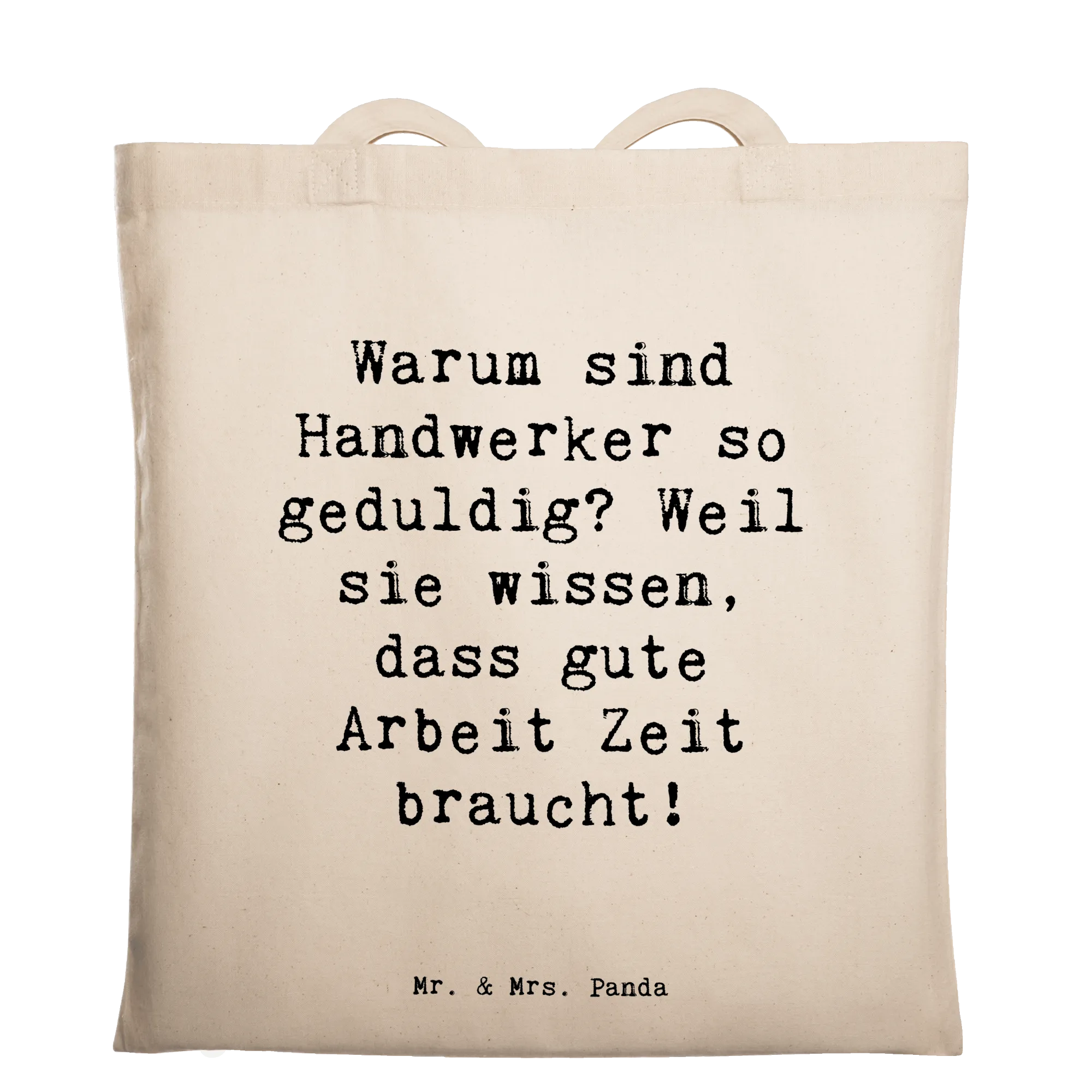 Tragetasche Spruch Warum sind Handwerker so geduldig? Weil sie wissen, dass gute Arbeit Zeit braucht! - Transparent