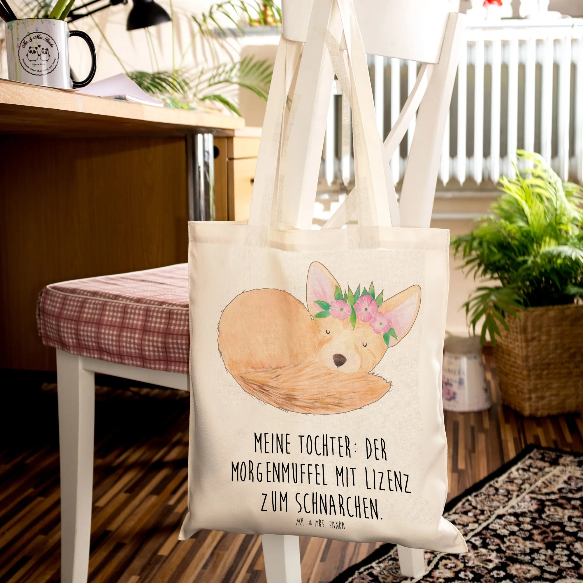 Eine liebevolle Tragetasche für Deine Tochter – diese wunderschöne Tragetasche von Mr. & Mrs. Panda trägt den frechen Spruch „Meine Tochter: Der Morgenmuffel mit Lizenz zum Schnarchen.“ und zaubert jedem Betrachter ein Lächeln ins Gesicht. Das Motiv aus der Kollektion Familie & Verwandte wurde von Mrs. Panda handgezeichnet und steht für die Freude, den Einfallsreichtum und das Herz, das Töchter in Familien bringen. 😊