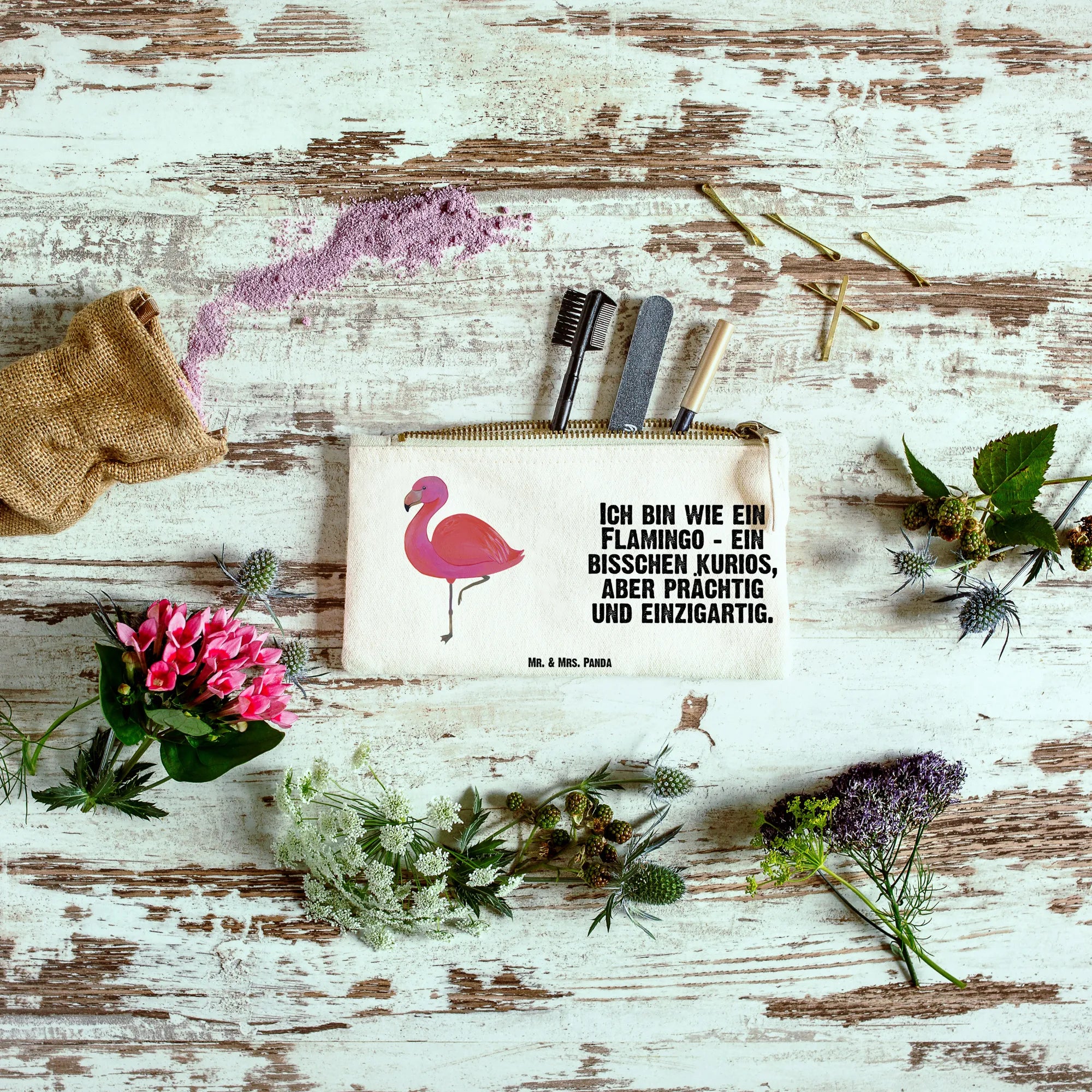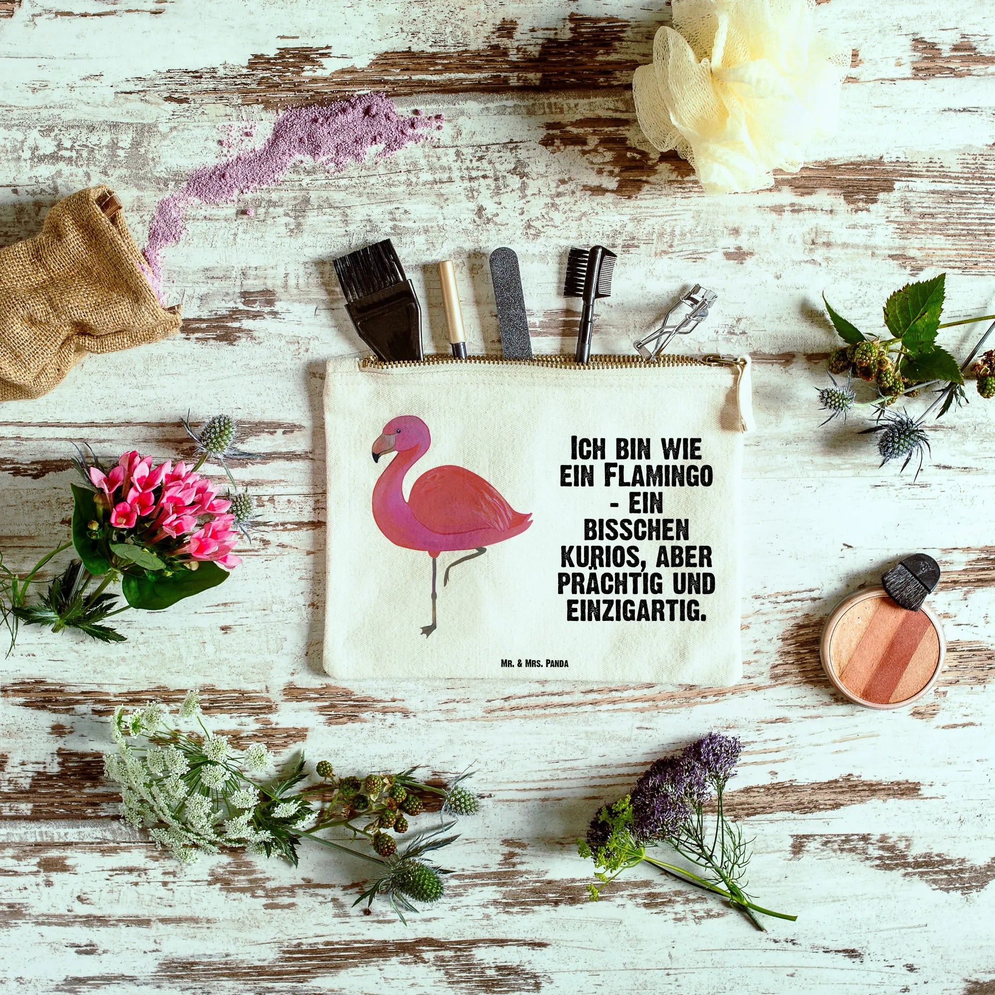 torebka na makijaż Flamingo Klasyczny - Größe S Klein - z napisem