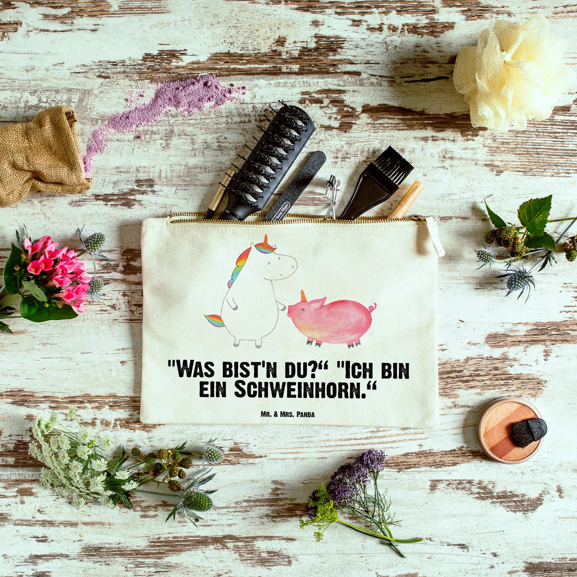 torebka na makijaż jednorożec świnia - Rozmiar XL Duży - z napisem